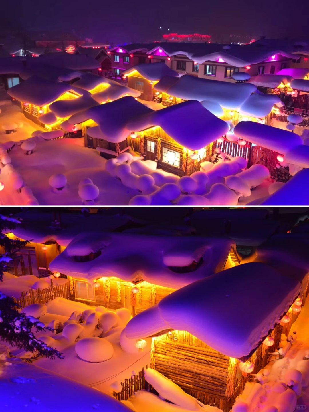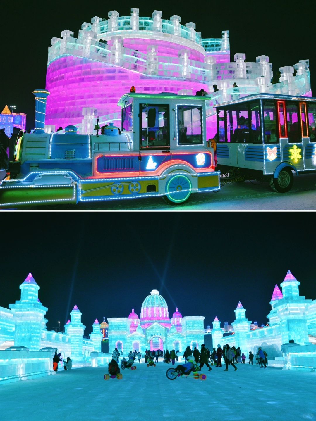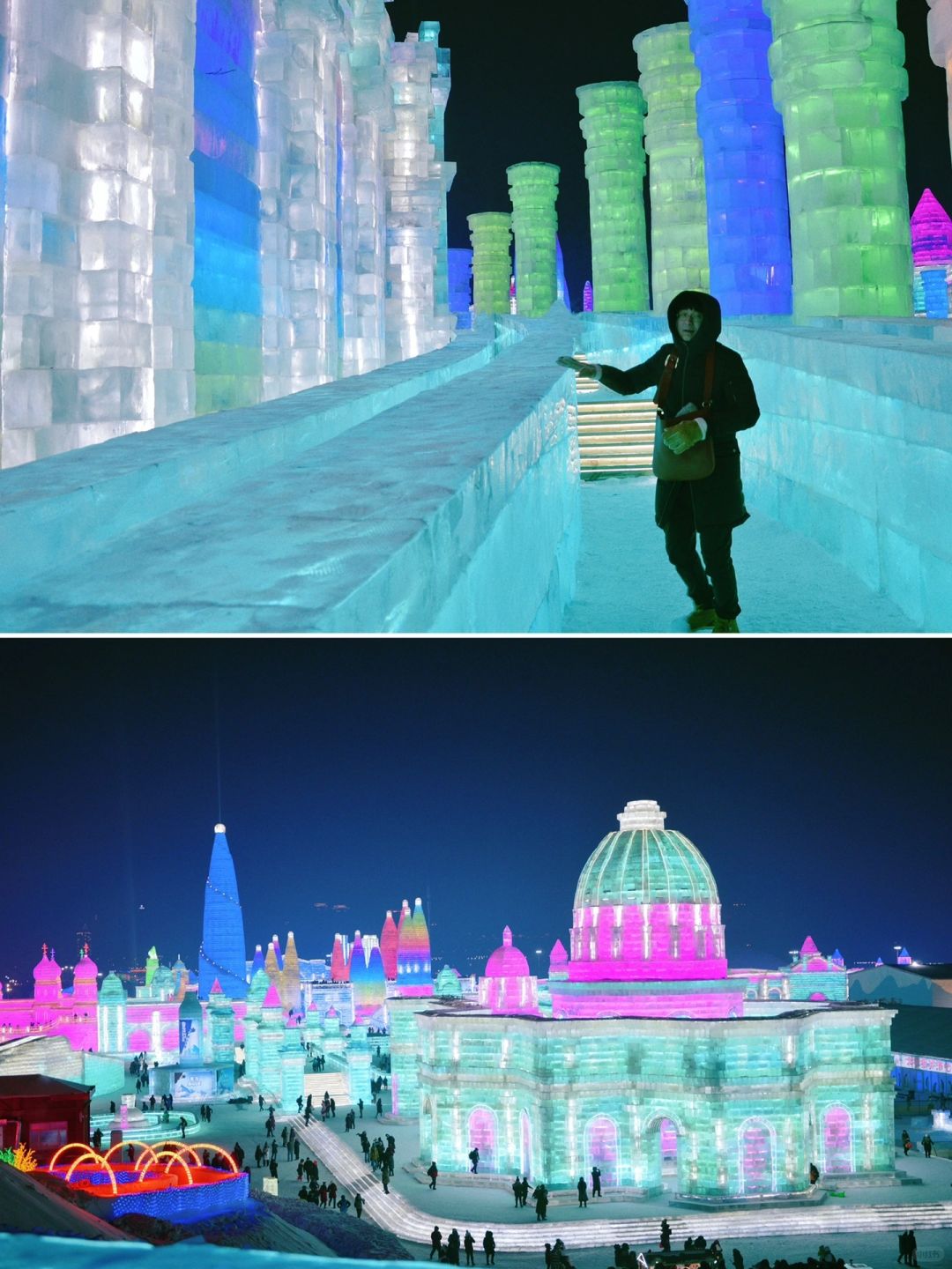 📍冰雪大世界:满分推荐,白天晚上都巨美!都是冰和雪雕的建筑,里面超级冷,一定要多穿两双袜子