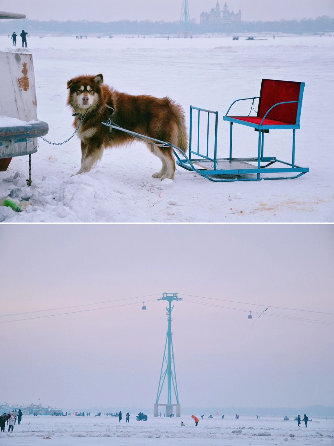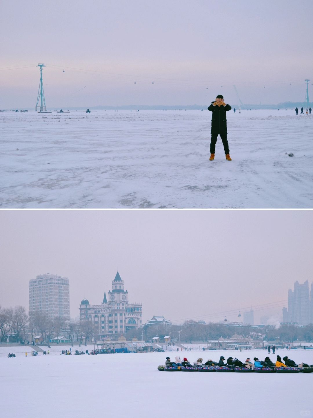 📍松花江:结冰后的松花江太酷了,上面可以走人,然后还有一些娱乐项目,比如狗拉雪橇(感觉狗狗实在太可怜了看着好心疼)