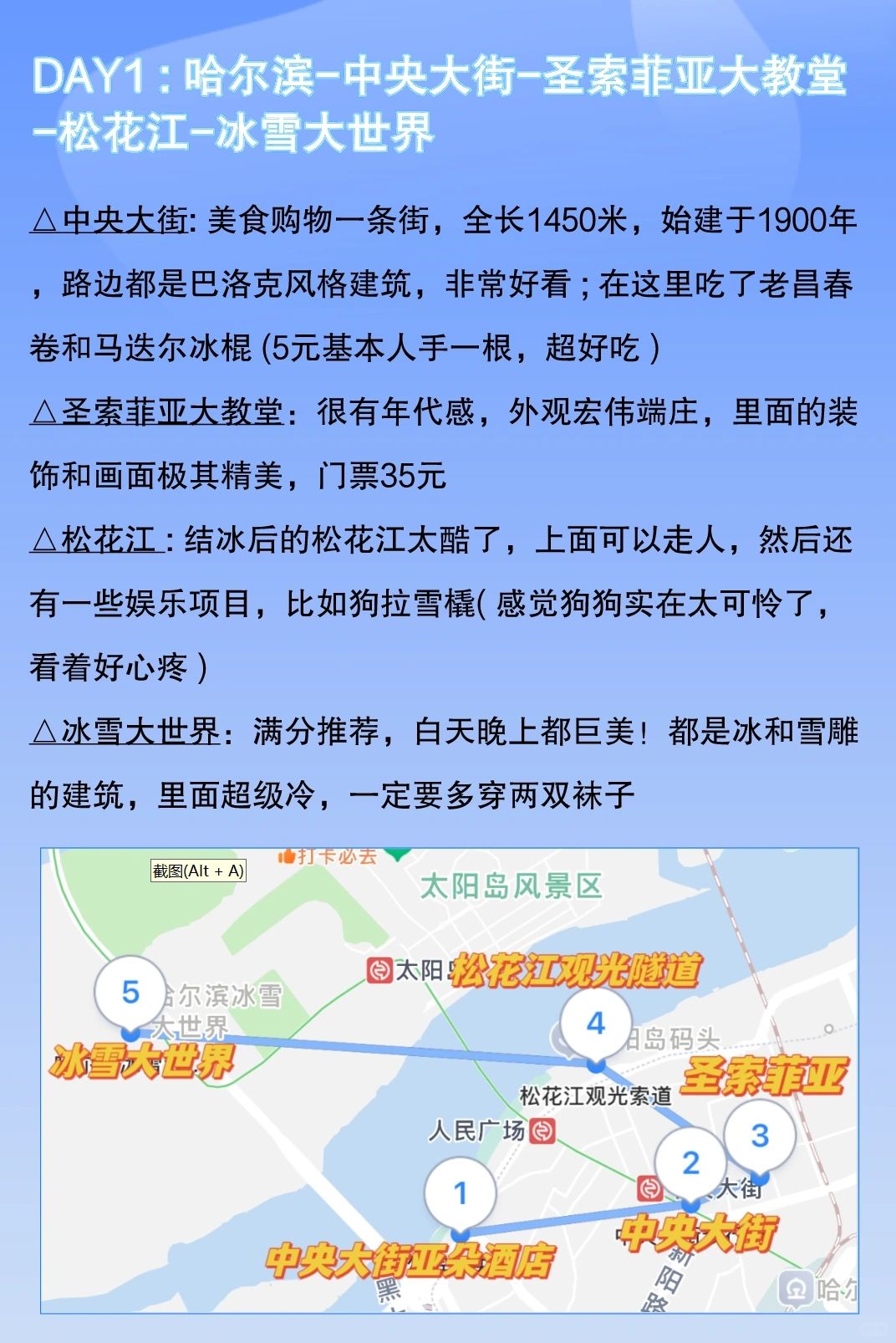 1️⃣DAY1: 哈尔滨→中央大街→圣索菲亚大教堂→松花江→冰雪大世界