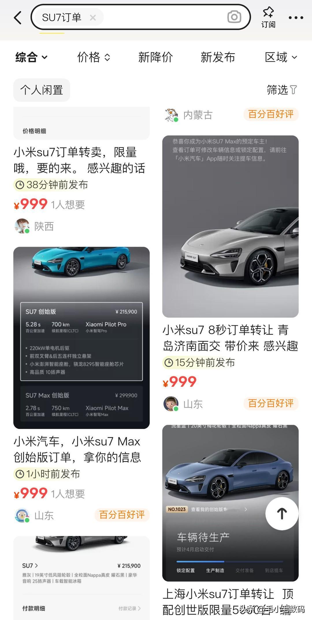 小米SU7创始版确实稀有,但这加价转让就没必要了吧...