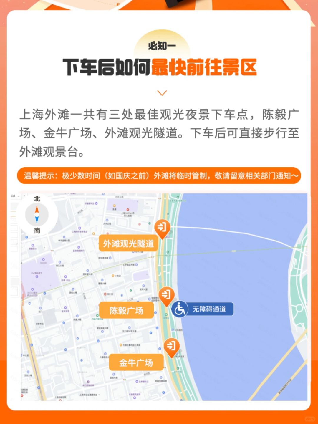 外滩一共有三处最佳观光夜景下车点:陈毅广场、金牛广场、外滩观光隧道。可以定位这三个地方都行,下车后可直接步行至外滩观景台