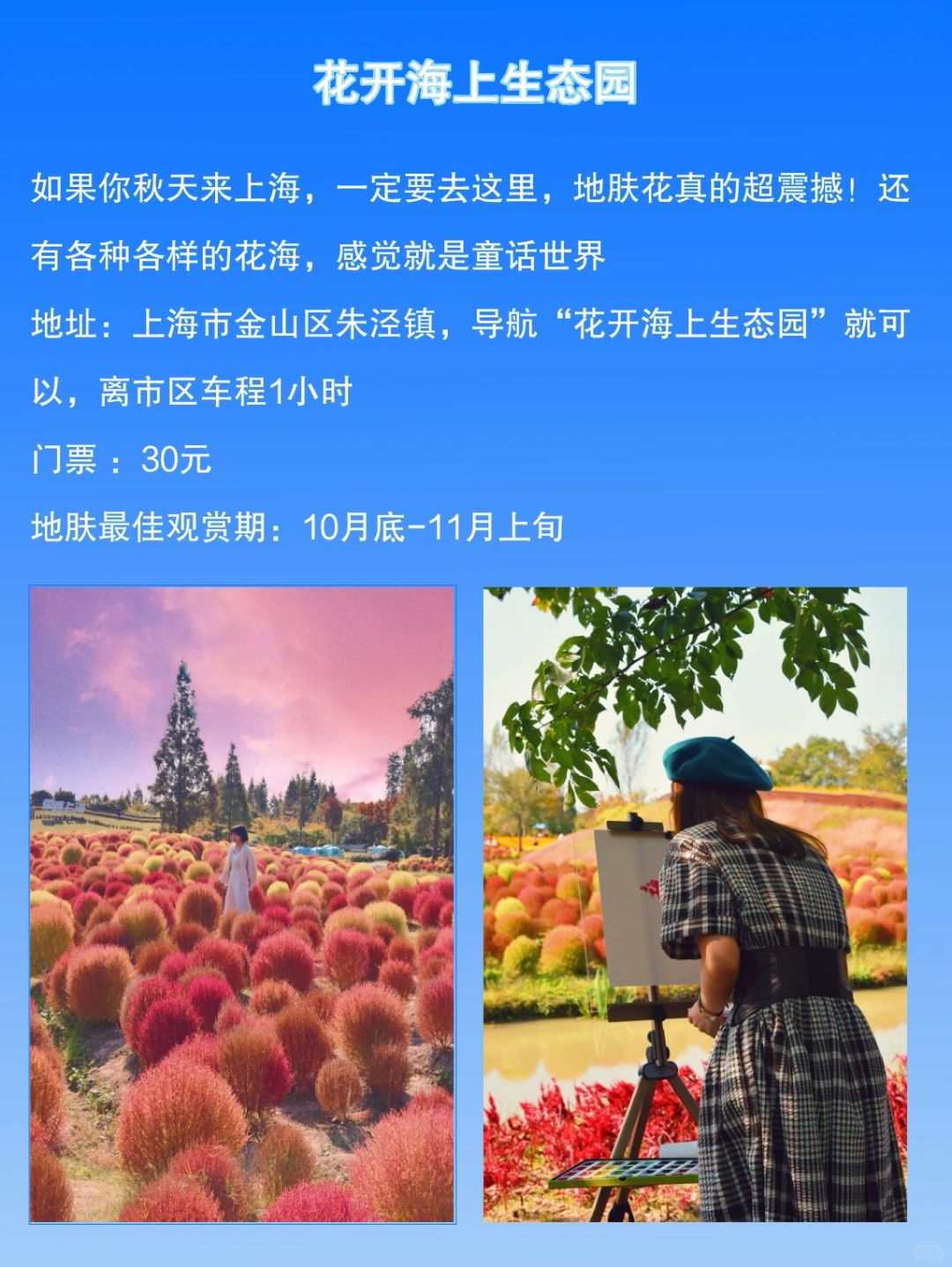 如果你秋天来上海,一定要去这里,地肤花真的超震撼!还有各种各样的花海,感觉就是童话世界