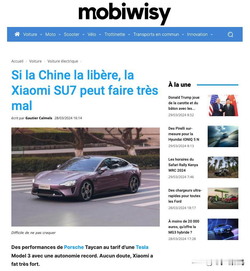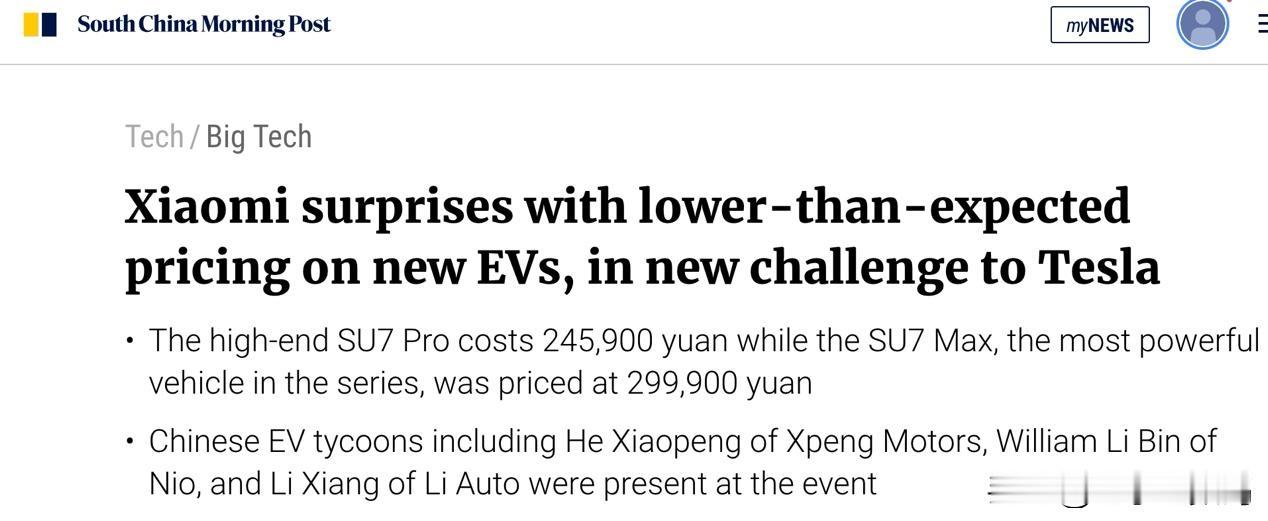 而且国外媒体也都相继跟进了报道,他们认为,来自中国的科技公司小米入局造车,将对当前世界新能源霸主特斯拉造成巨大冲击,还把小米SU7称为“中国的苹果汽车”,这评价简直太高了。