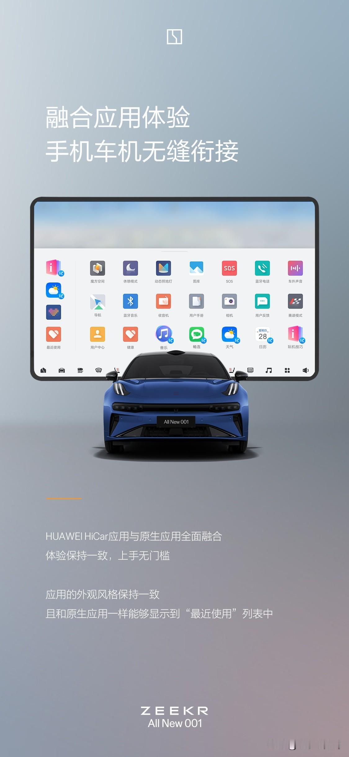 极客居然宣布,全新极氪001车型居然要上线融合华为Hi Car互联。