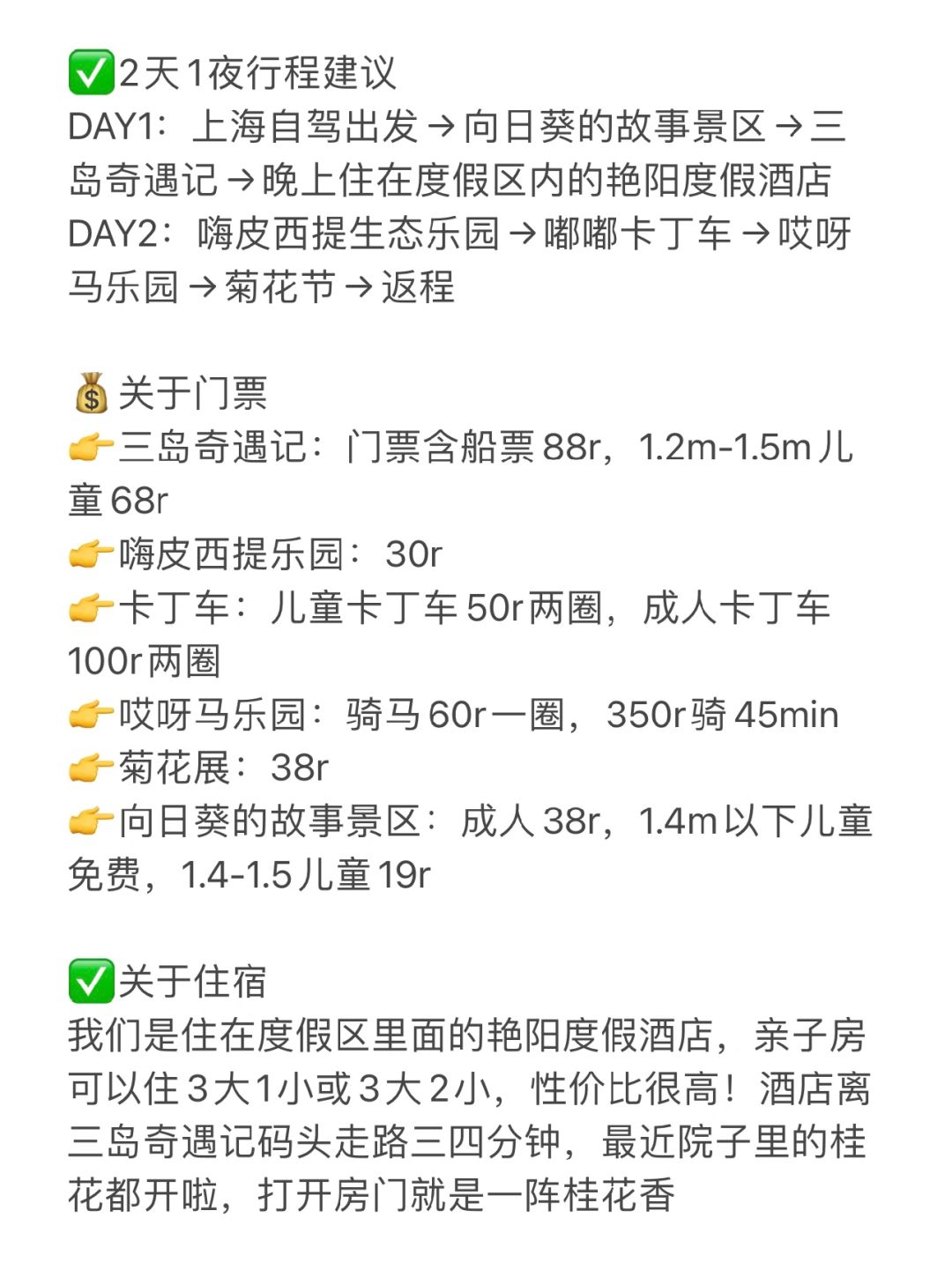 DAY1:上海自驾出发→向日葵的故事景区→三岛奇遇记→晚上住在度假区内的艳阳度假酒店