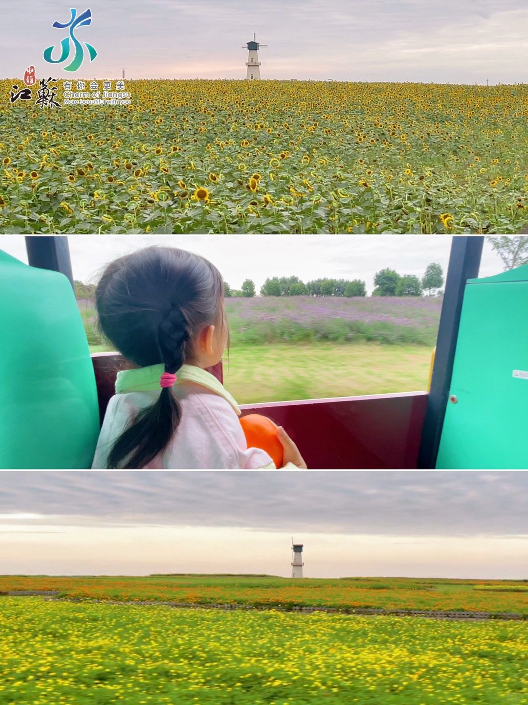 景区超级大,一定要坐小火车或租自行车观光!里面种满了向日葵、粉黛、太阳花、马鞭草等植物,在这里完全能放空自我