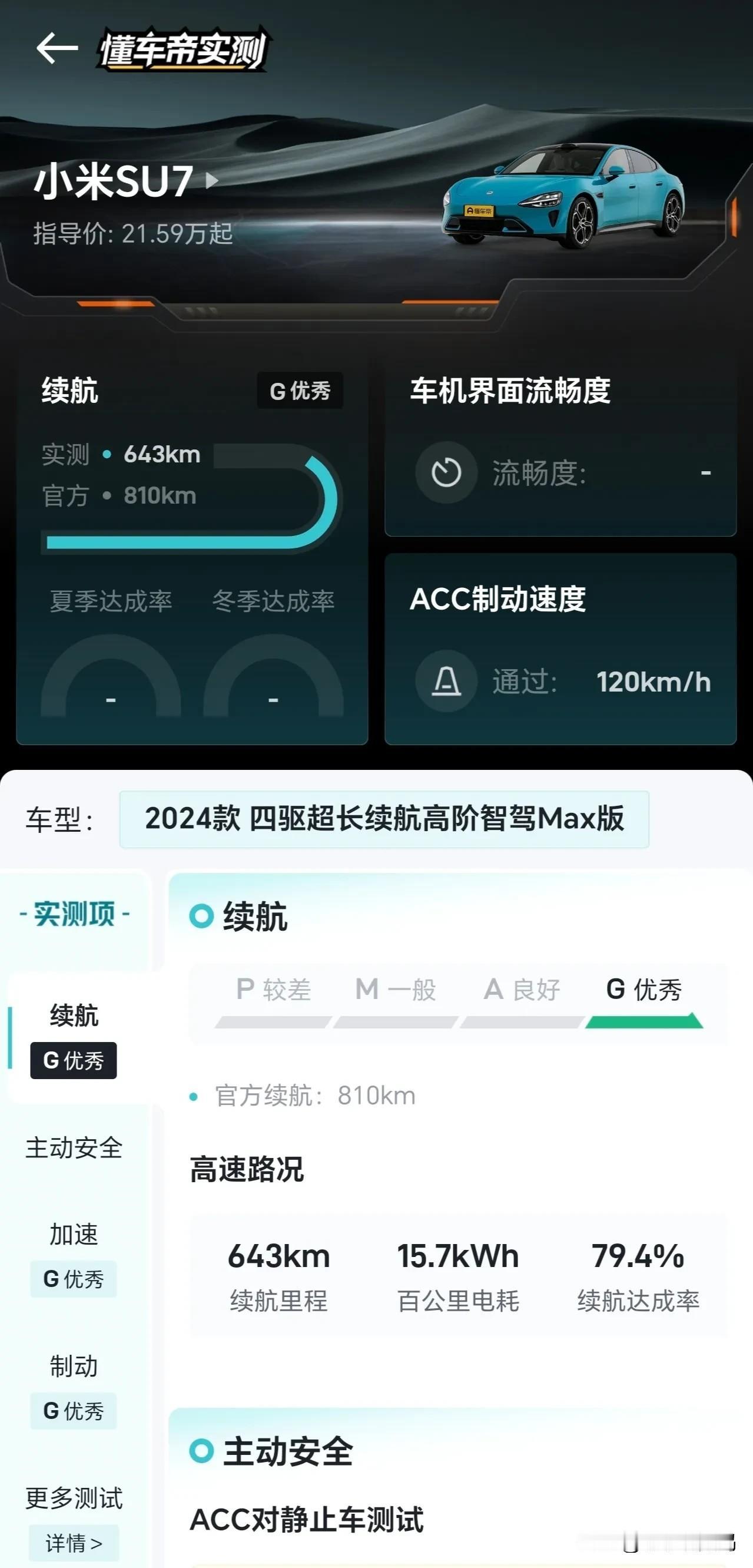 原本觉得懂车帝实测的小米SU7续航达成79.4%,也就属于大众水准而已。