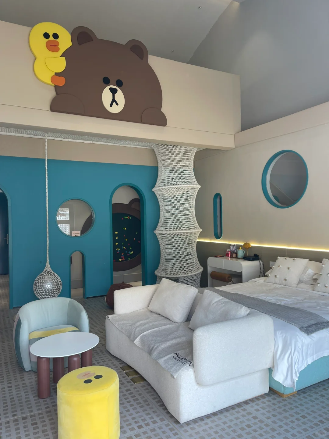 我们在定的套餐,999r,包含了布朗熊亲子房+下午茶+蜜塔森野乐园2大2小门票,周日入住不用补差价,很划算!!