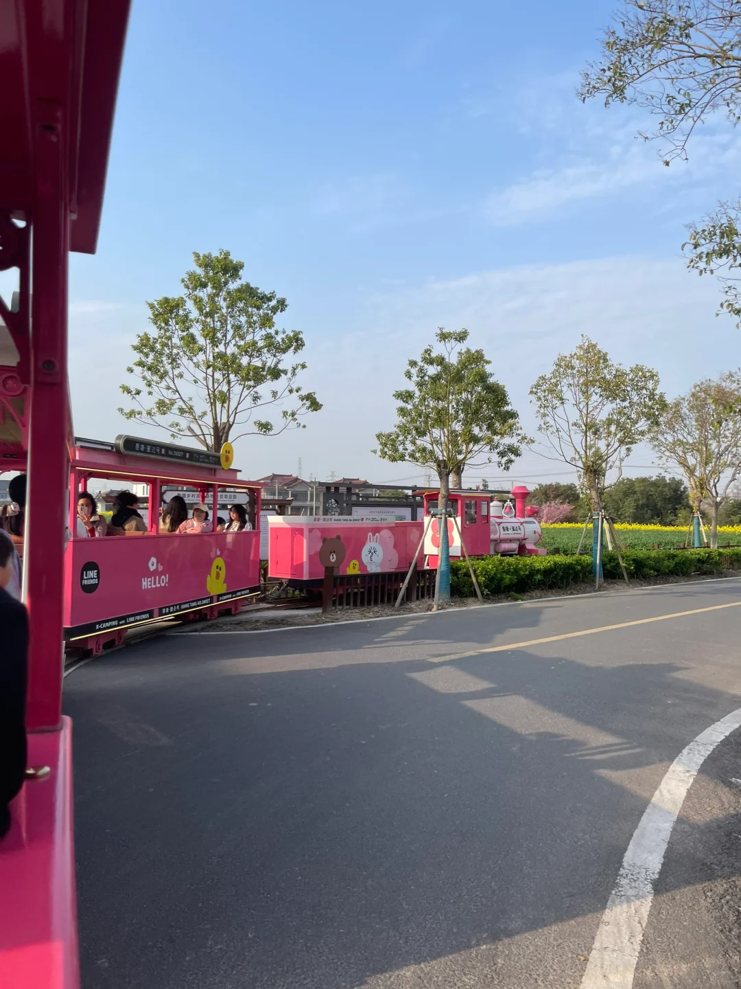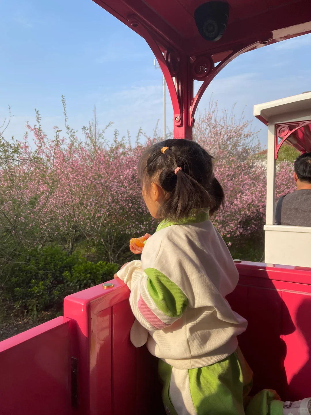 我们还带一一坐了小火车,30r一个人,可以坐着环绕村子一圈,大概25分钟左右,村子里的桃花油菜花都开了,春色满园,这个季节很舒服!!