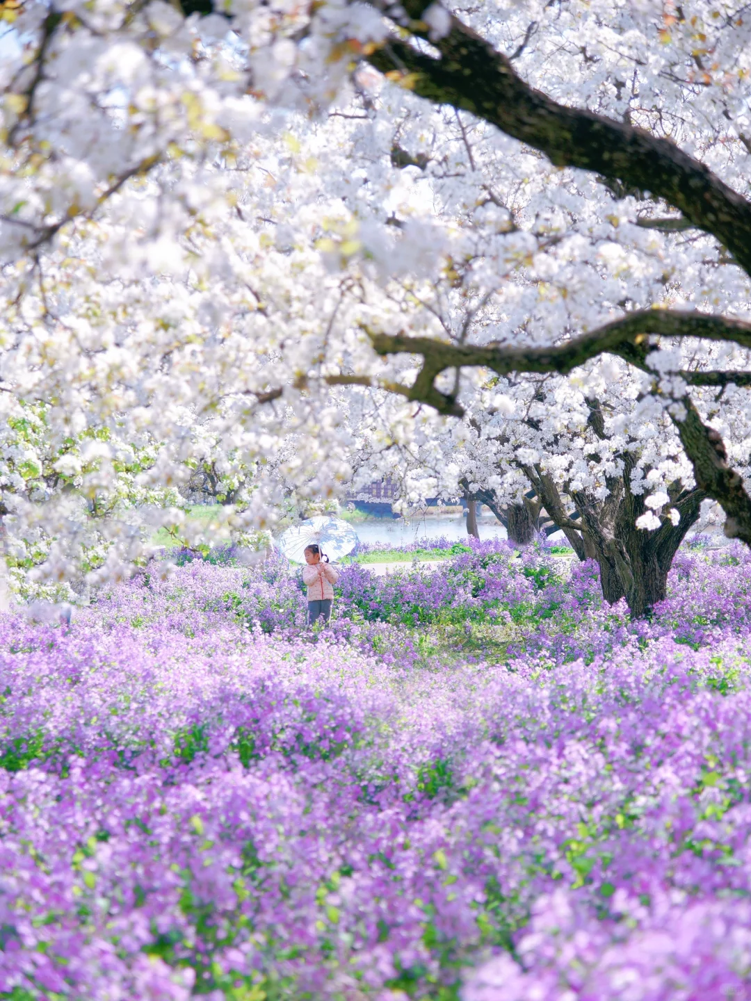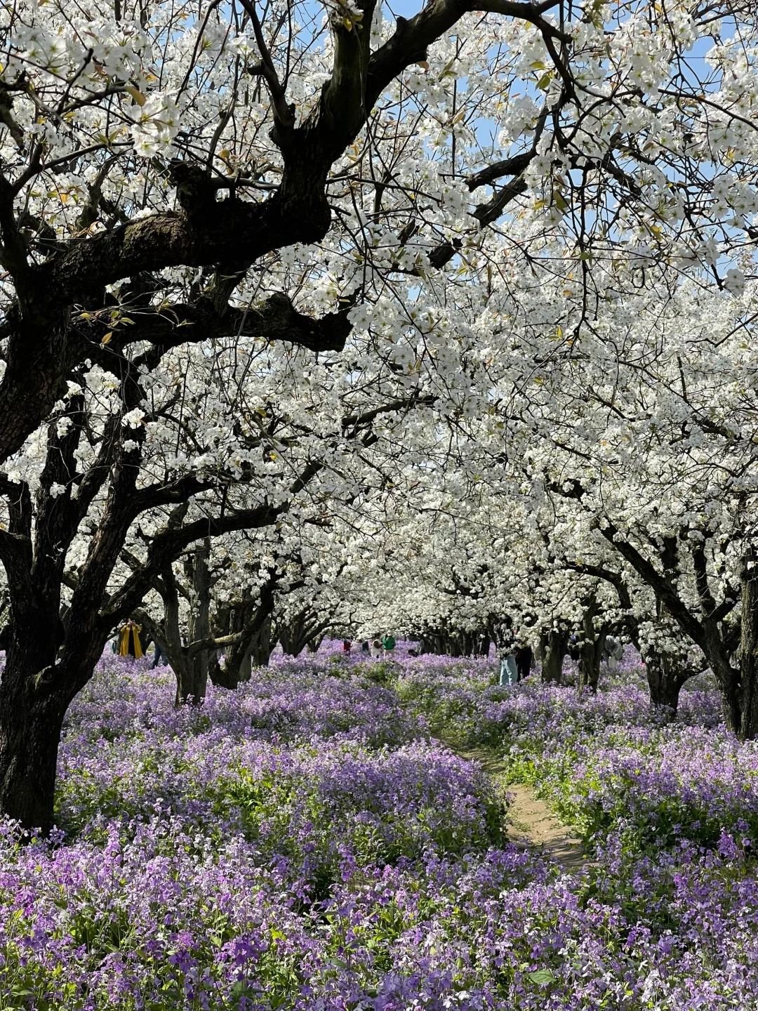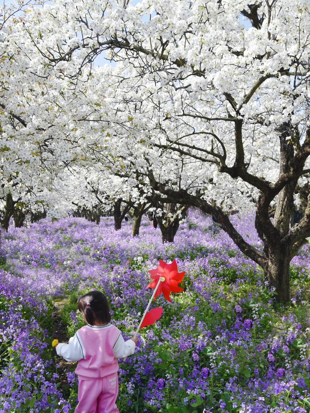 ✔感受:上次来三台山被2000多亩的衲田花海震撼到了,这次来被梨兰花海再一次暴击!500亩百年老梨树和上万株二月兰同时盛放,媳妇儿一直各种哇哦!