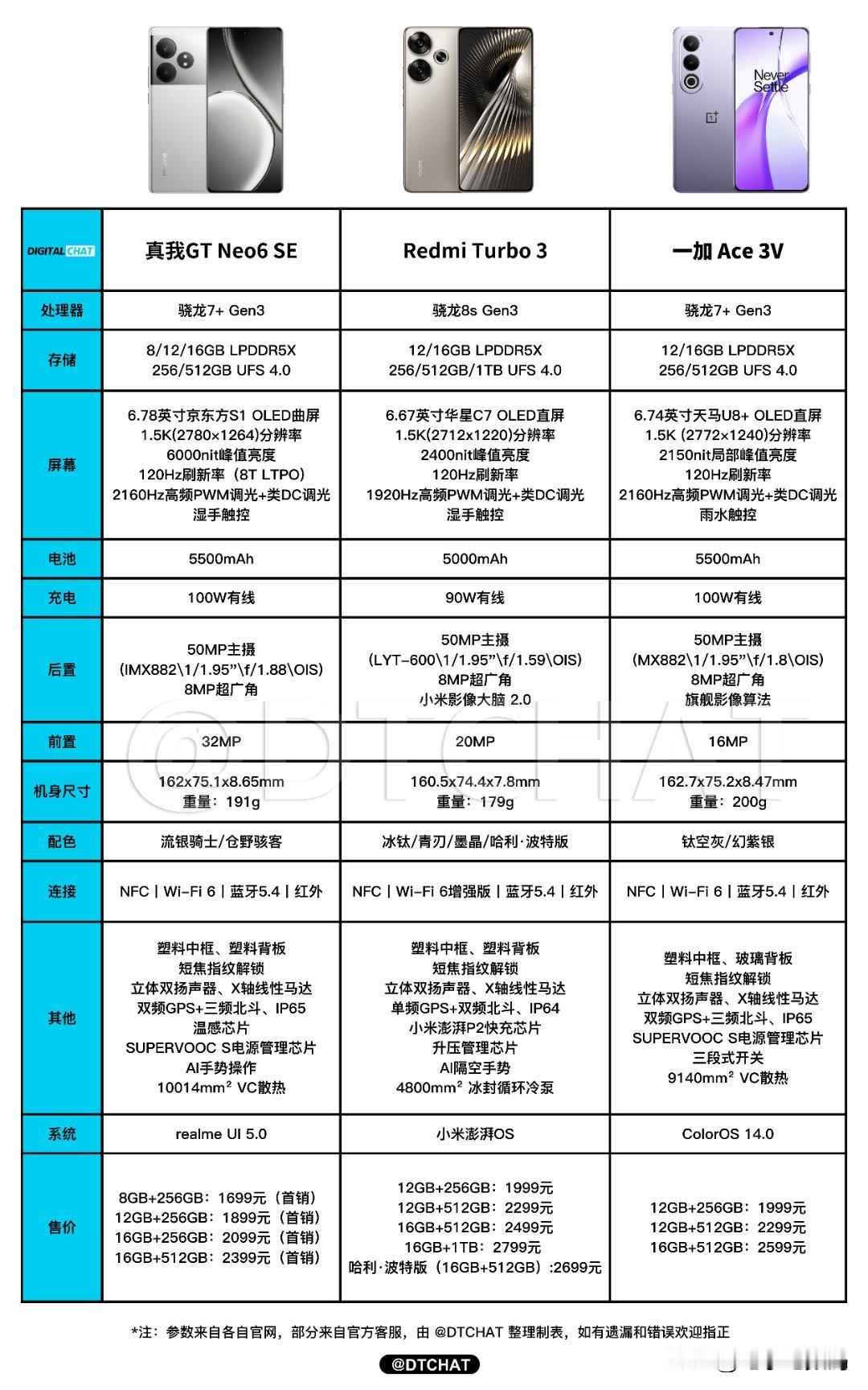 三大热门中端机型,真我GT Neo6 SE、Redmi Turbo 3、一加 Ace 3V应该怎么选?