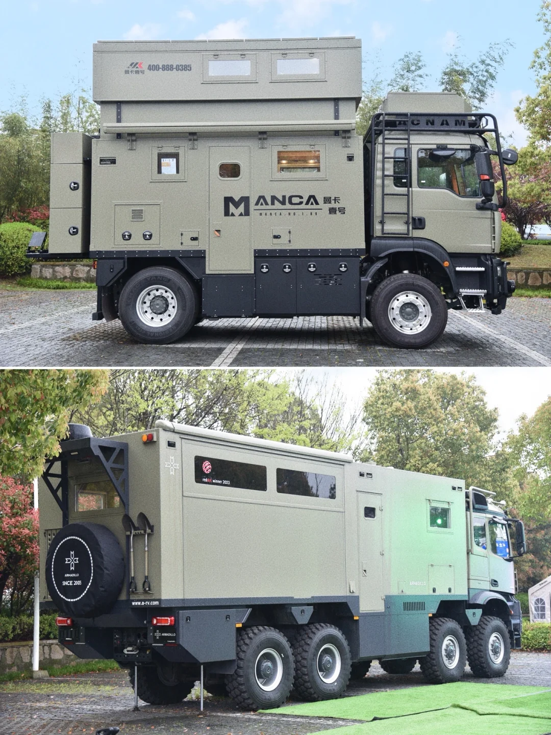 zui酷的非阿莫迪罗·征服者T重型越野房车莫属了,采用梅赛德斯·奔驰Arocs 8×8全时8驱底盘打造,据说售价1088万元起