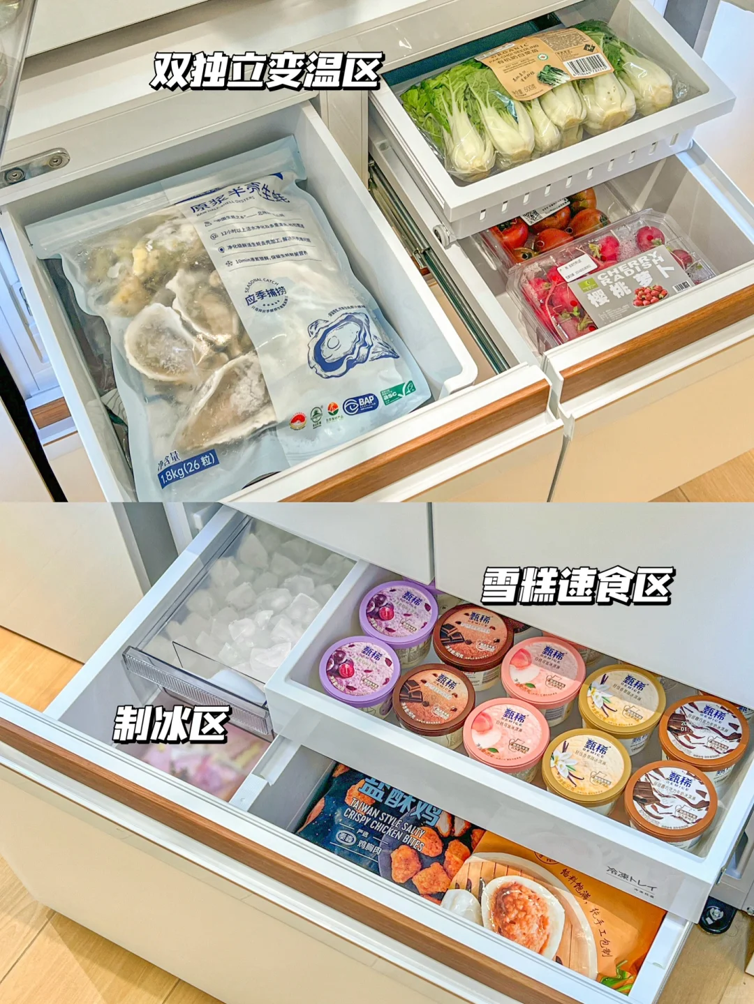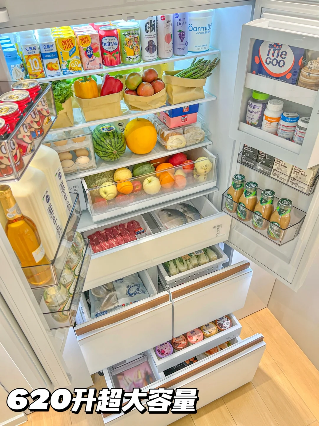 ▪️620升大容量给我满满的安全感,两个独立变温区,可以根据食材状态随意切换温度,夏天囤更多冰淇淋的话就可以全都设置成冷冻模式