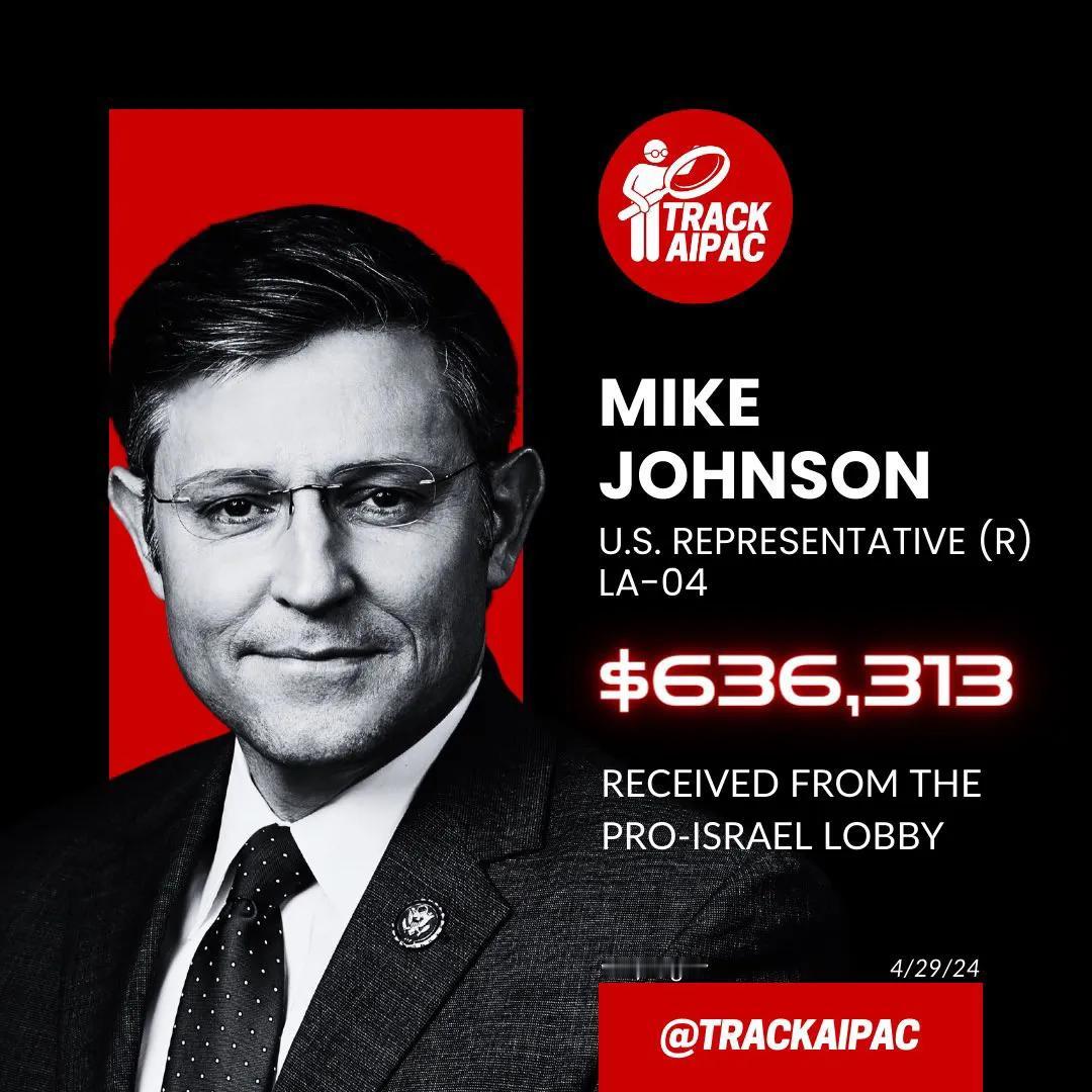 [机智]评几句:当国际刑事法院向普京发出逮捕令时,美国对这一决定表示赞赏和欢迎。但是当国际刑事法院向内塔尼亚胡发出逮捕令时,美国要惩罚国际刑事法院。虚伪且双标的美国。另外,美国国会众议长迈克·约翰逊没少拿以色列的钱,见图三。