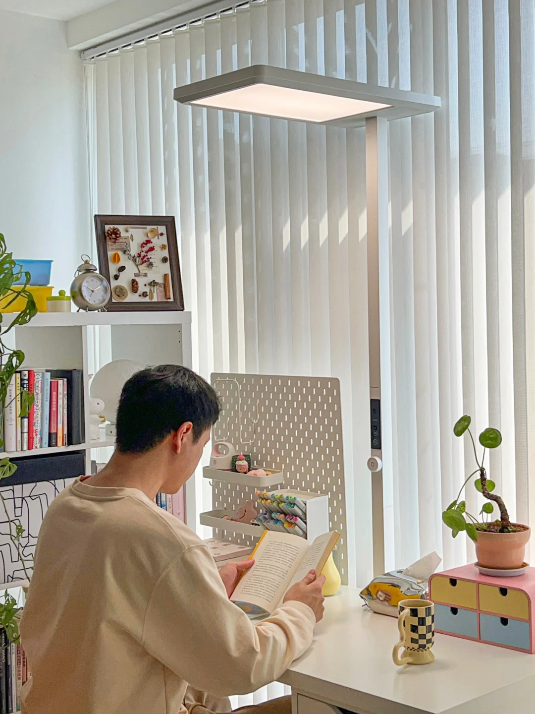 时间过得好快 转眼间又到了一年的夏天🍃 一切都变得充满了朝气🌷 我家是三室两厅一厨一卫的户型 建筑面积116平,套内93平🏠 白色系硬装搭配了各种清新的色彩 让房间变得越来越有趣🤔 五月的微风阵阵清凉 站在窗前整个人都变得清醒许多 家属喜欢坐在阳台书桌前看书办公📕 但一过中午,家里光线就不太够了 眼睛很容易疲劳干涩👀 经过我俩对比寻找🔍 最后被这款松下适阅护眼大路灯给吸引住了! 它的光线就很自然,95以上的显指 就像散射的阳光一样☀️ 丝毫没有普通灯光照出来的朦胧感 灯罩的德国BASF膜能避免眩光 缓解阅读时眼睛的不适感 而且低蓝光全光谱,光色更细腻 开灯之后感觉眼中的世界都鲜活不少 夜晚使用后也不用担心影响睡眠💤 当然,它的性价比是最吸引我的🧮 1k+💰就能得到这样优秀的灯光 况且作为大品牌松下的产品,质量也有保障👍🏼 除此之外,它还很“懂事” 每次坐到桌前,都不用亲自动手,它就及时点亮💡 离开后也会自动熄灭,电费都能省下不少 而且它能根据环境光自动调节亮度 让桌面始终保持合适的光线 这样就不用再手动反复调光啦! 语音控制也很灵敏 只需要通上电,不用联网就能随时回应 我休息看电影时也会点亮它🎞️ 上下两面独立调光 调节出不同的模式满足了我的居家需要 现在有了这个松下晴天柱 无论是白天还是夜间,都是满满的舒适感🌷! 现在入手同款有优惠💁🏻‍♀️ 宝子们快给家里的灯光来个大焕新吧!