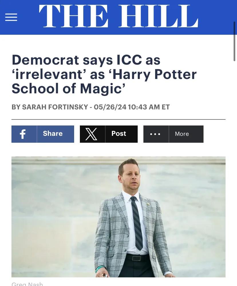 美国民主党人表示国际刑事法院(ICC)如同“哈利波特的魔法学校”一样无足轻重。民主党籍众议员杰瑞德·莫斯科维茨(Jared Moskowitz)在接受福斯新闻的访谈中抨击国际刑事法院(ICC)是政治性的并且毫无意义。他表示ICC就像哈利波特的魔法学校一样,完全无关紧要。