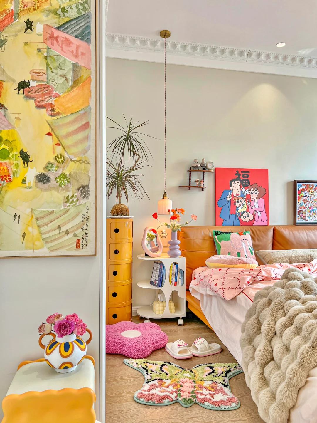睡到自然醒后点亮闪闪发光的蝴蝶结吊灯