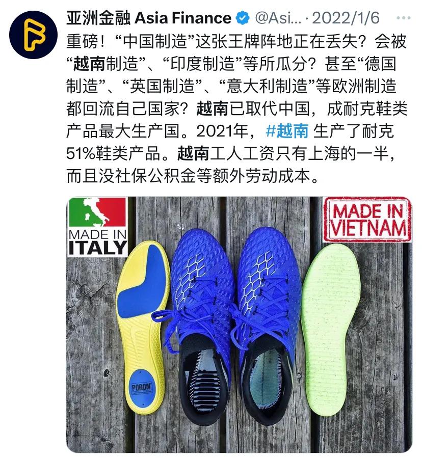 2022年:世界产业链正在往印度和越南转移。吹嘘“越南制造”攻城略地,将取代“中国制造”。