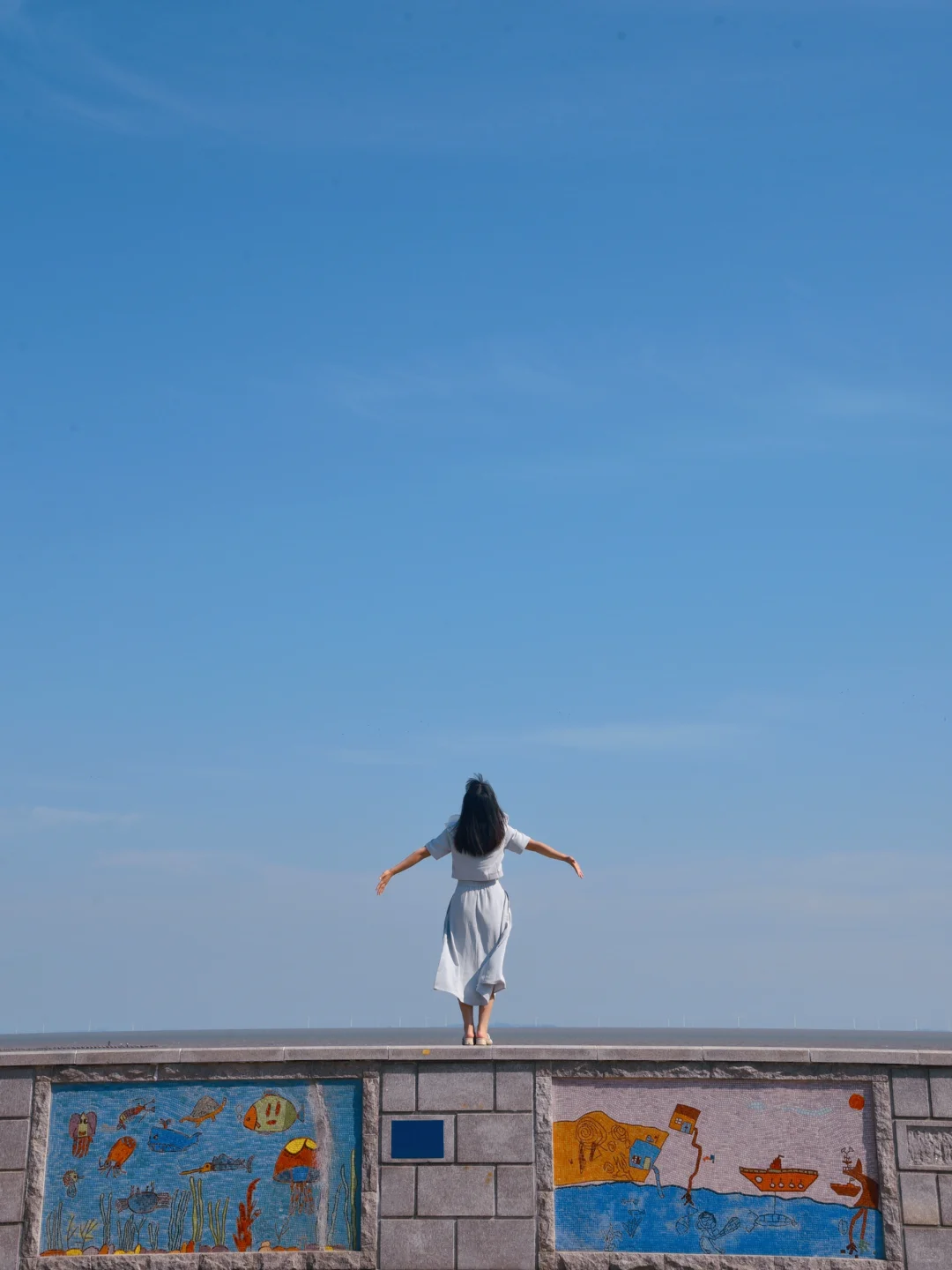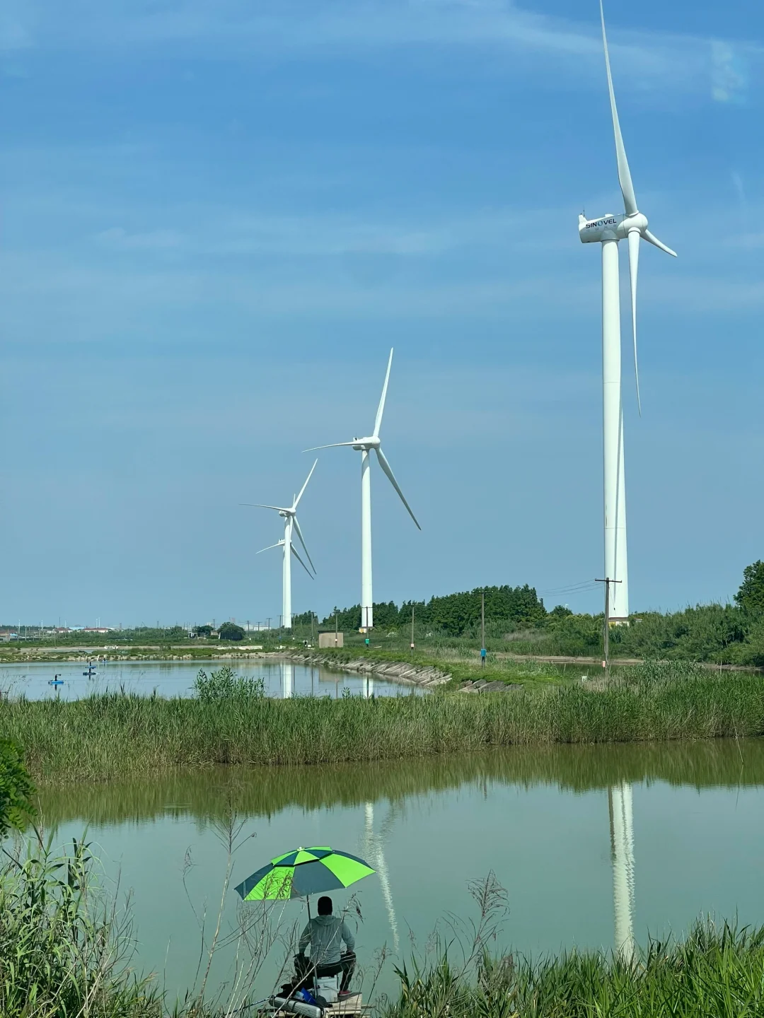 我和媳妇儿在上海奉贤,找到了一处绝美风车海!!虽然海水没那么蓝,但是大海+风车+海边公路,依然有被惊喜到