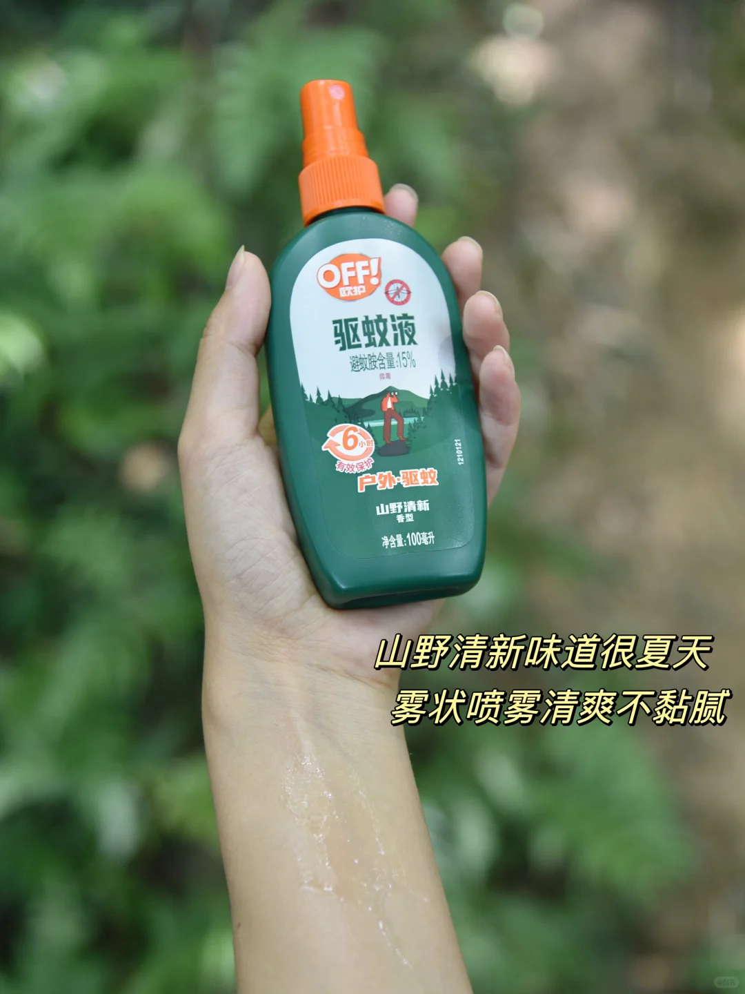 我买的山野清新味儿的,很清新不刺鼻,小小的一瓶很便携,我一般爬山喜欢轻装上阵,能揣兜里的绝不带包!喷雾是那种雾状的,清爽不黏腻!喷一次一下午都管用~(娃可以用芦荟那款)