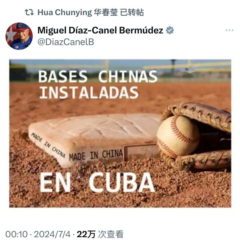 古巴共产党中央委员会第一书记、古巴国家主席迪亚斯-卡内尔发布了一张讽刺美国的图片。外交部部长助理华春莹转发了迪亚斯-卡内尔发出的这张图片。