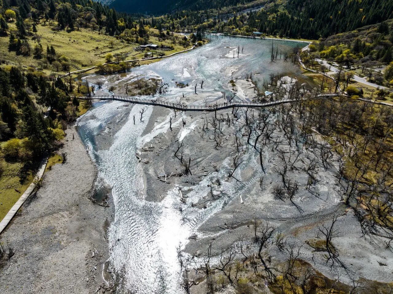 乘坐观光车深入景区,首站便是树正沟,随后在三沟交汇处的诺日朗中心站分路而行。