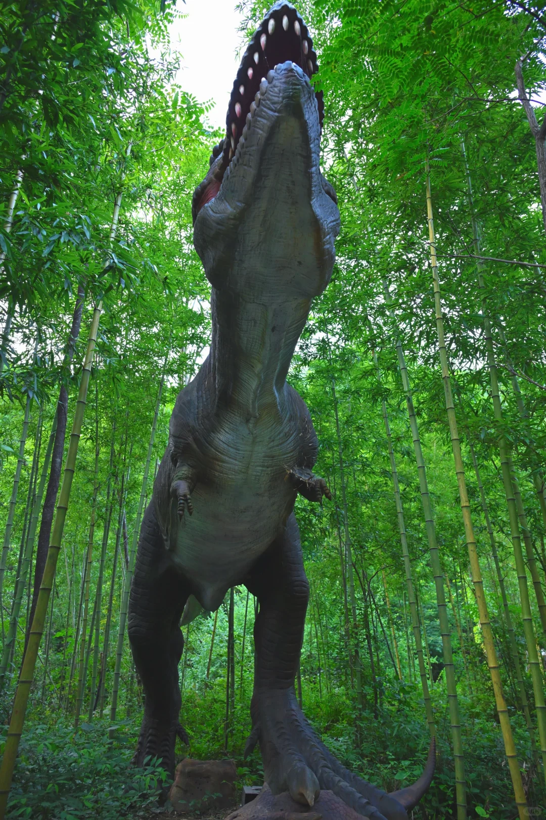有很多各式各样的恐龙,做的非常逼真,还有恐龙滑滑梯