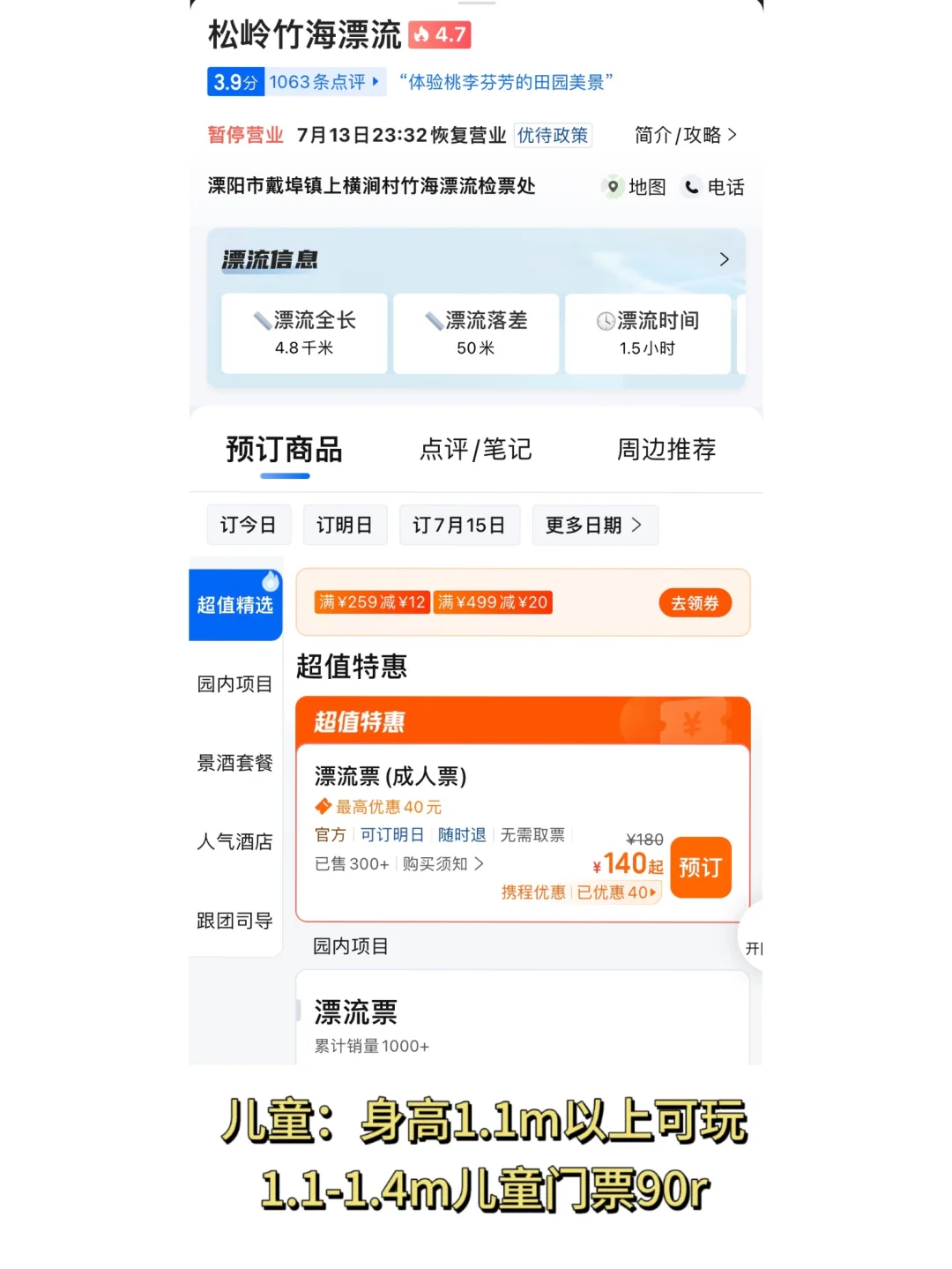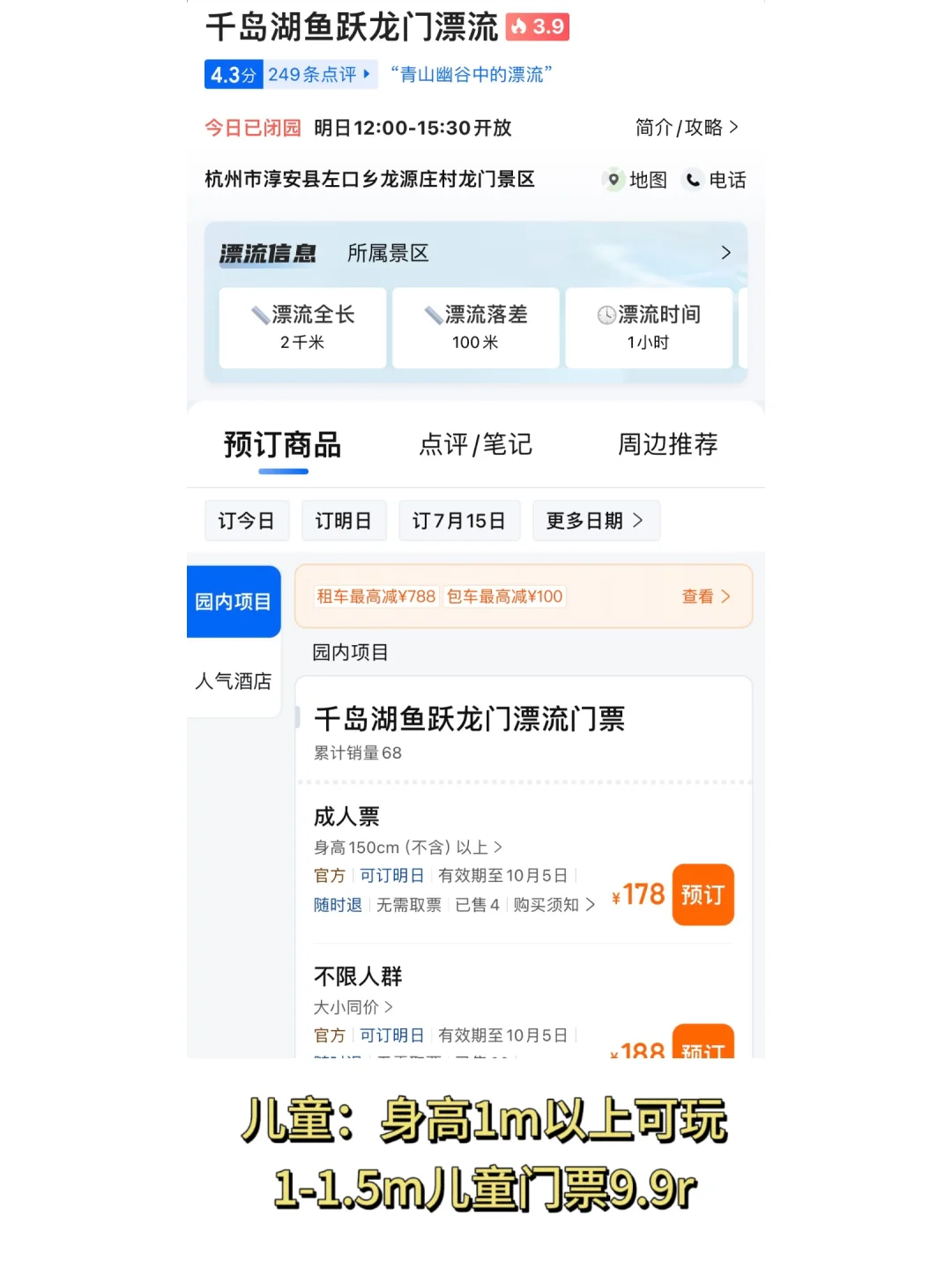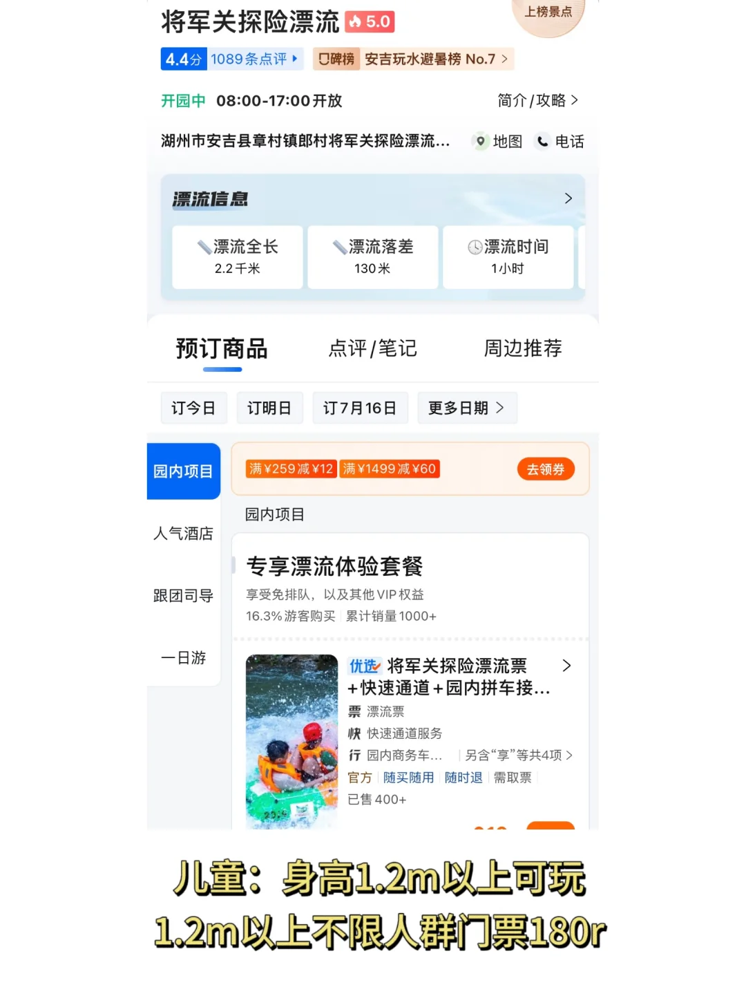 🎫门票:不含漂流199,含漂流299