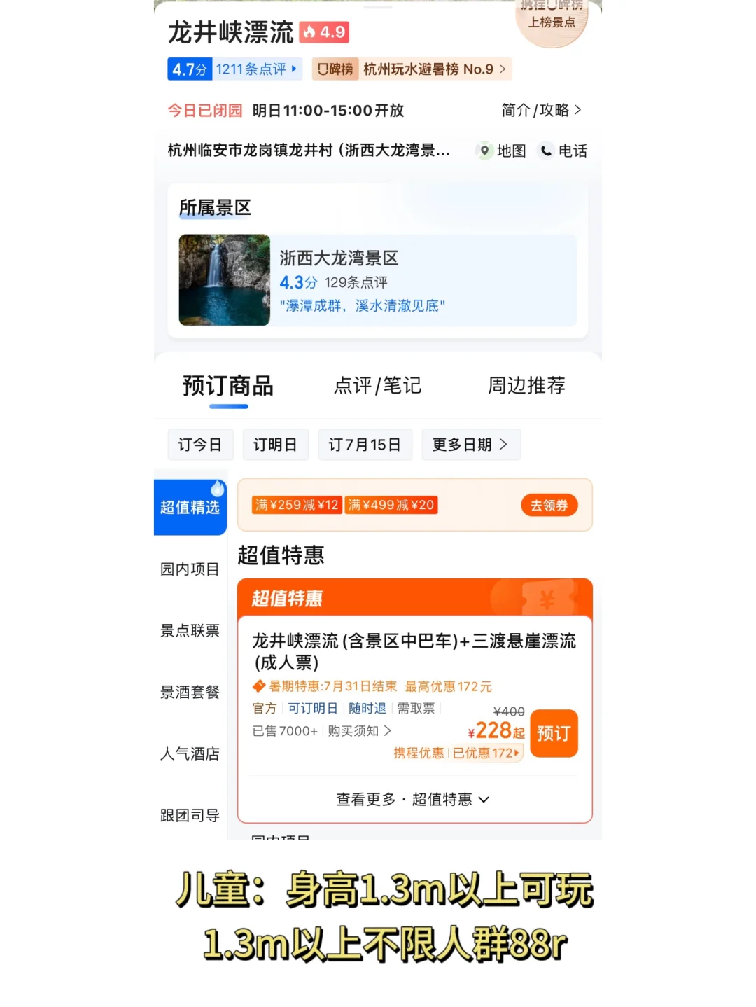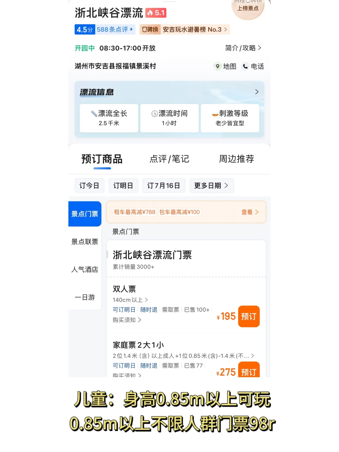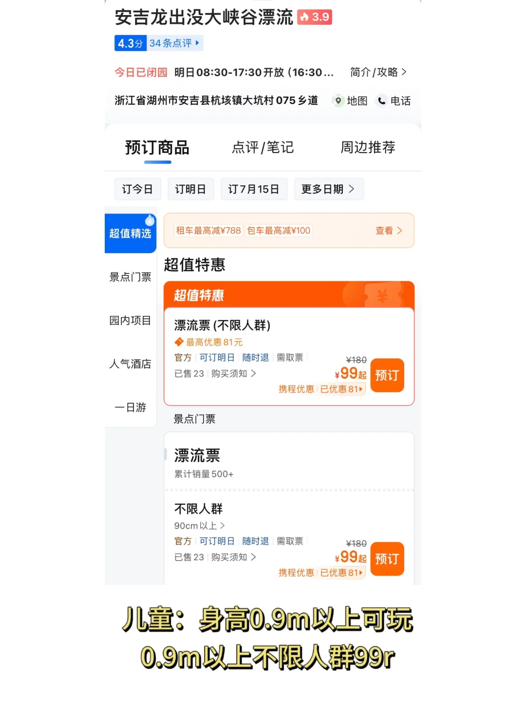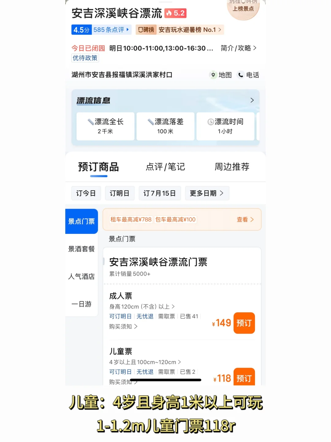 🎫门票:不含漂流199,含漂流299