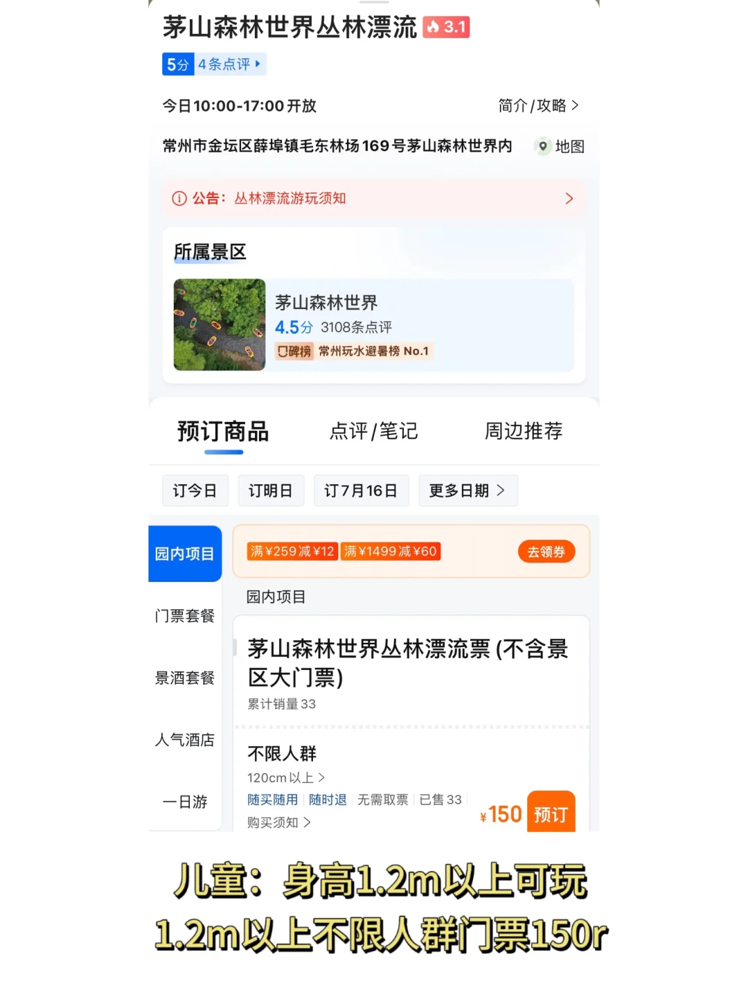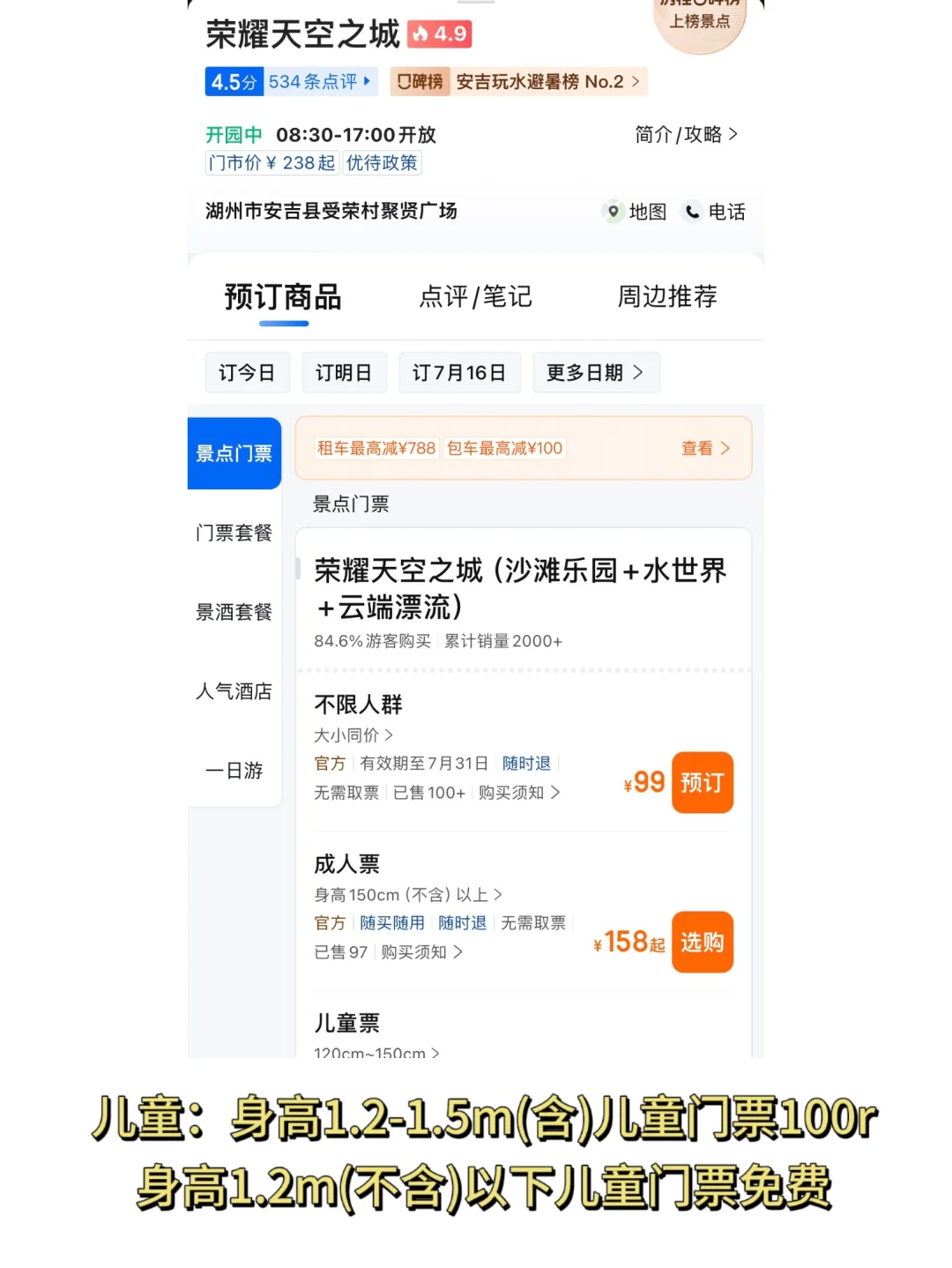 🎫门票:168,儿童现在有9.9