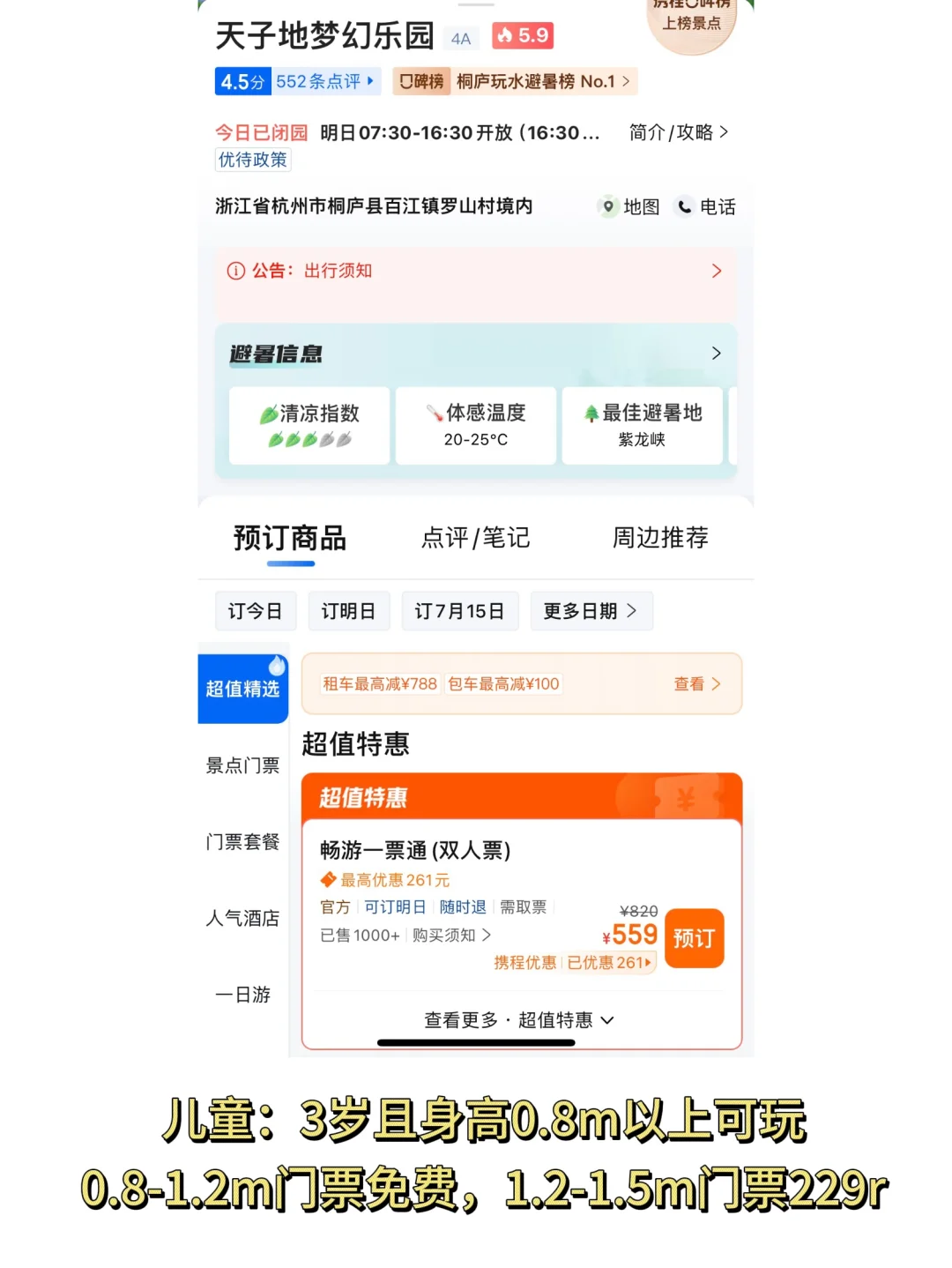 🎫门票:95(1.4m以下免门票)