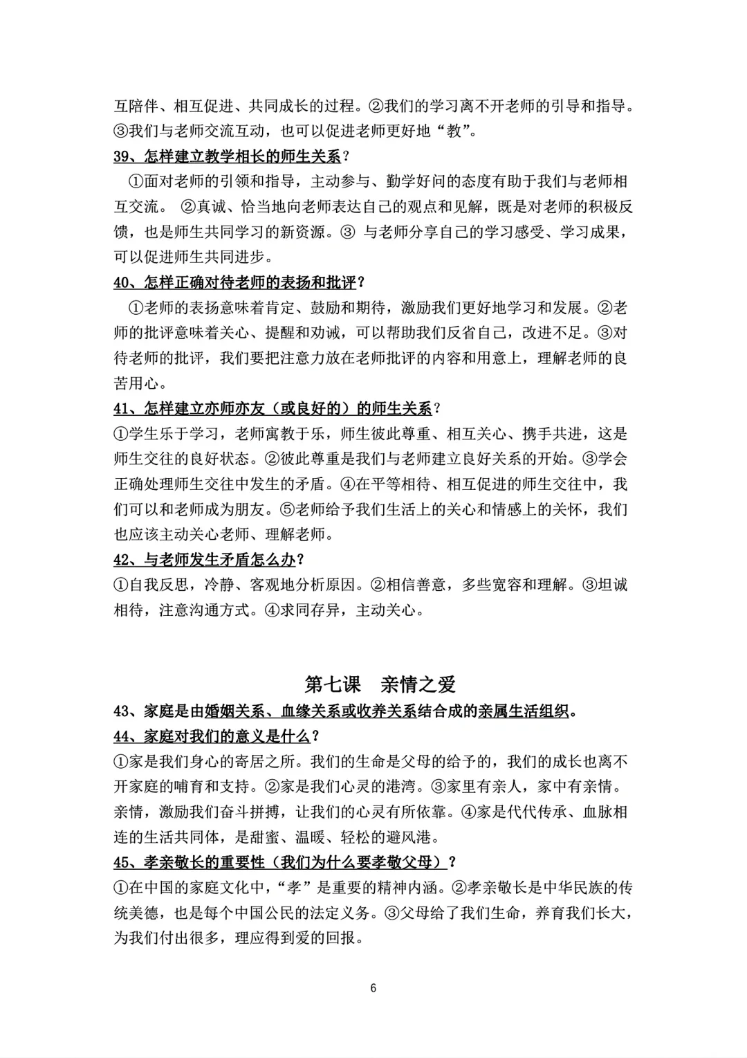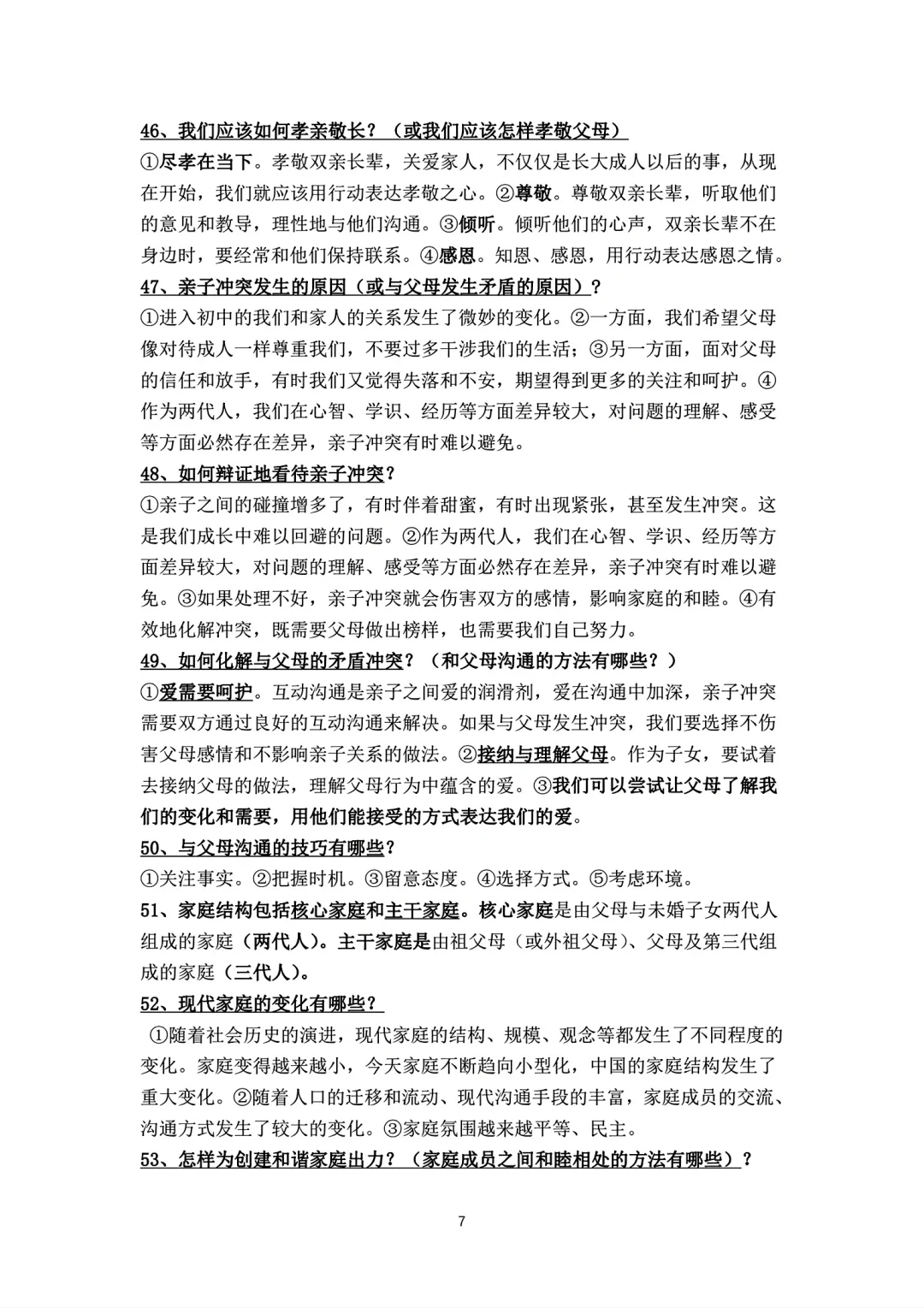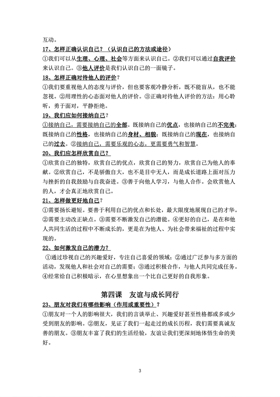 七年级上册政治背诵知识点