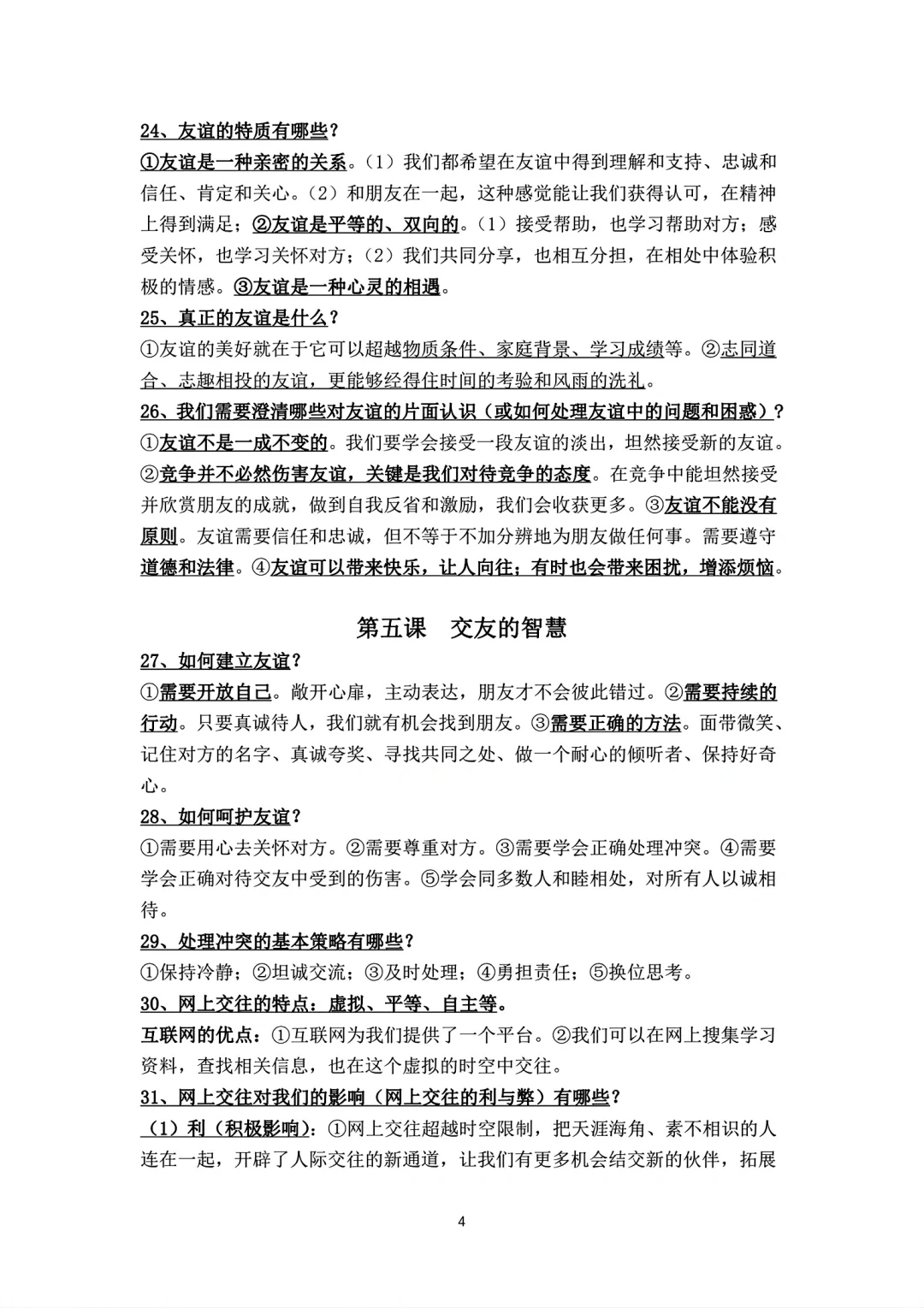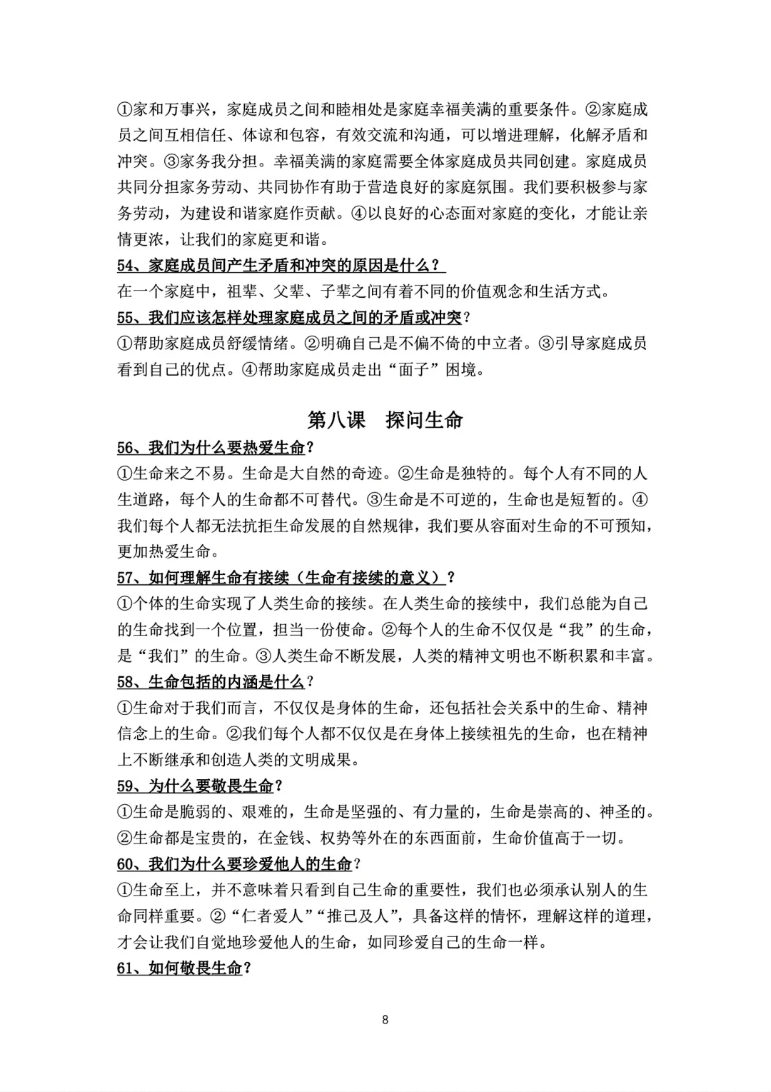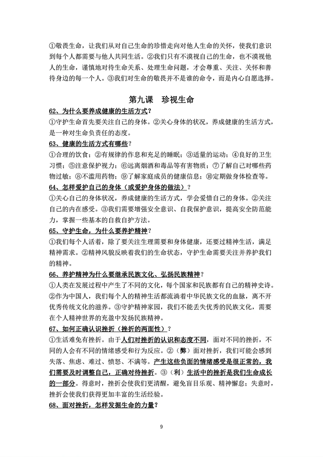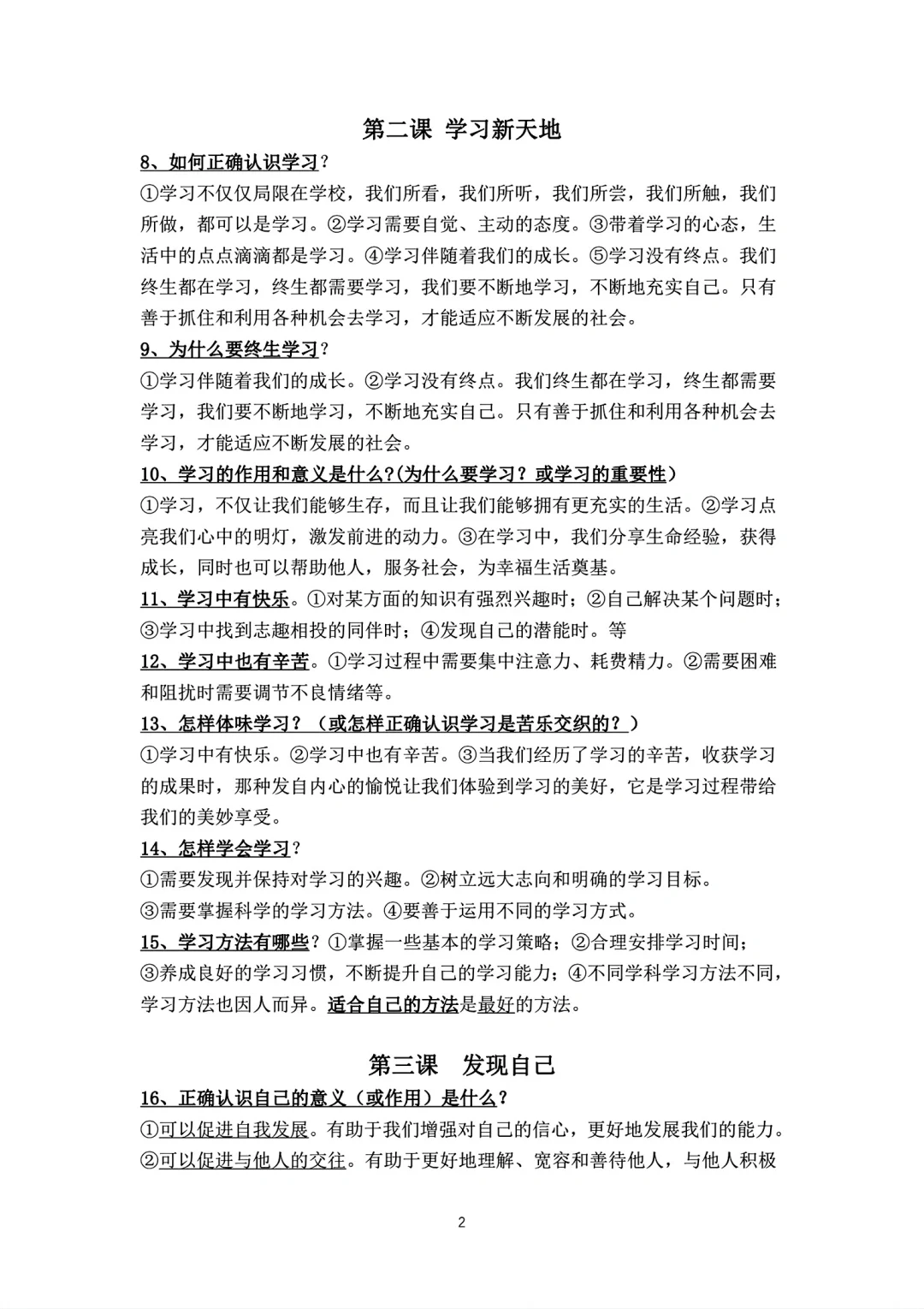 七年级上册政治背诵知识点