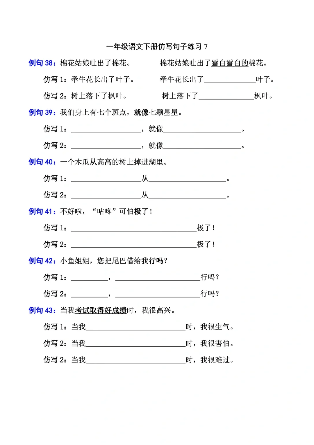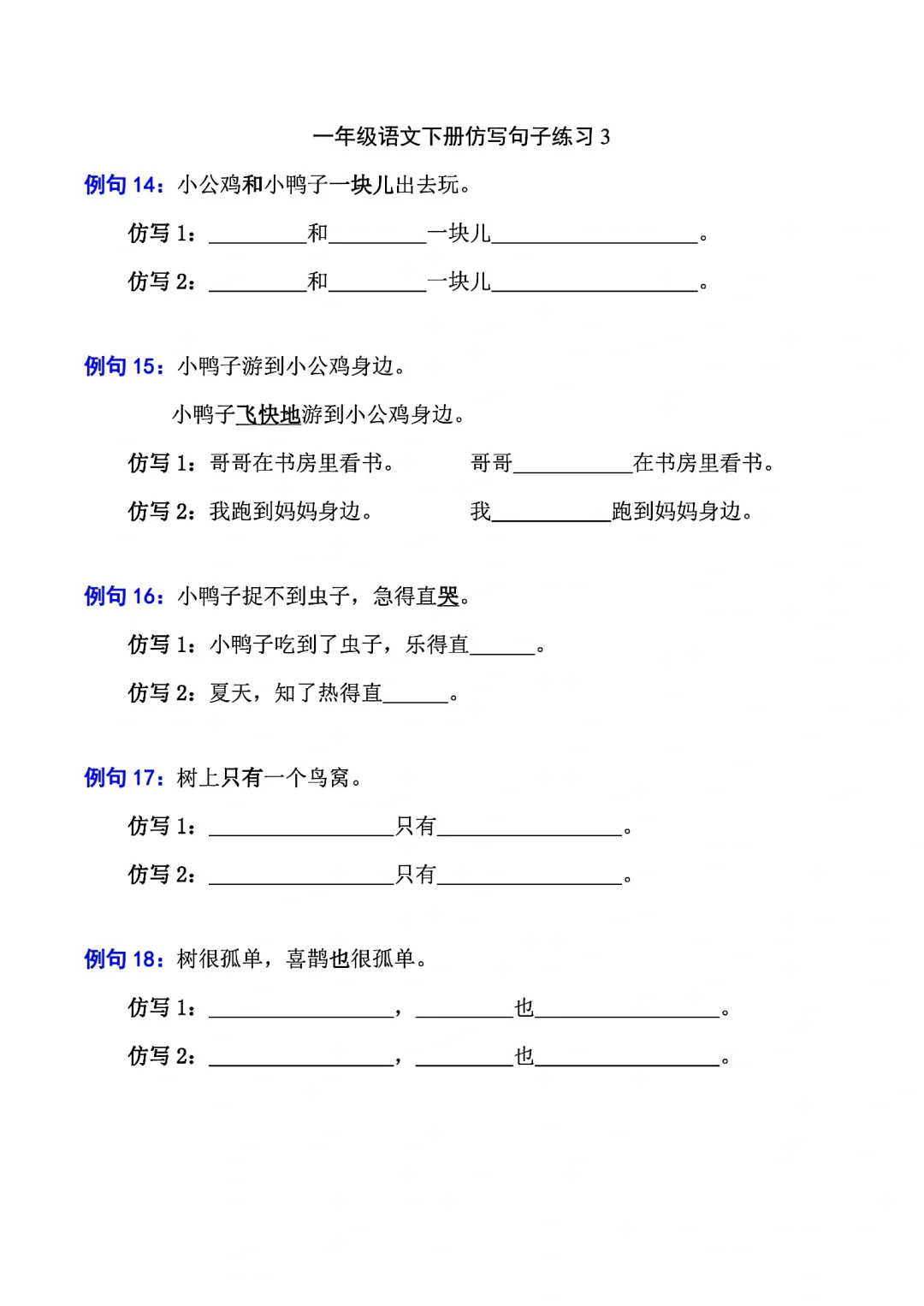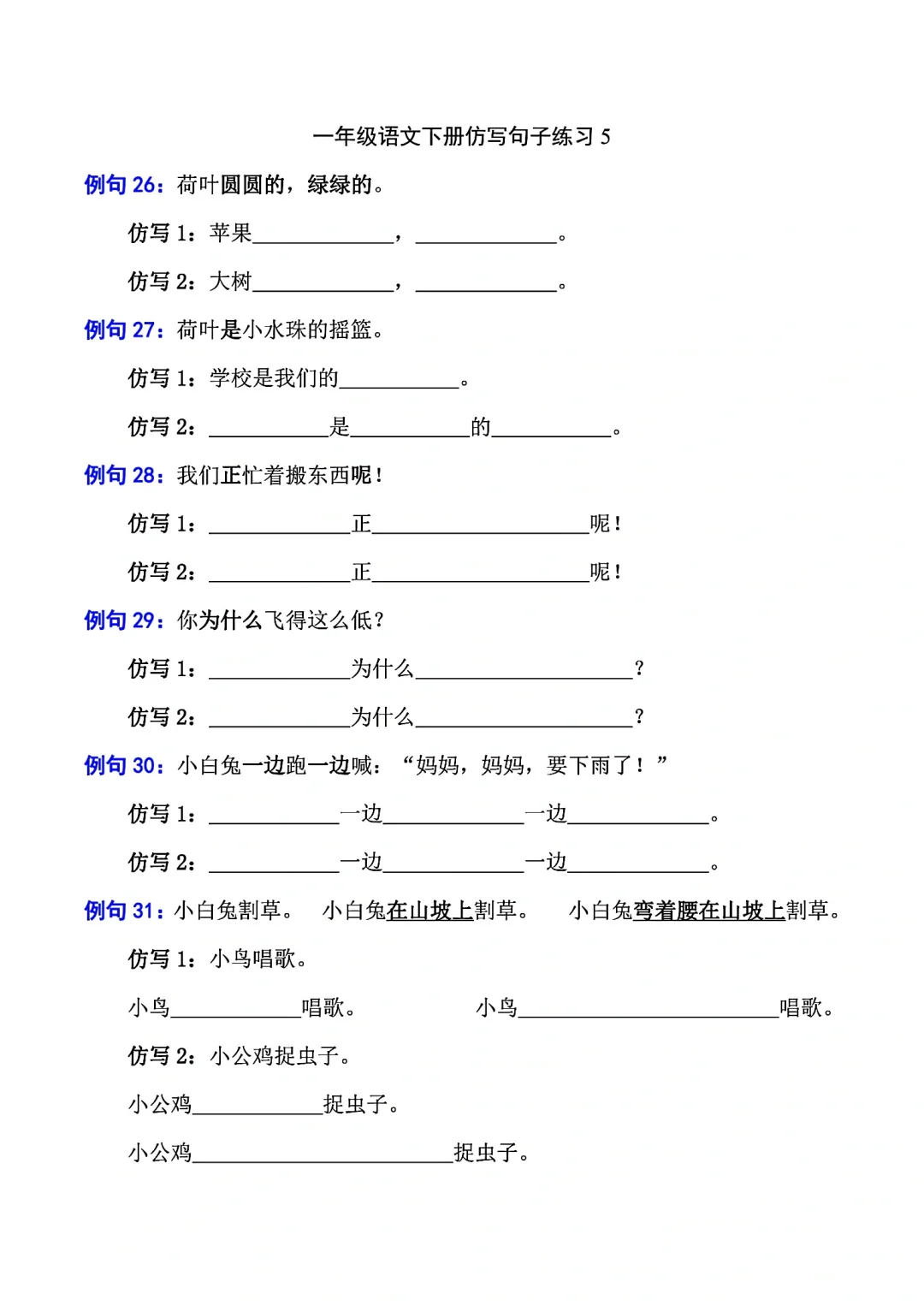 一年级语文下册照样子写句子(仿写句子)