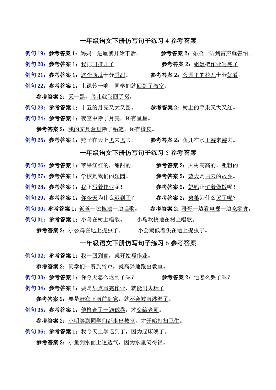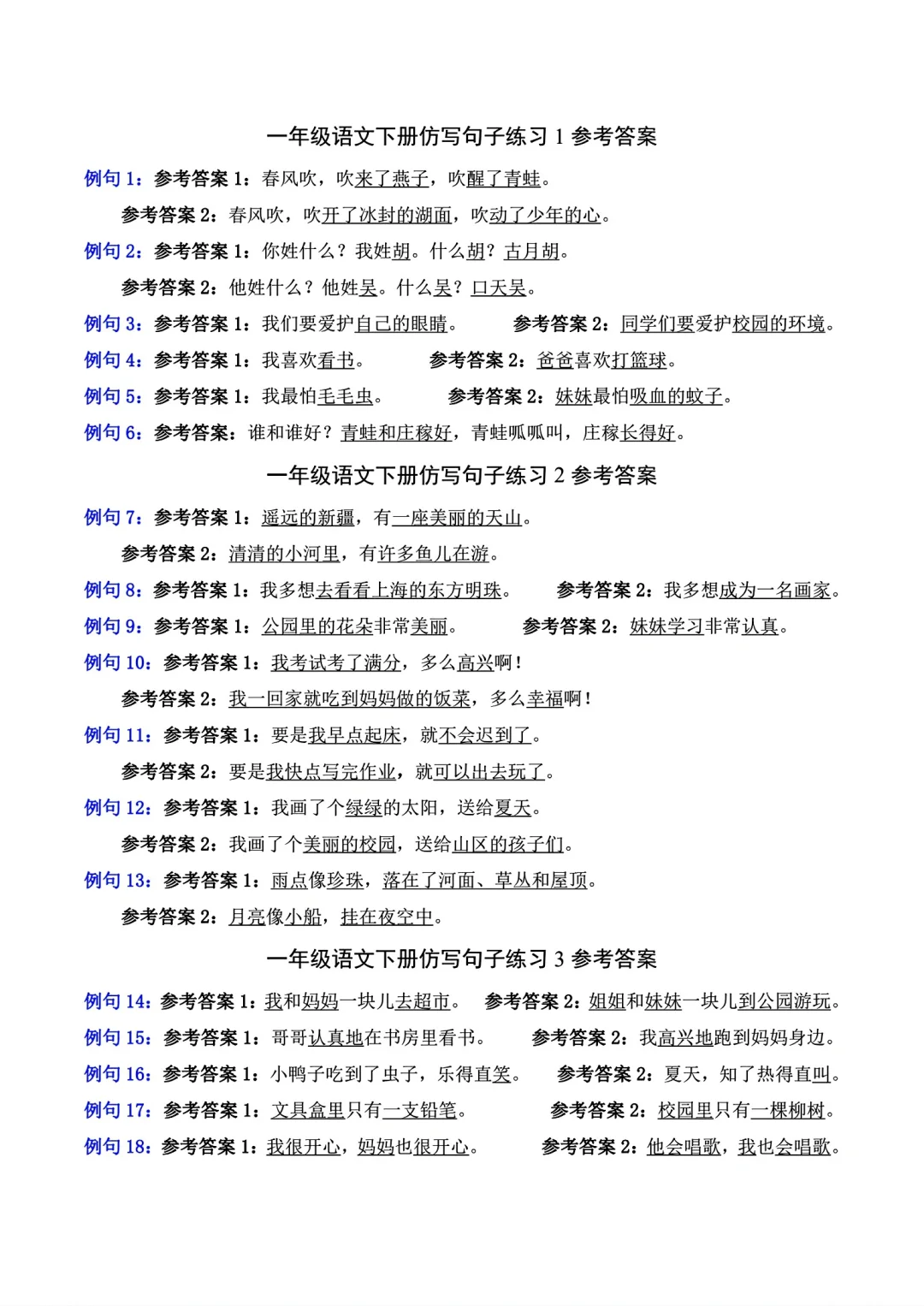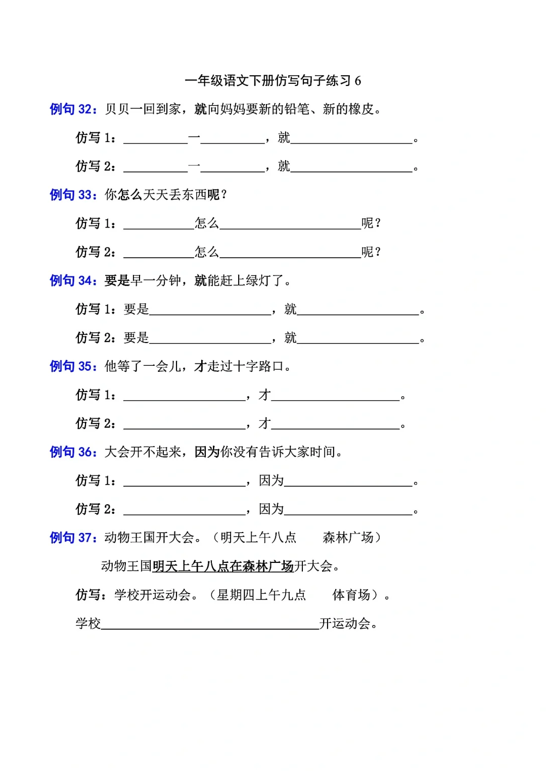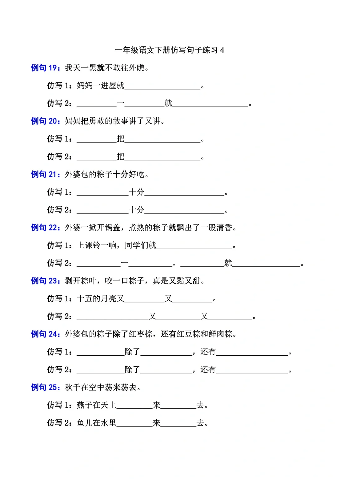一年级语文下册照样子写句子(仿写句子)