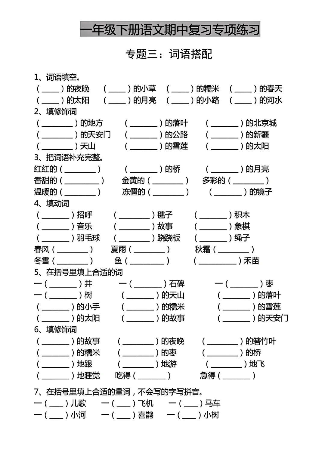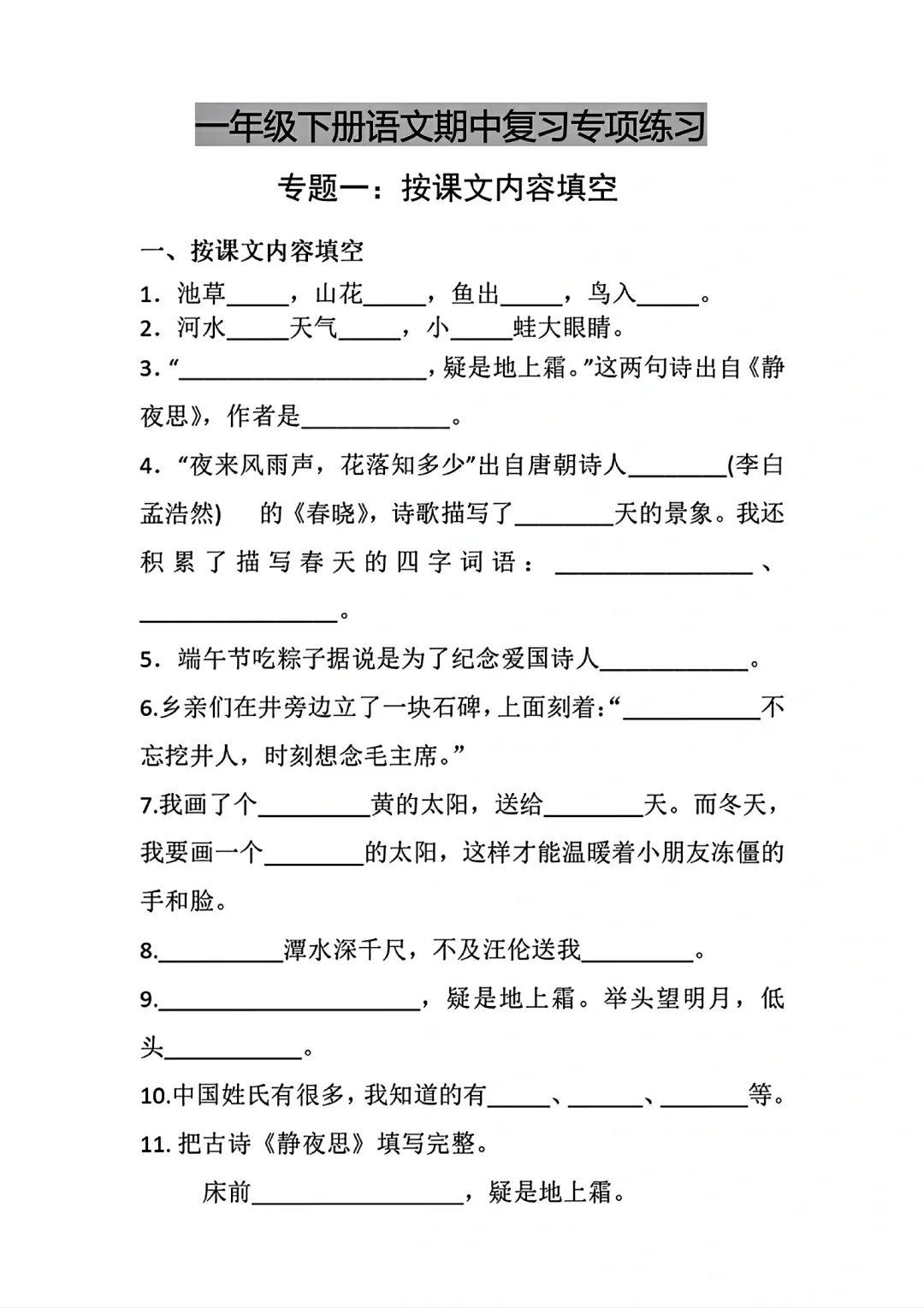 一年级下册语文期中名校真题卷专项练习