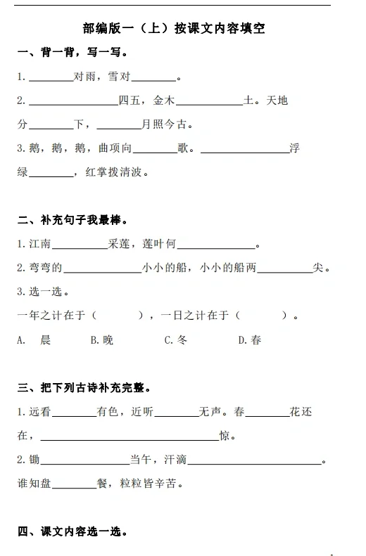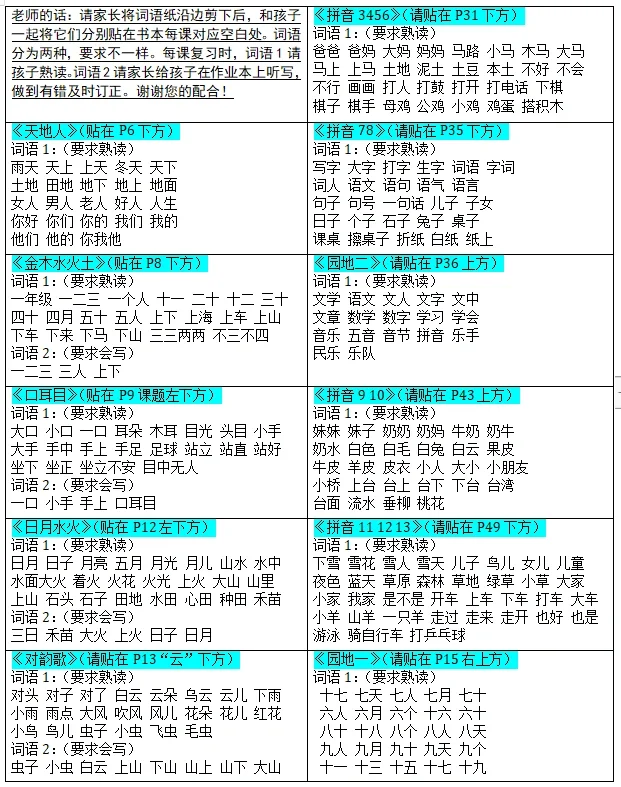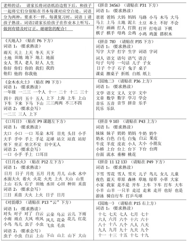 一年级上册语文预习包