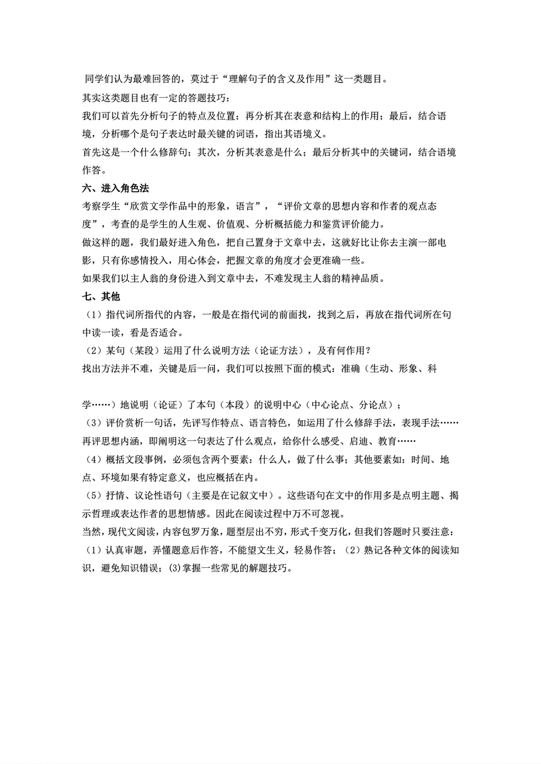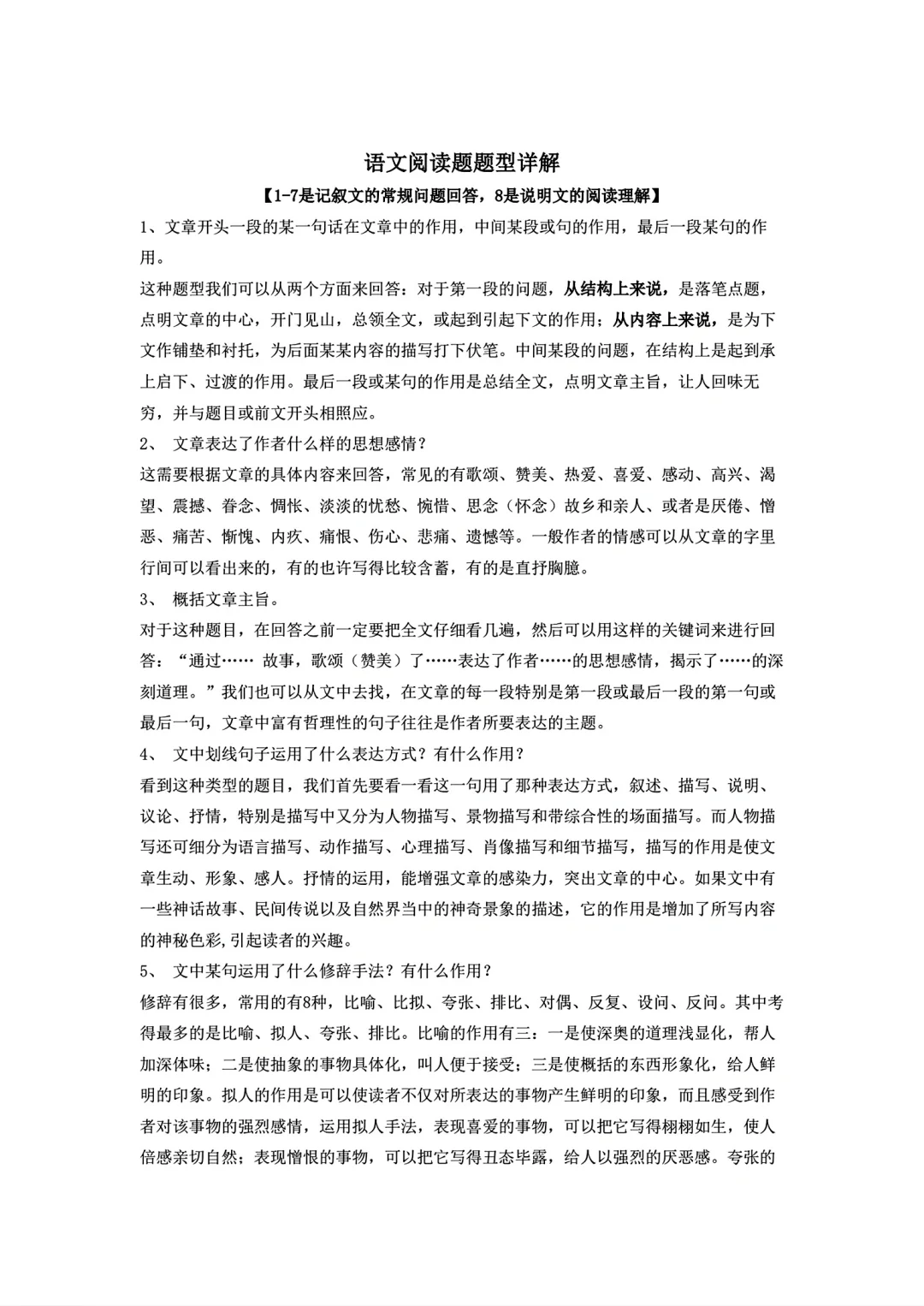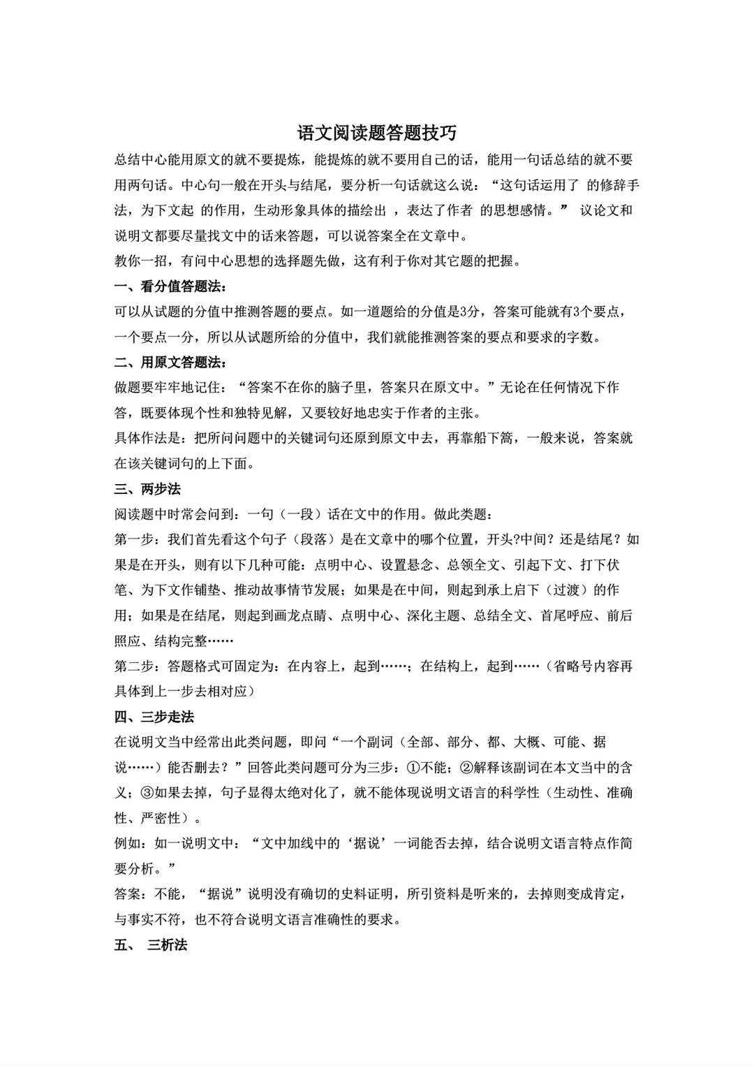 语文阅读理解答题公式技巧
