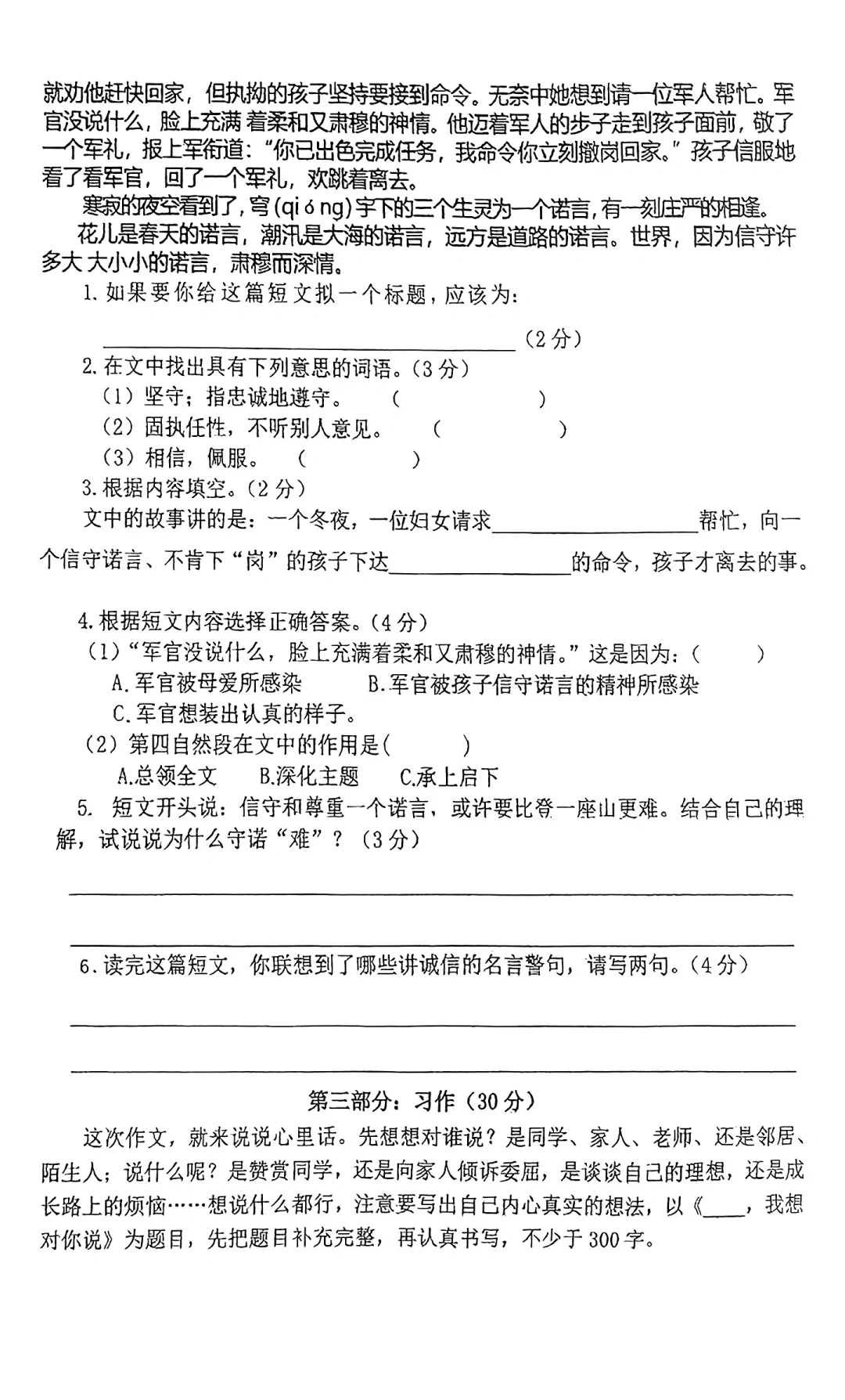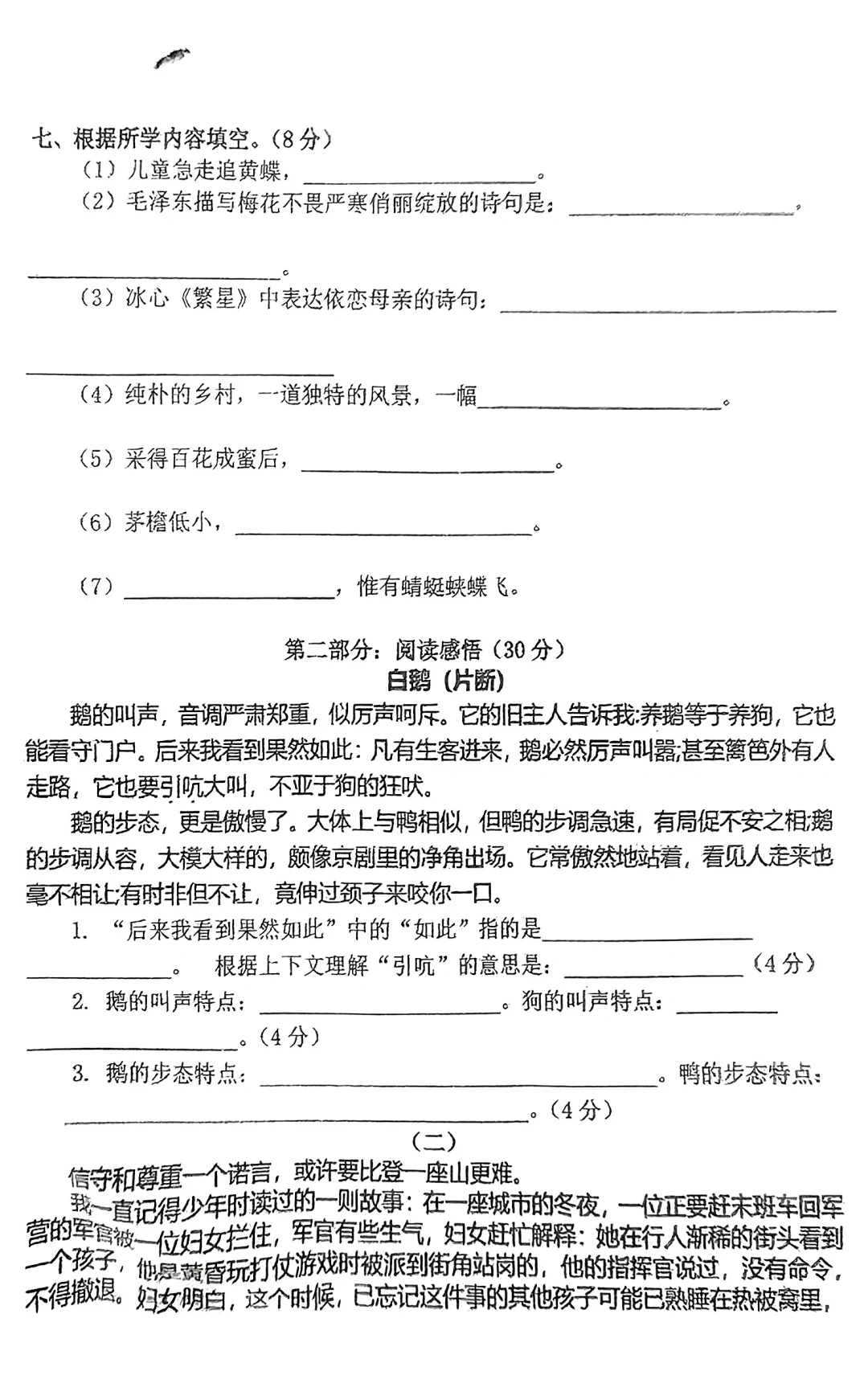 四年级下语文阶段性质量监测