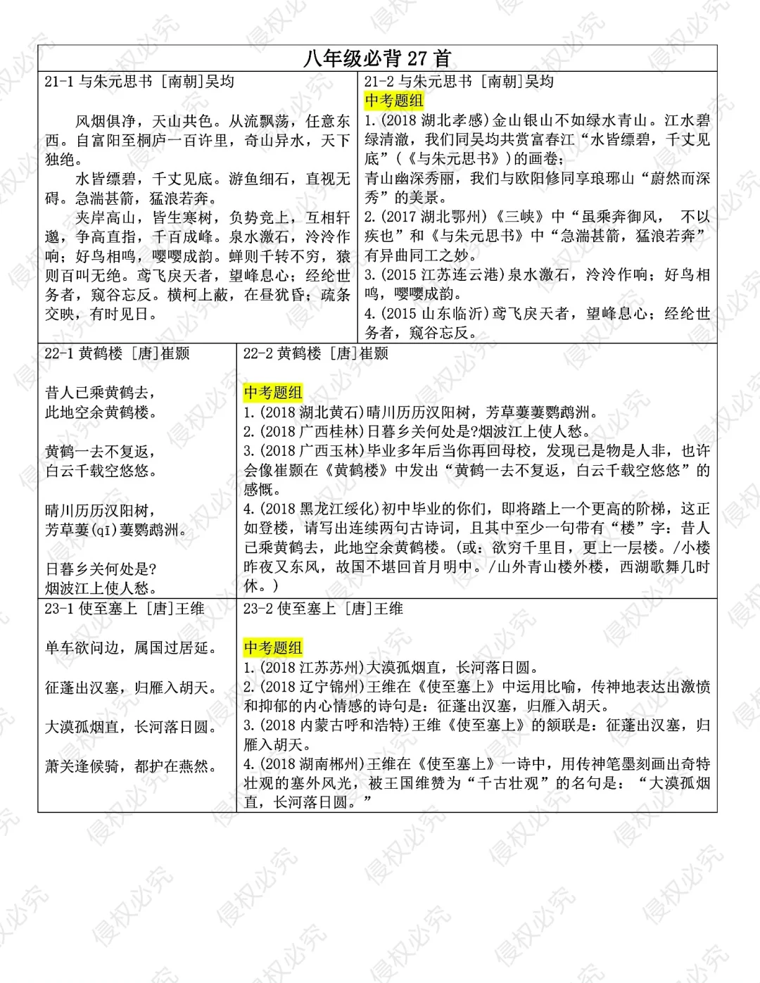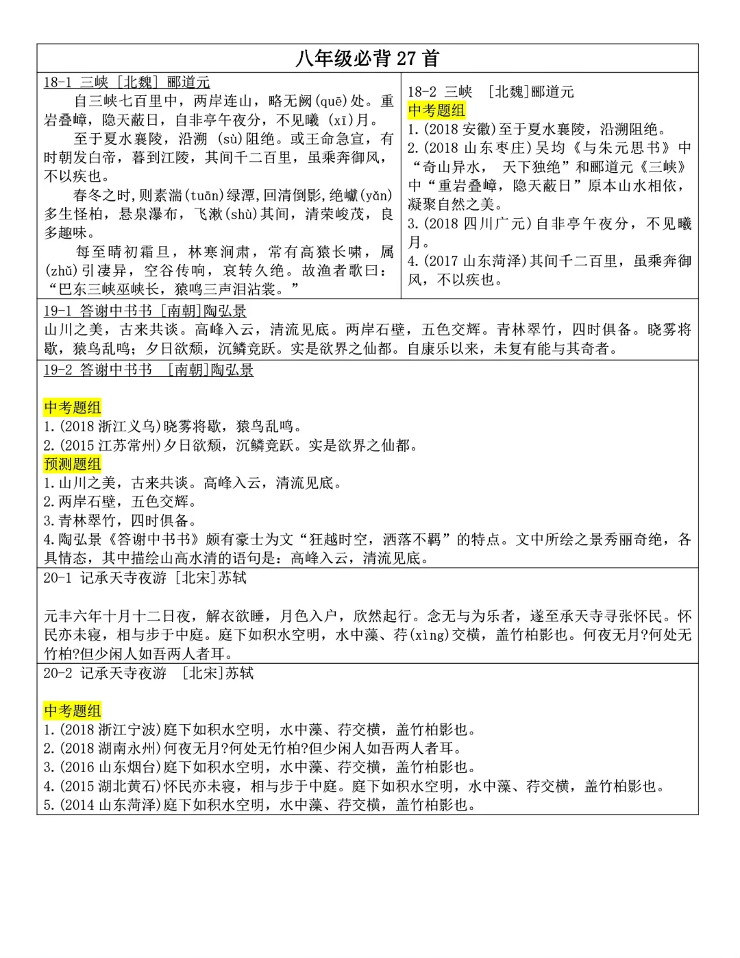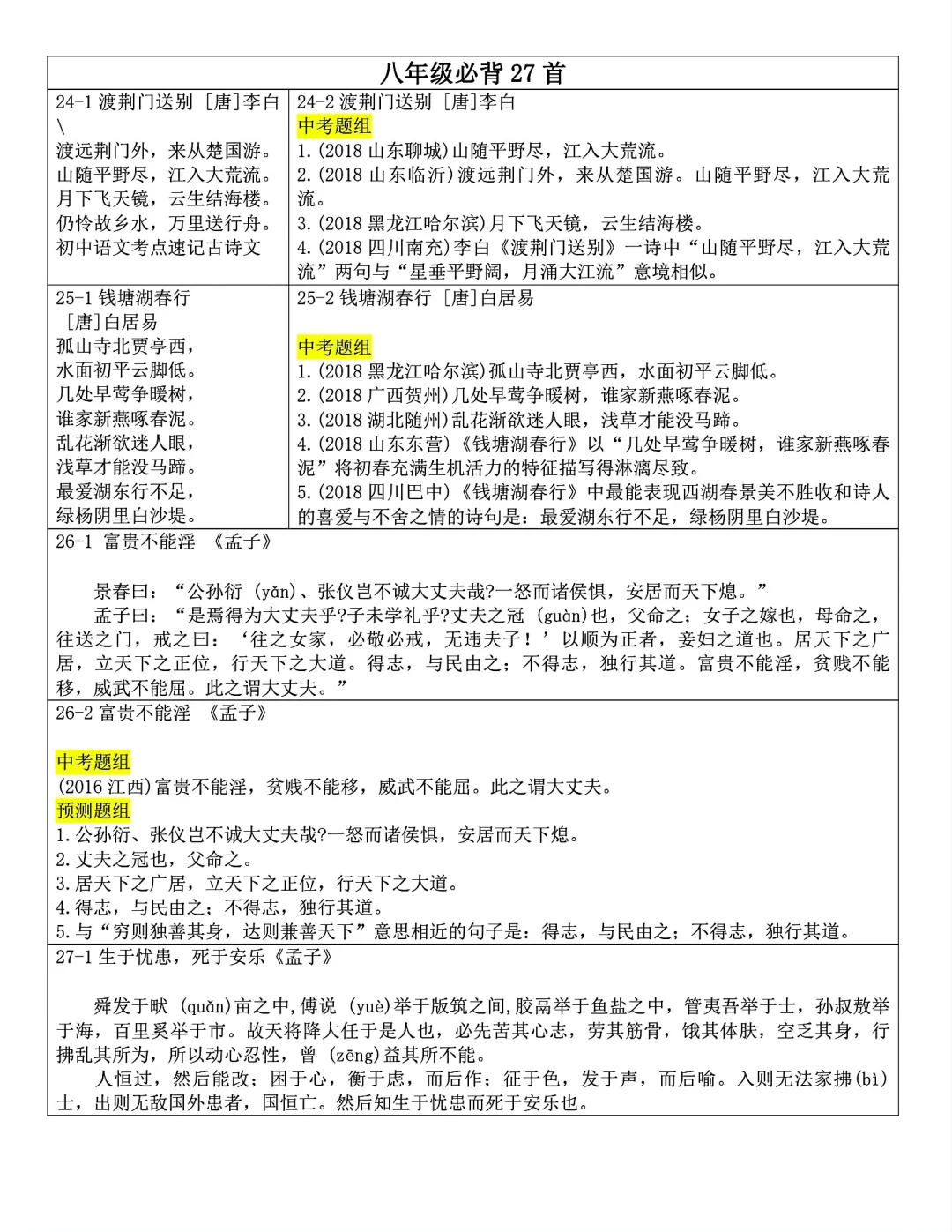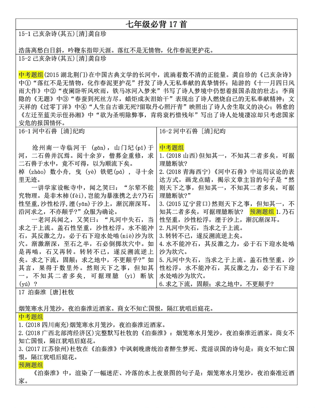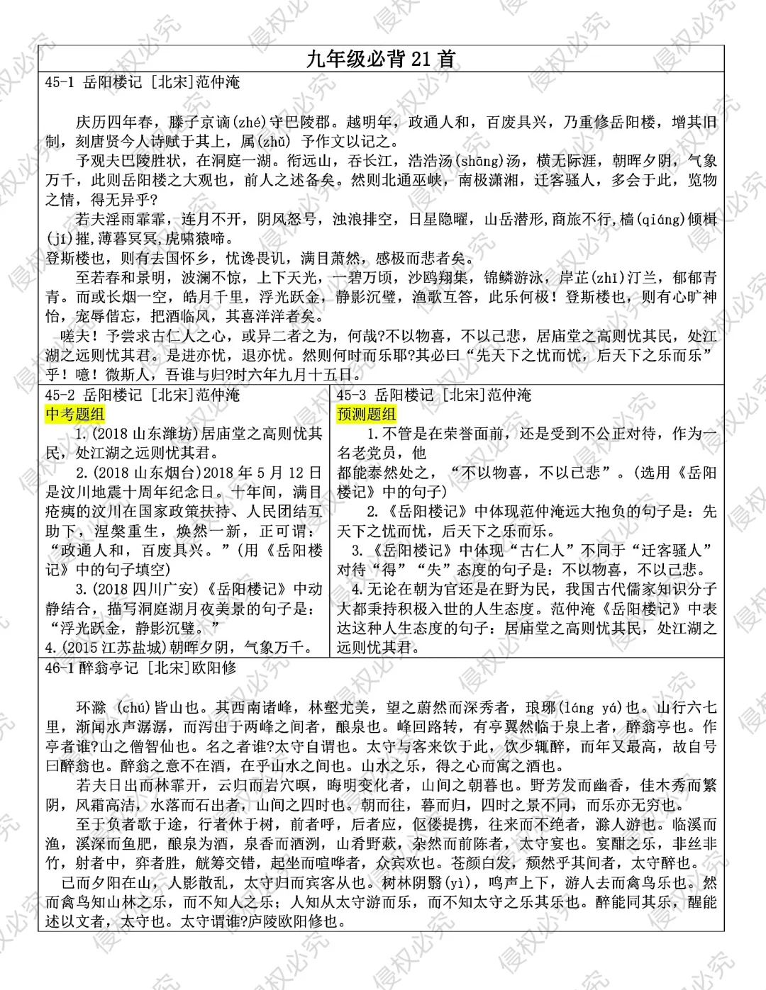 发。Word版,共25页。七到九年级全部古诗文言文内容
