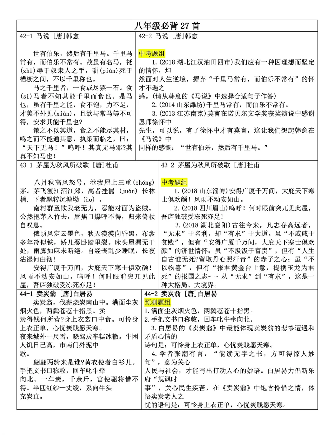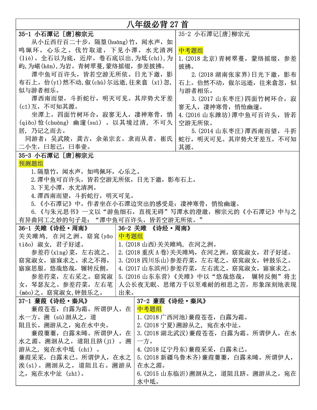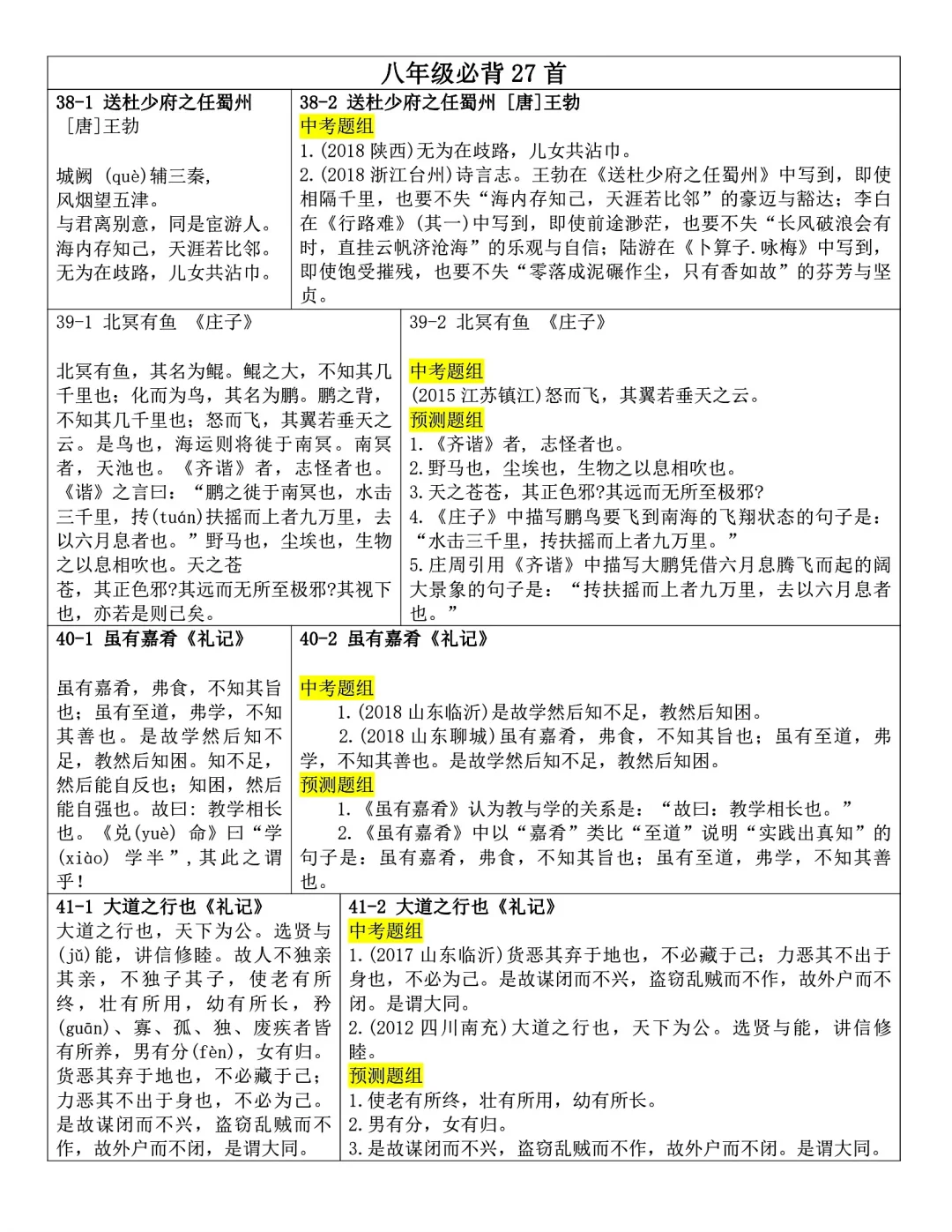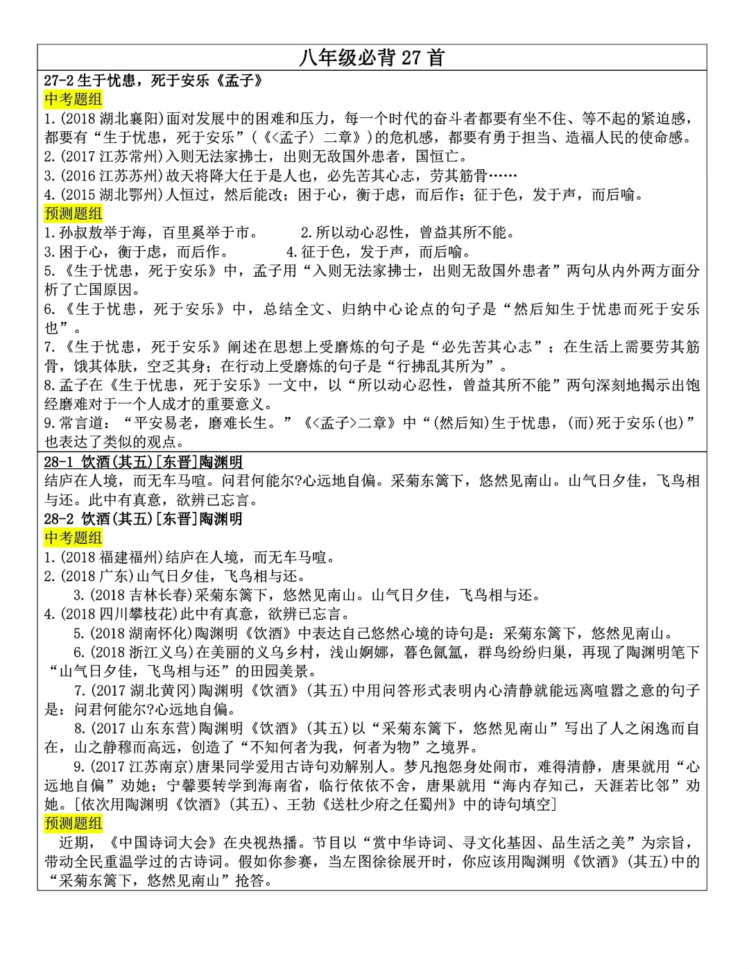 发。Word版,共25页。七到九年级全部古诗文言文内容
