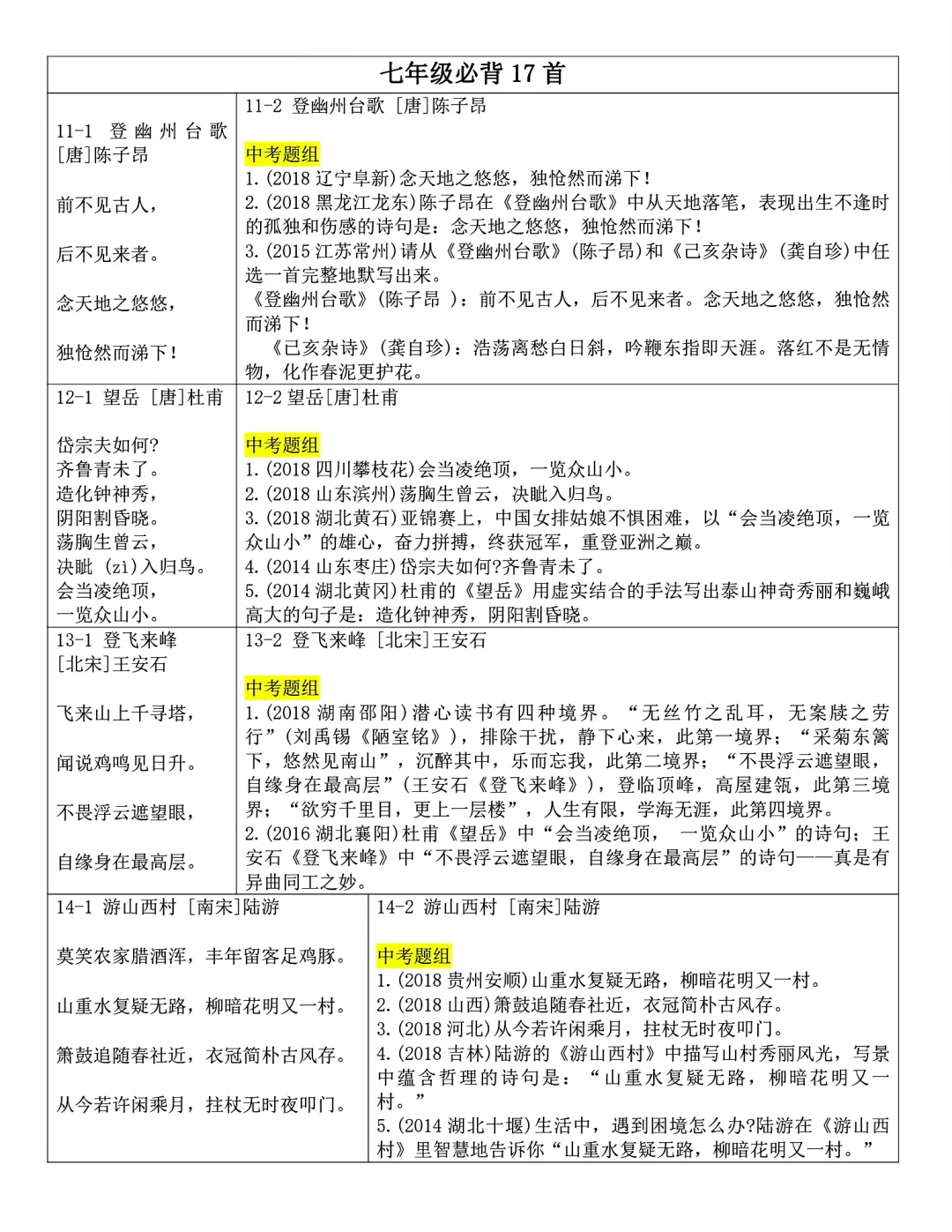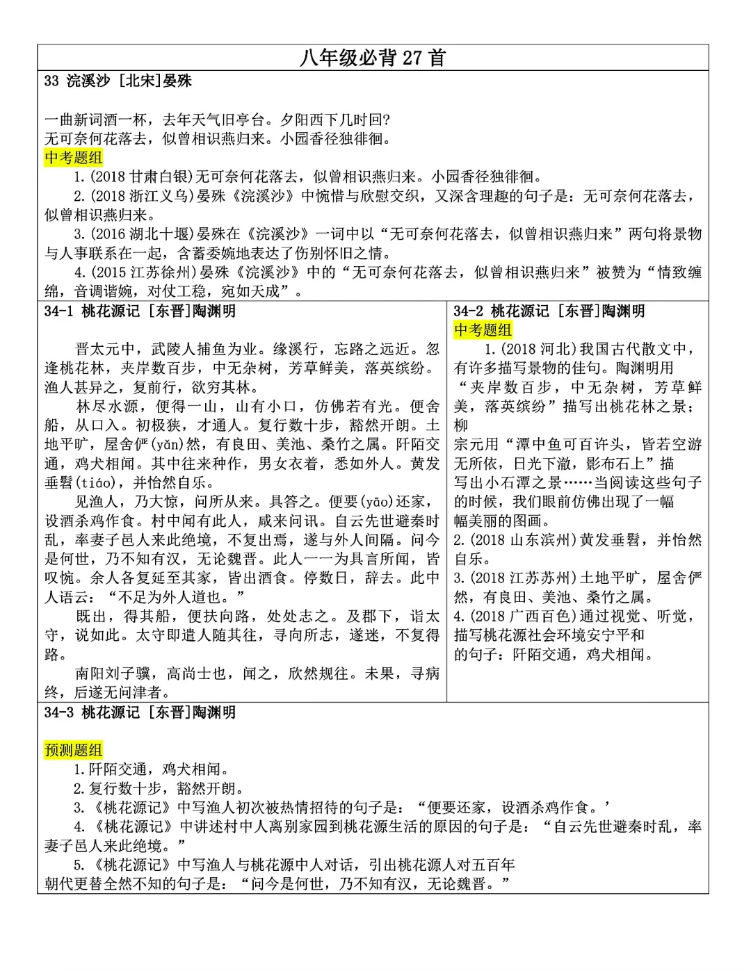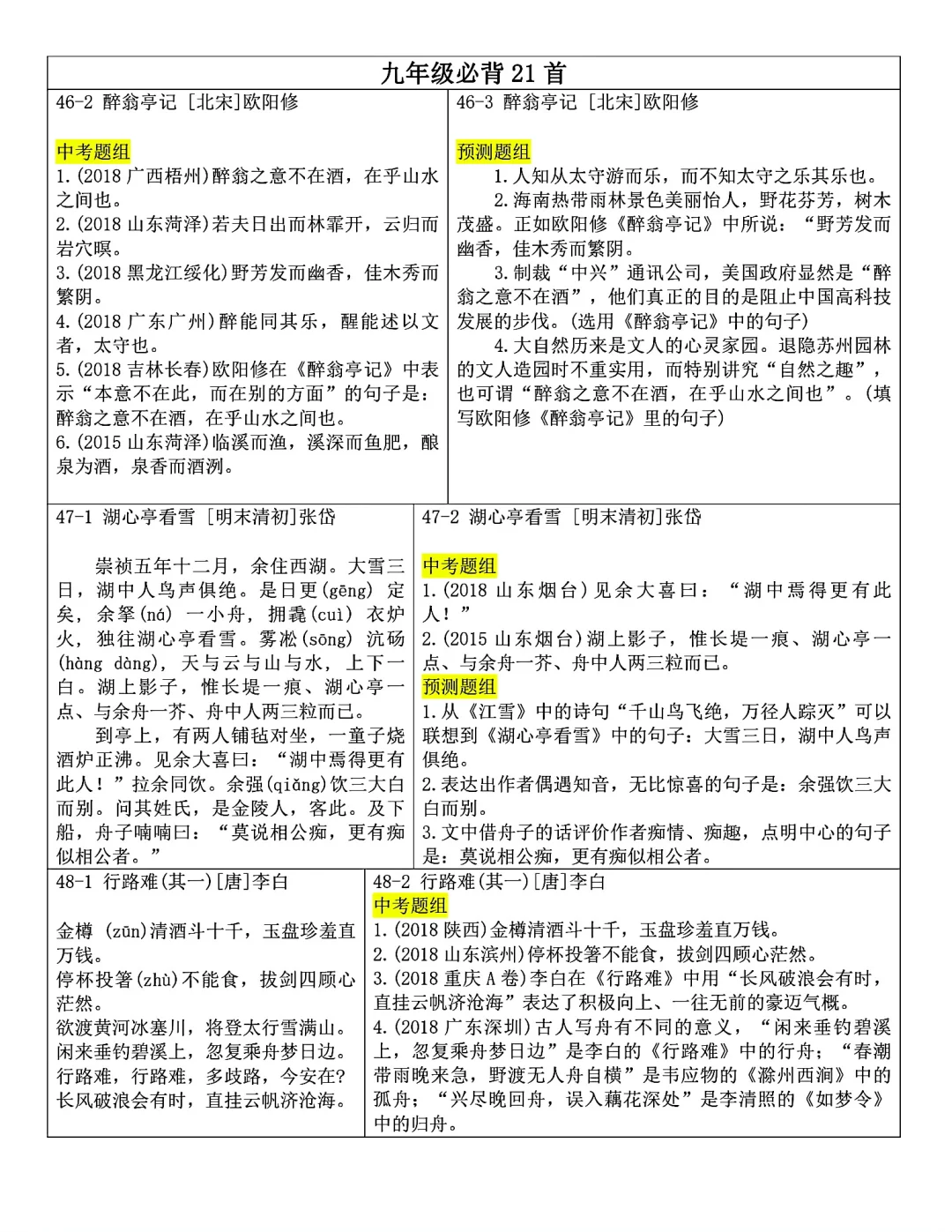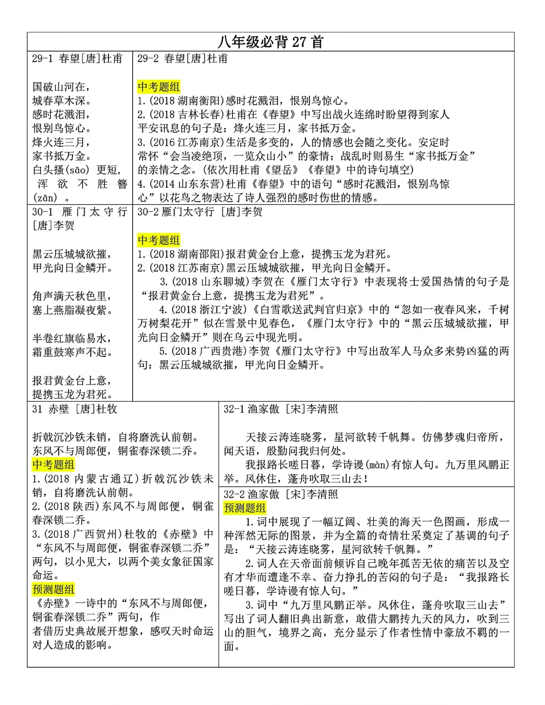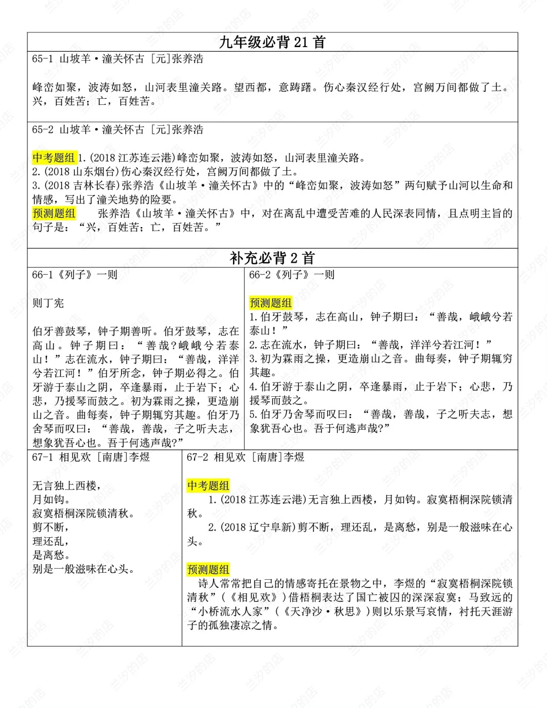 发。Word版,共25页。七到九年级全部古诗文言文内容
