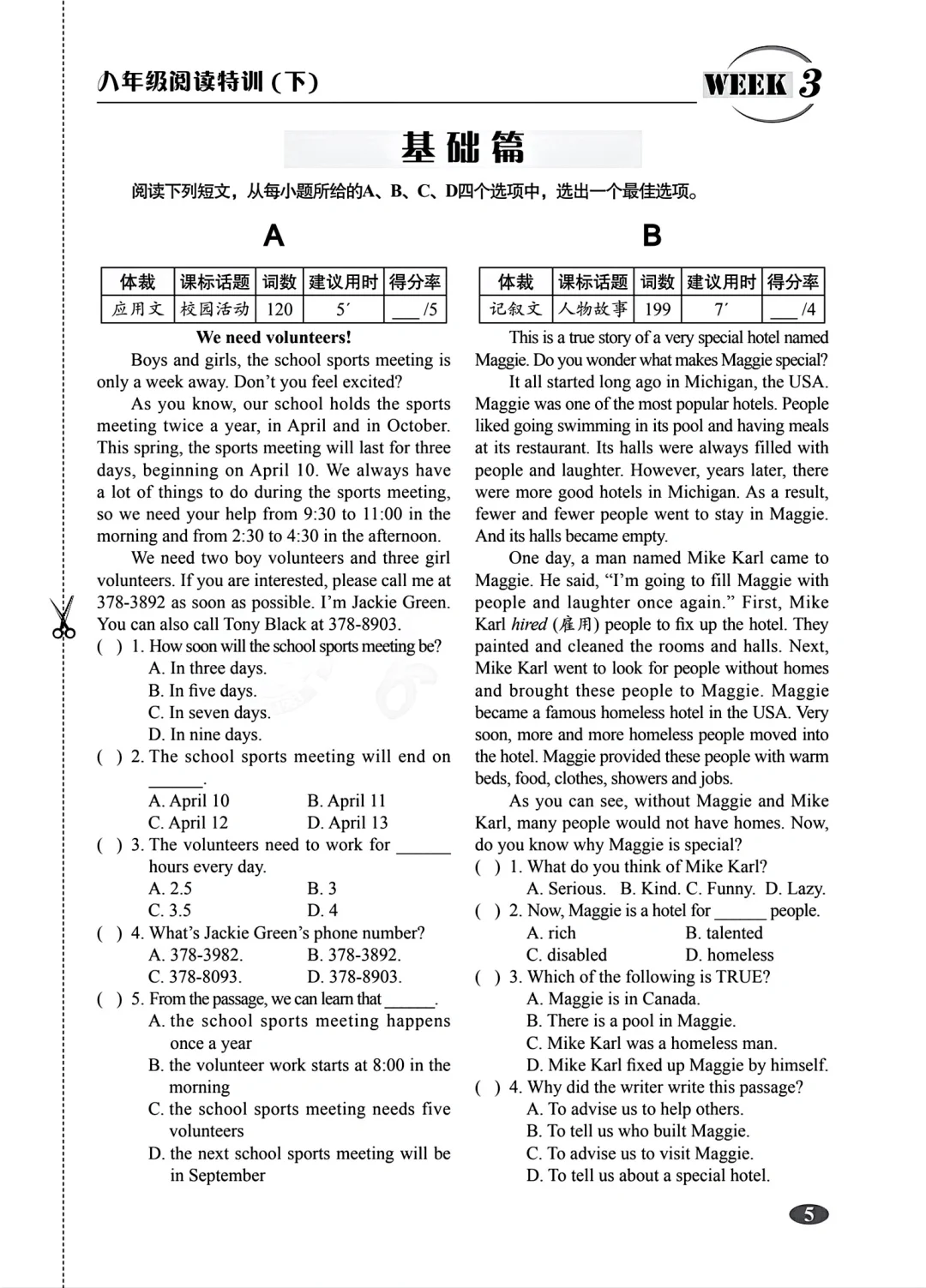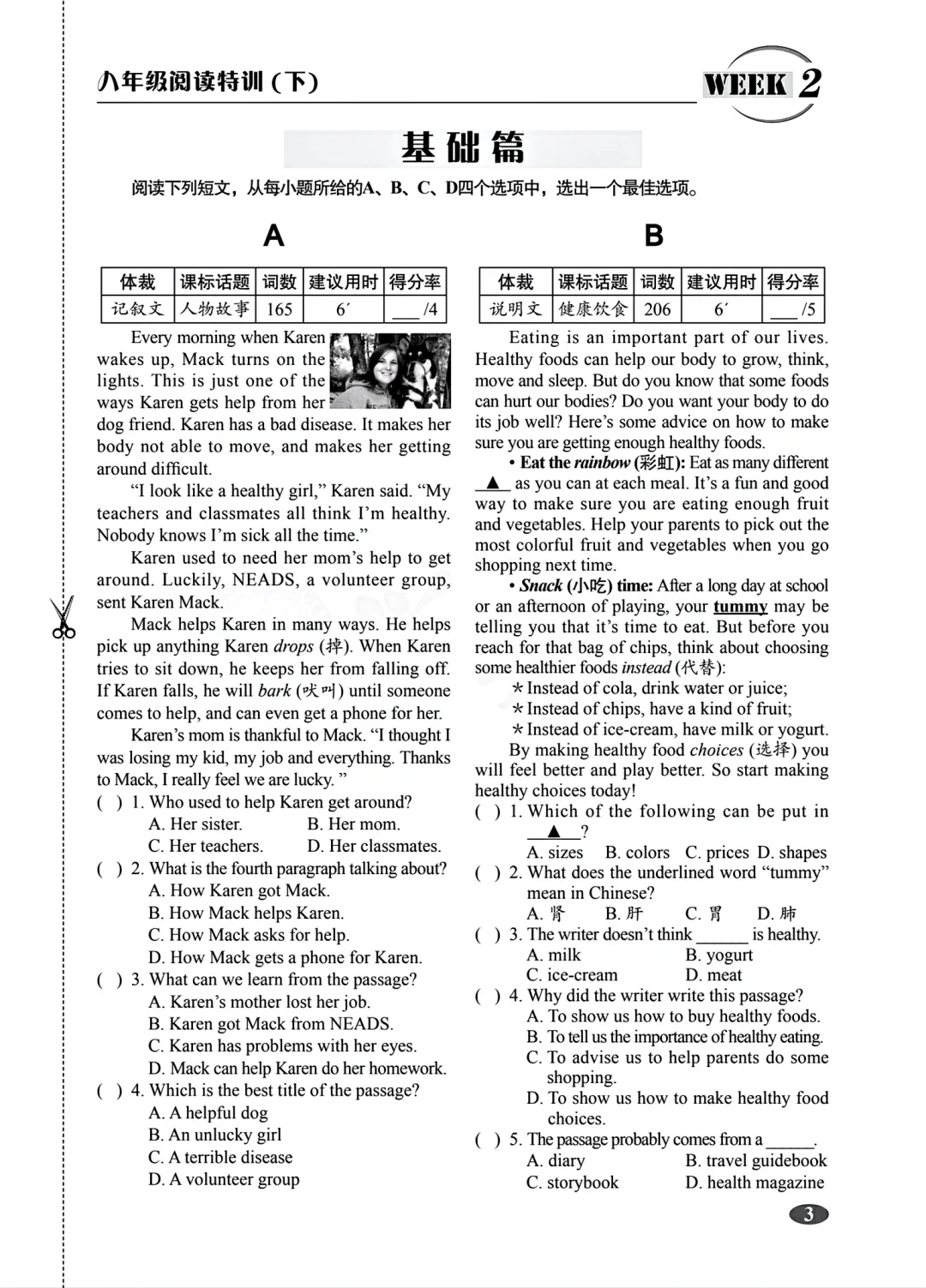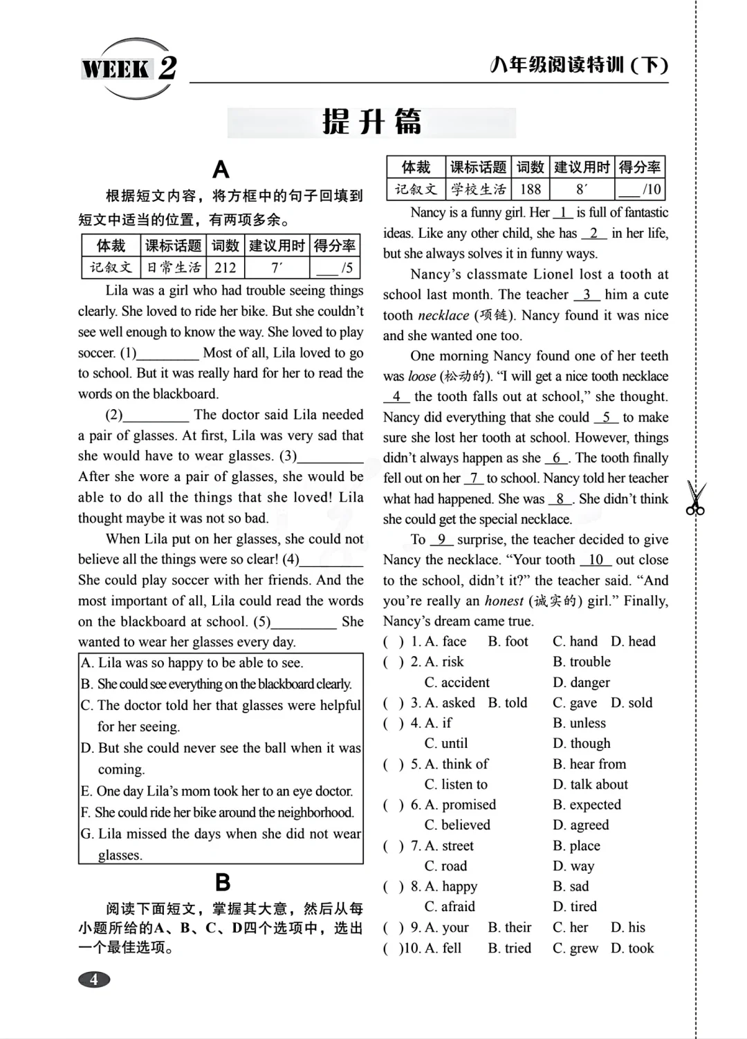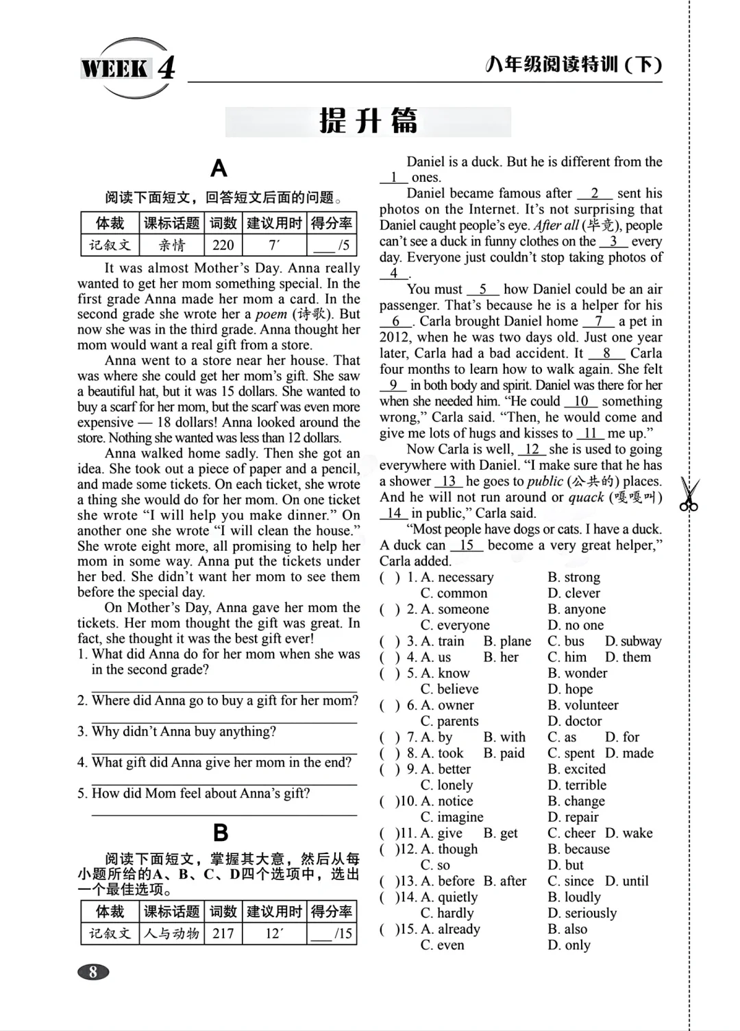 八年级下册英语阅读特训