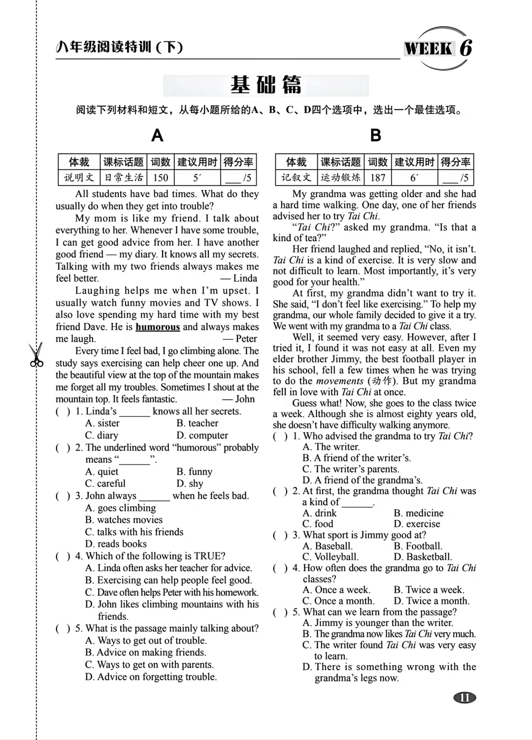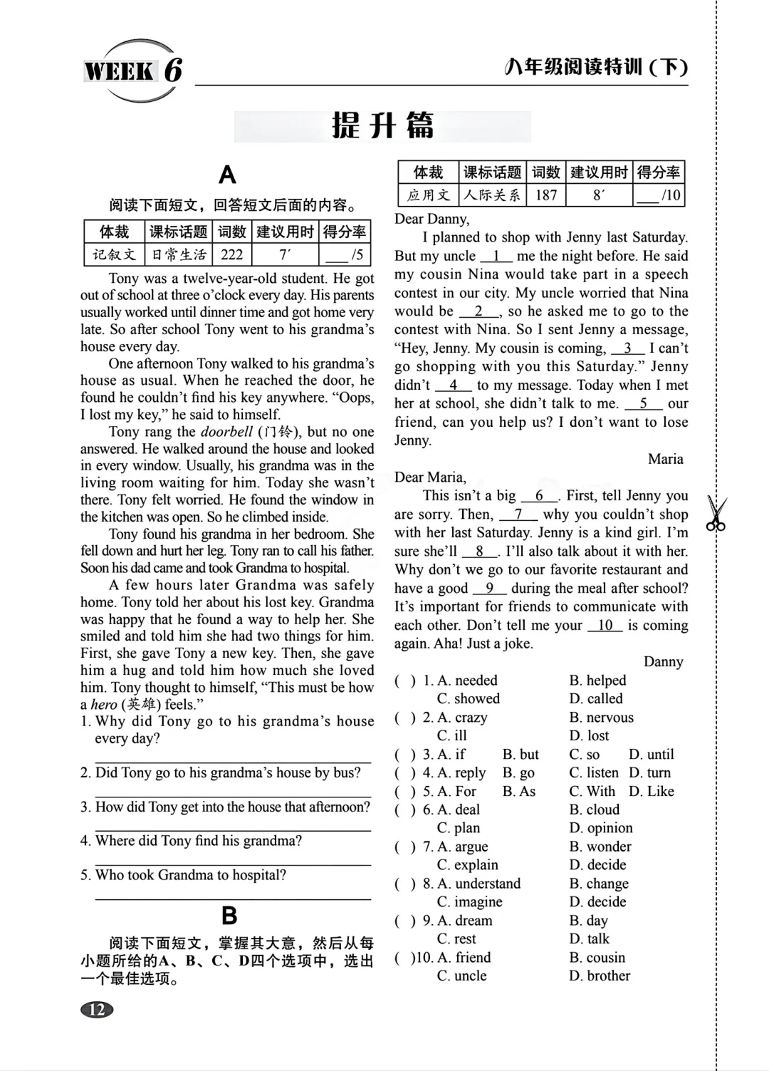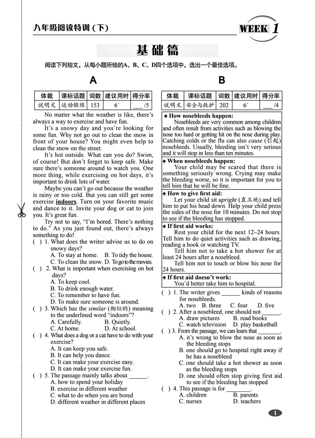 八年级下册英语阅读特训