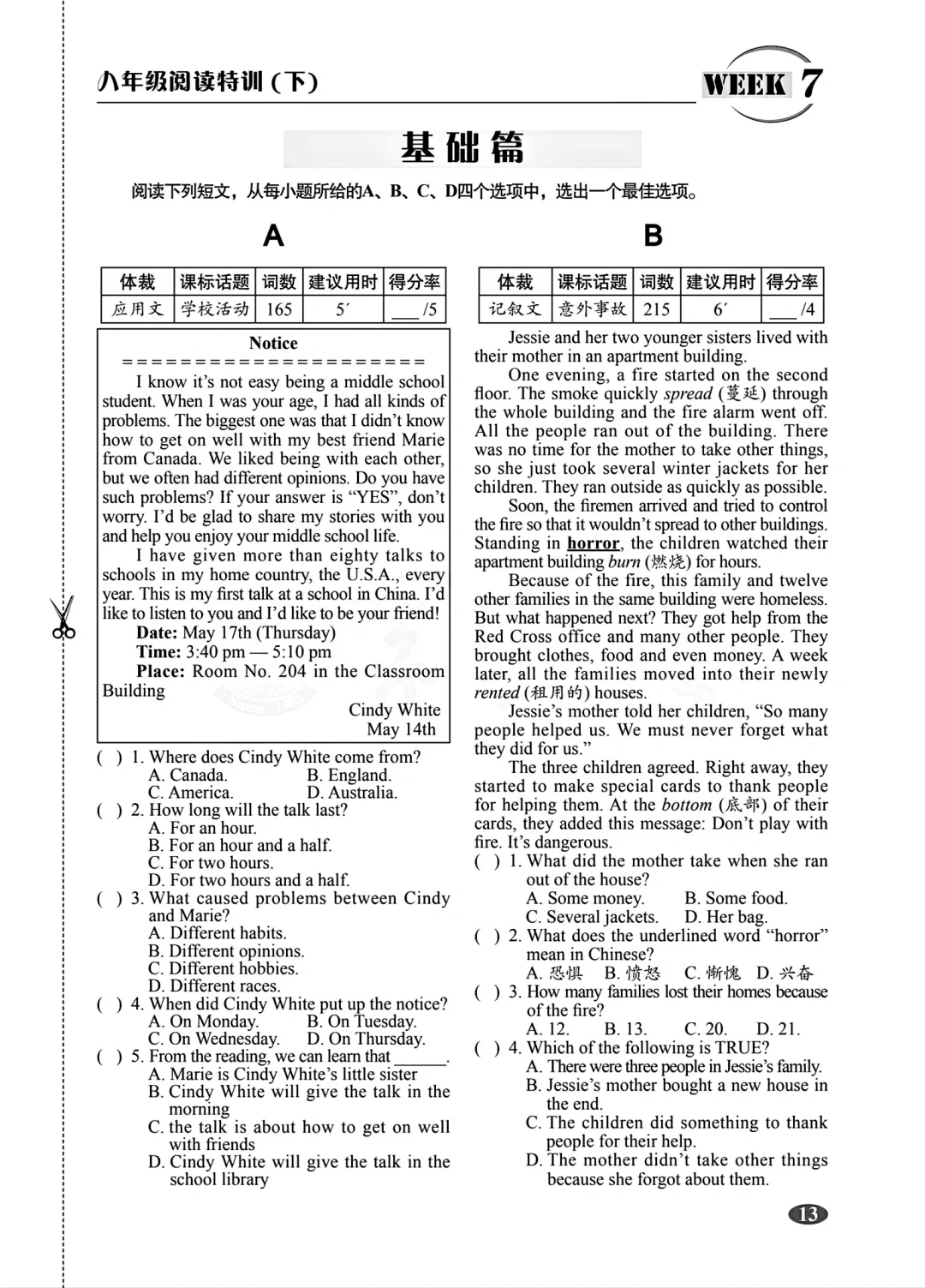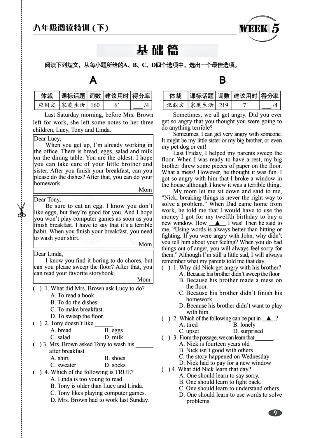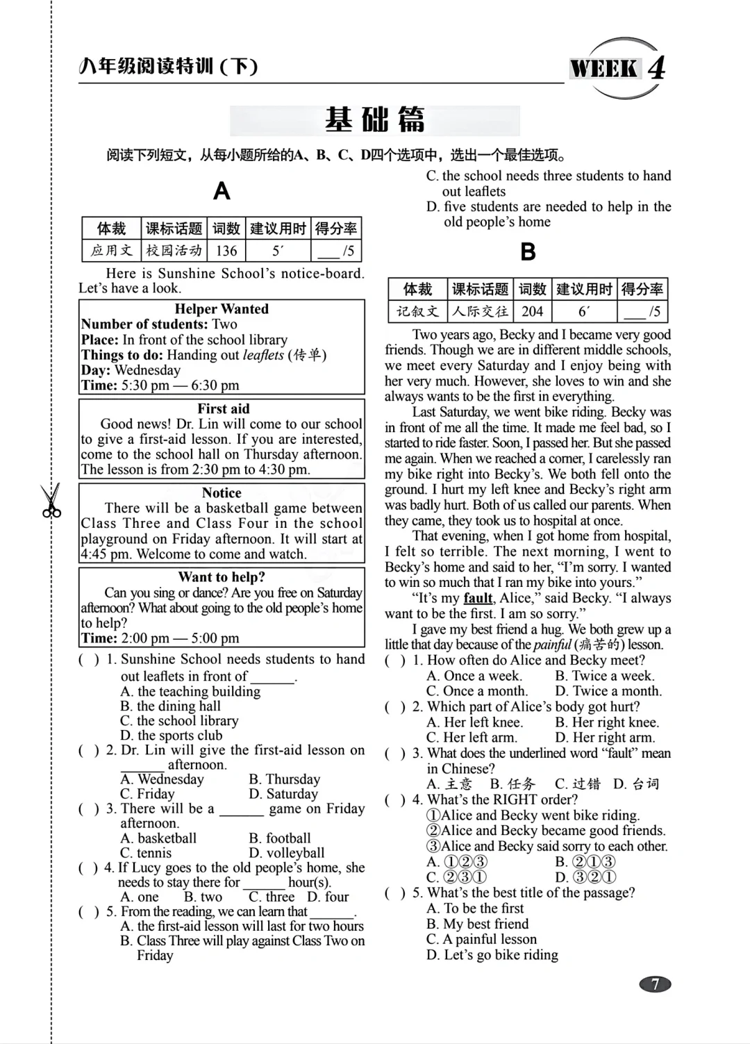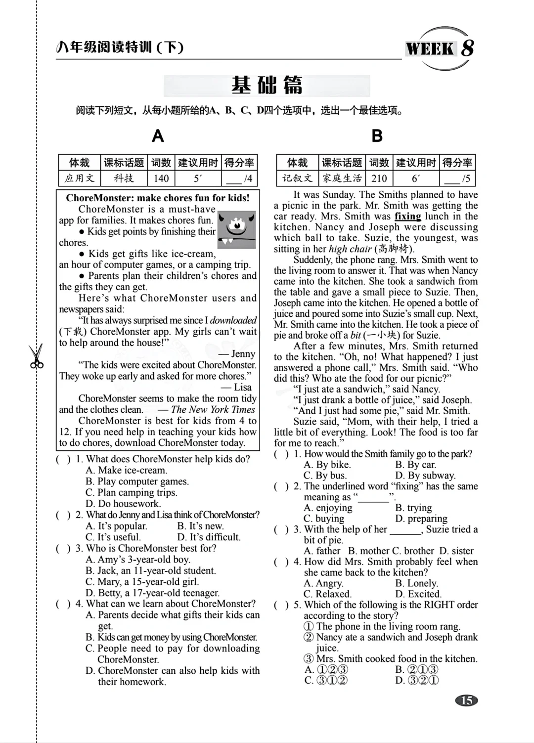 八年级下册英语阅读特训