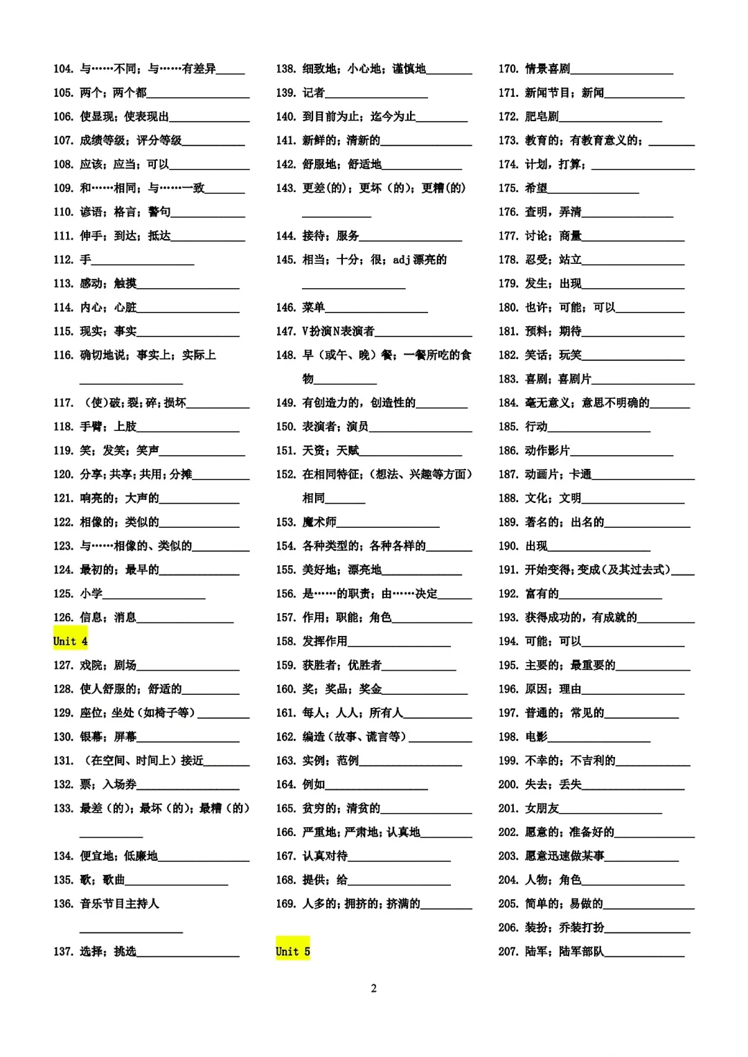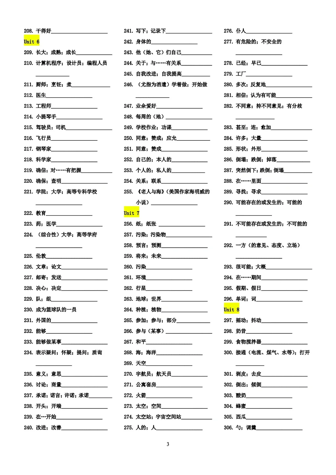 八年级上册英语单词过关检测表