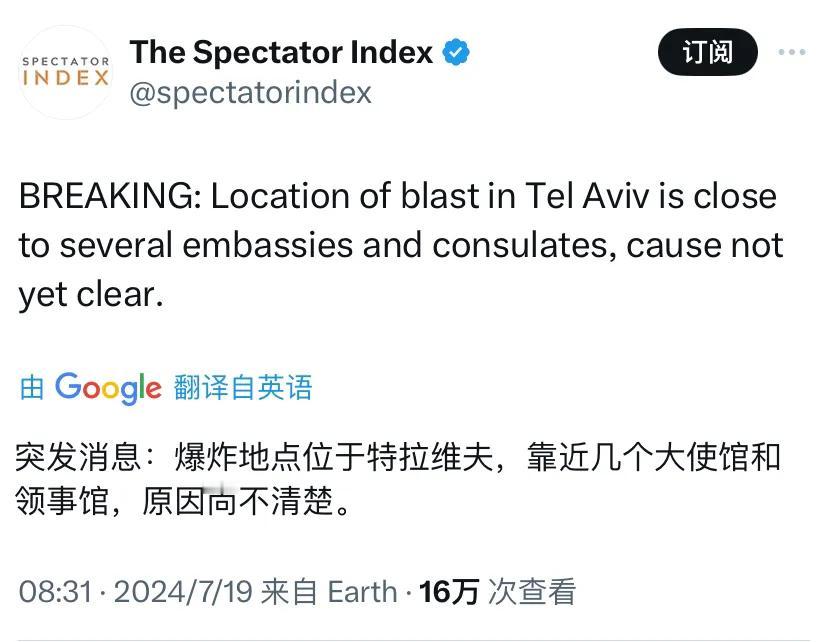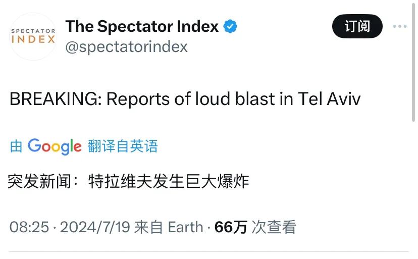 北京时间7月19日8:25:特拉维夫发生巨大爆炸。