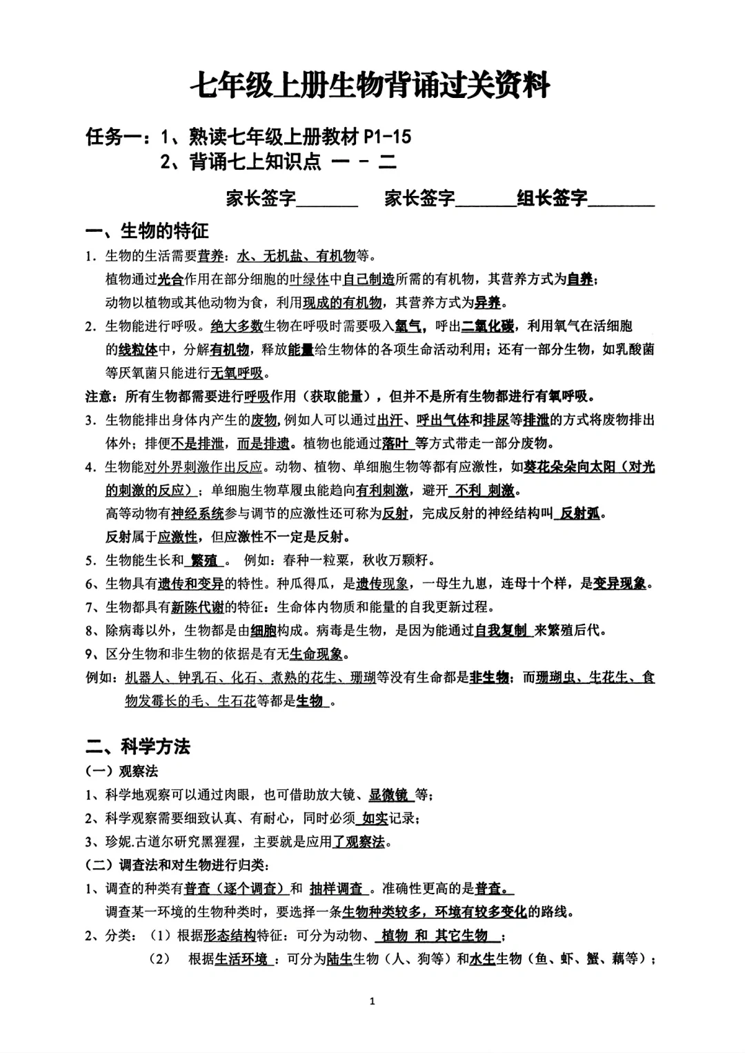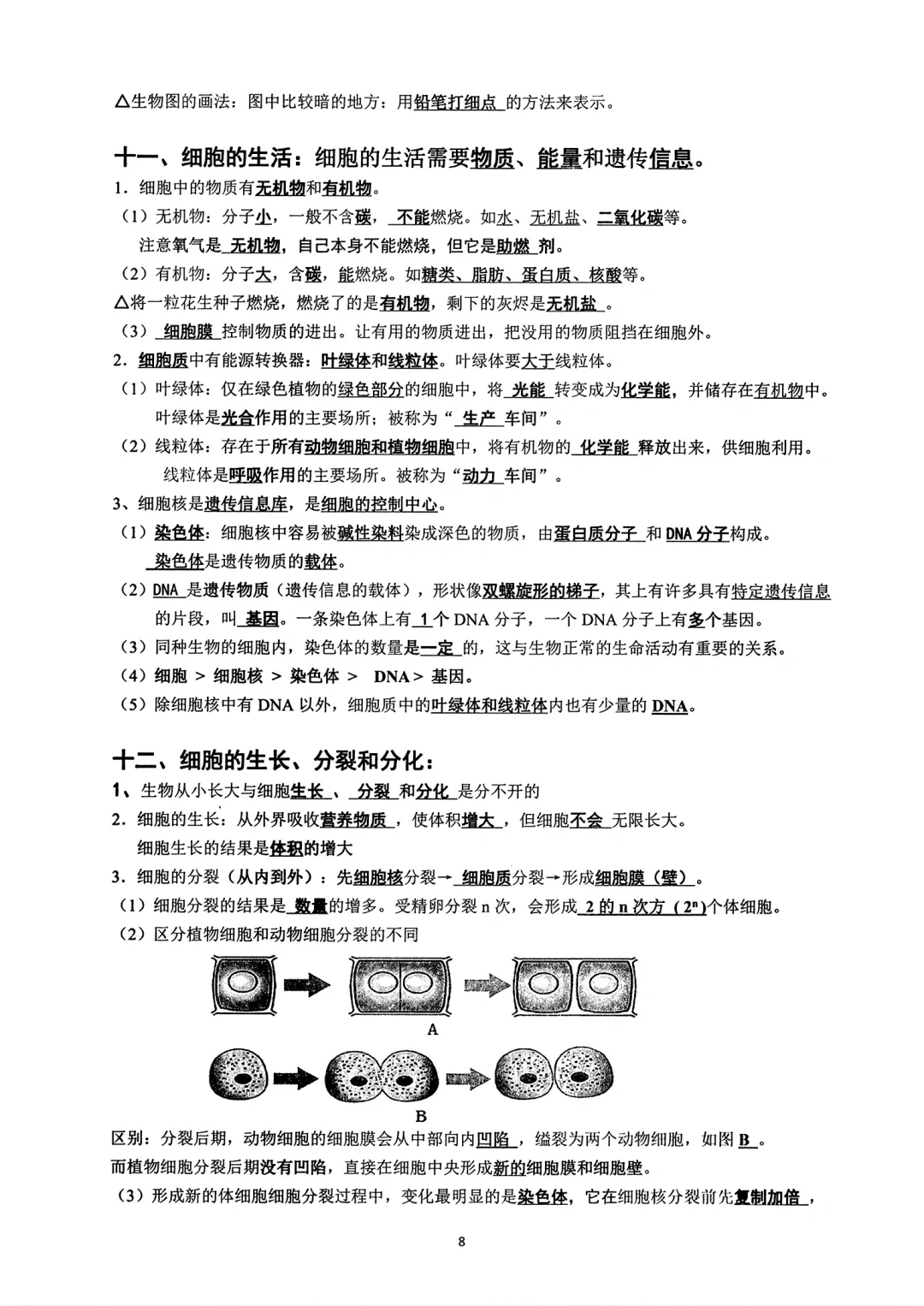 生物总复习背诵资料七八年级全部