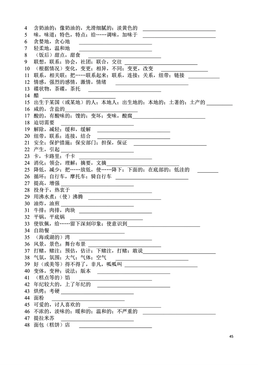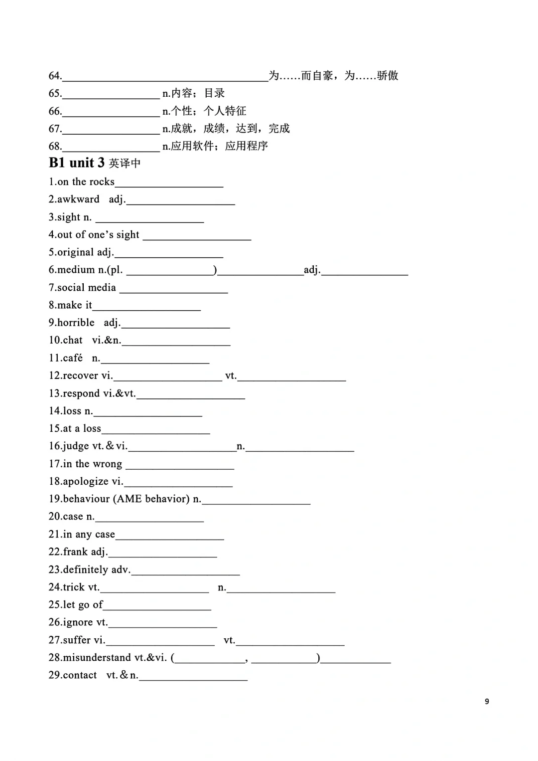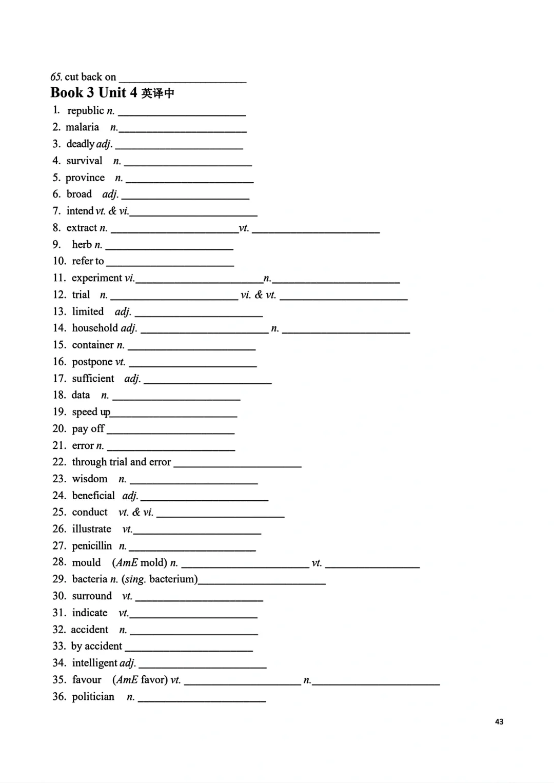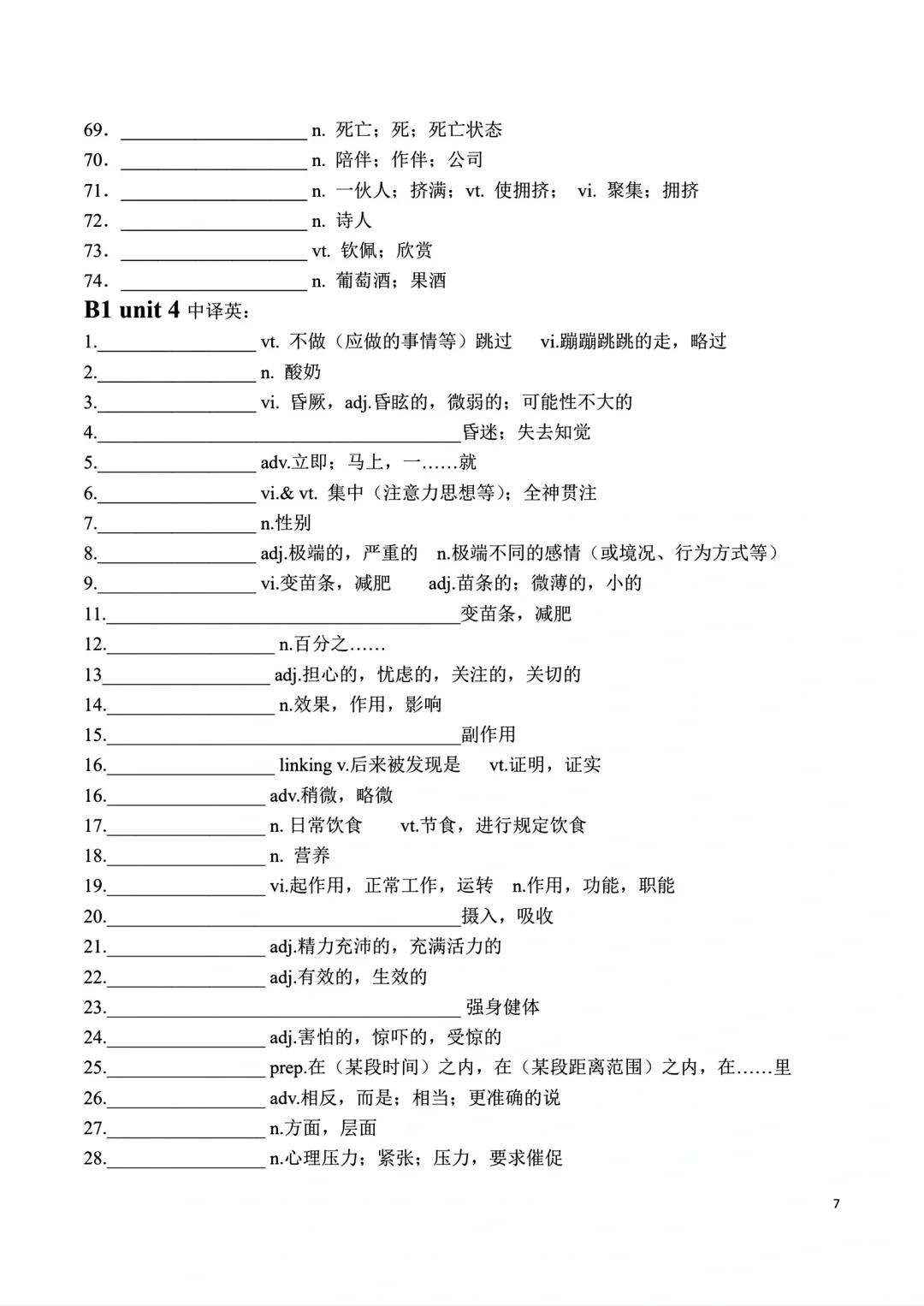 高一上册英语词汇自主默写表