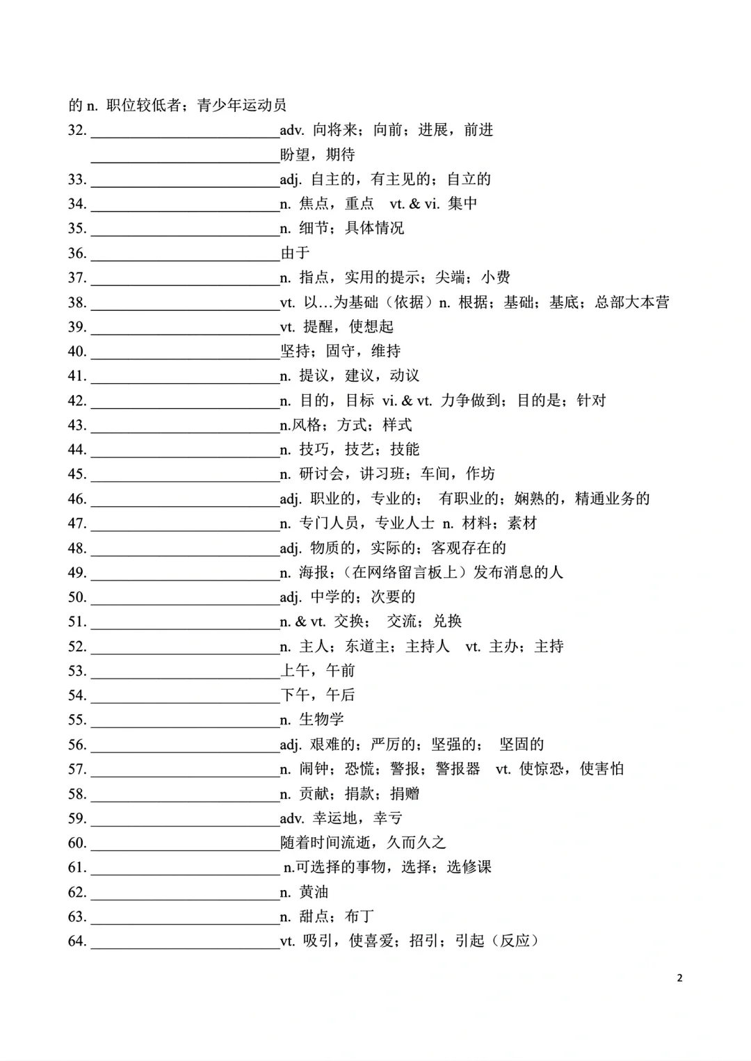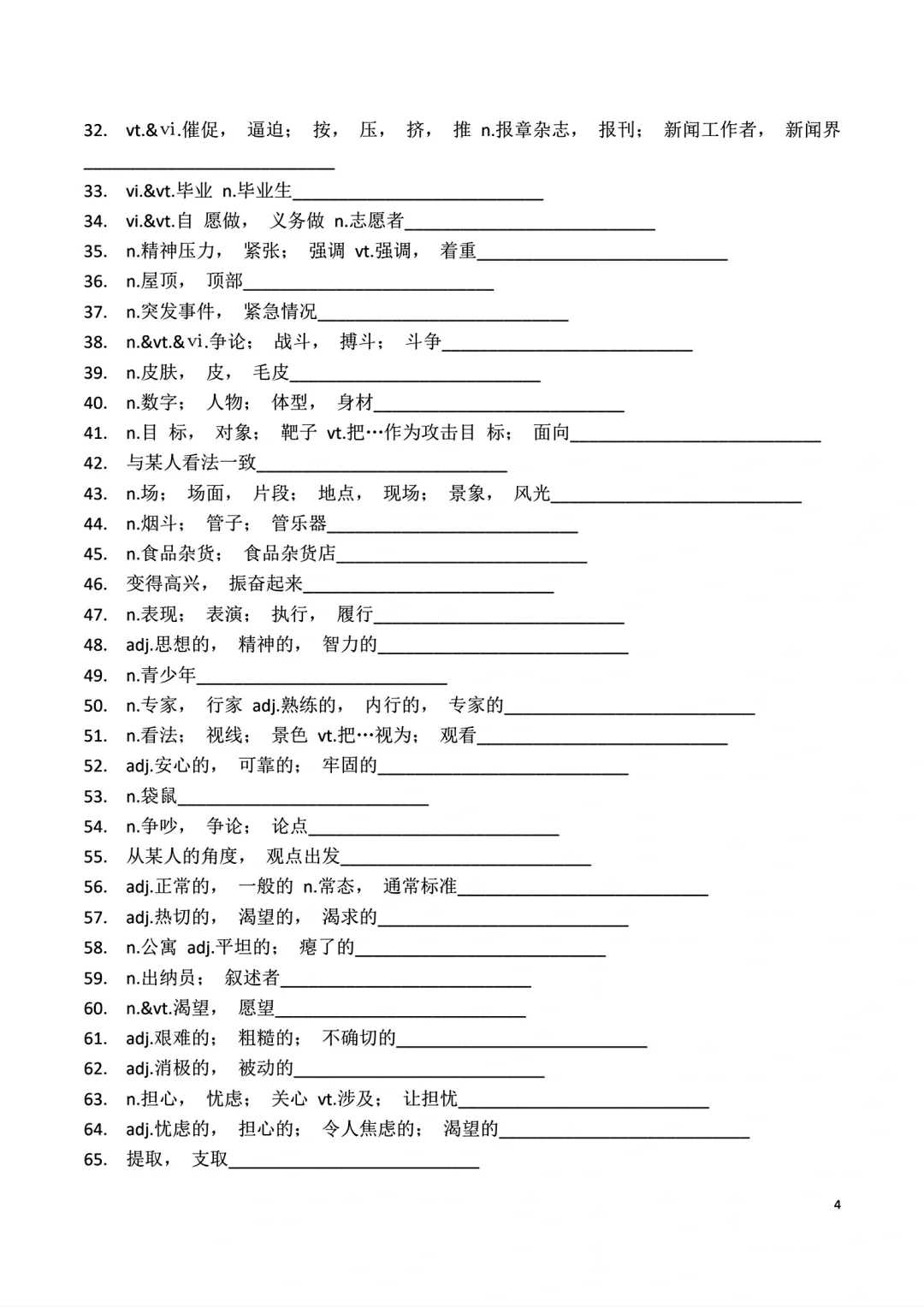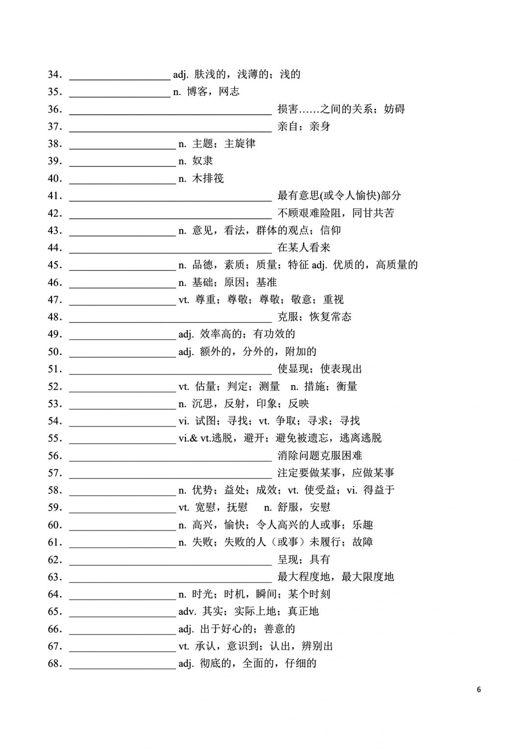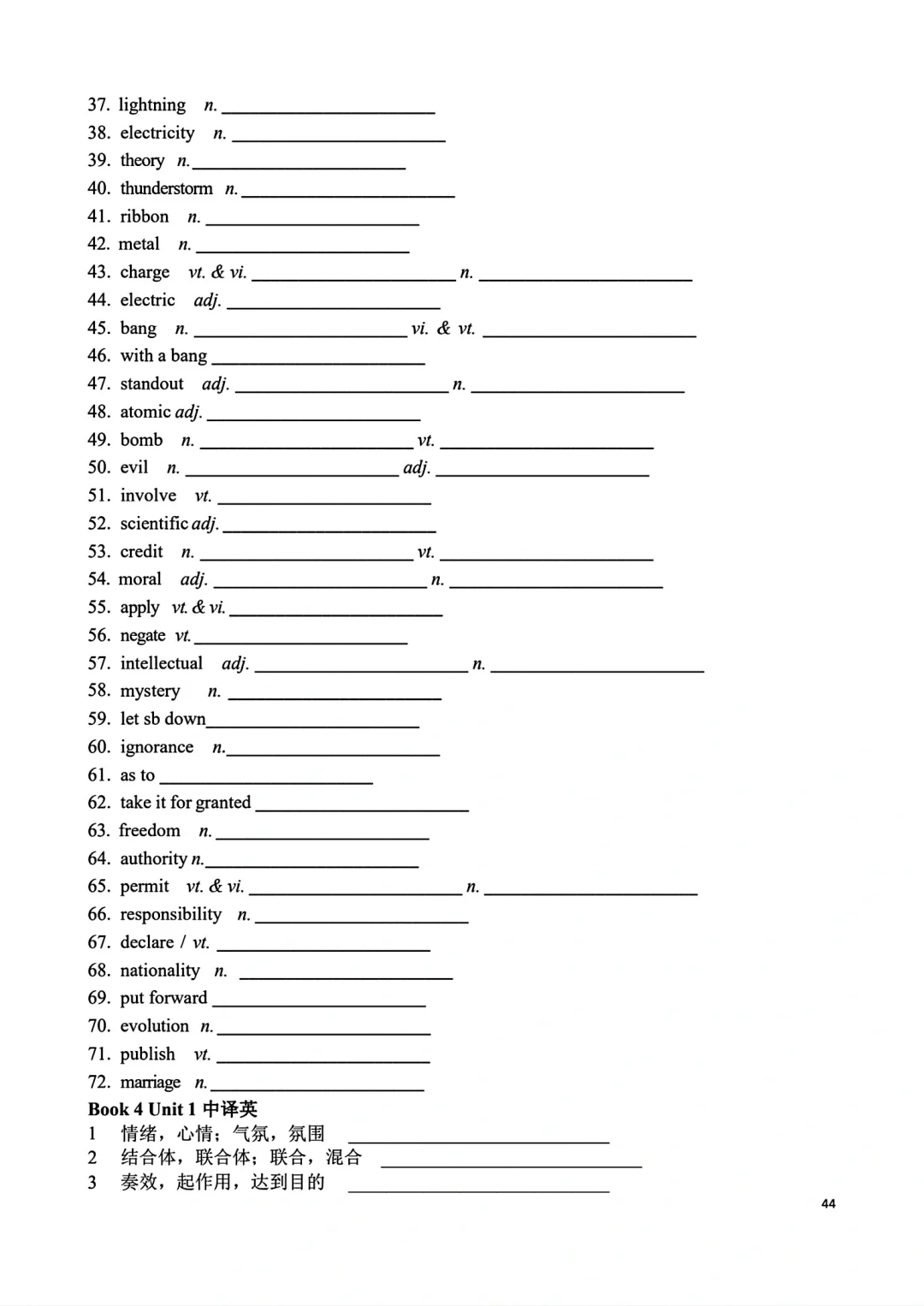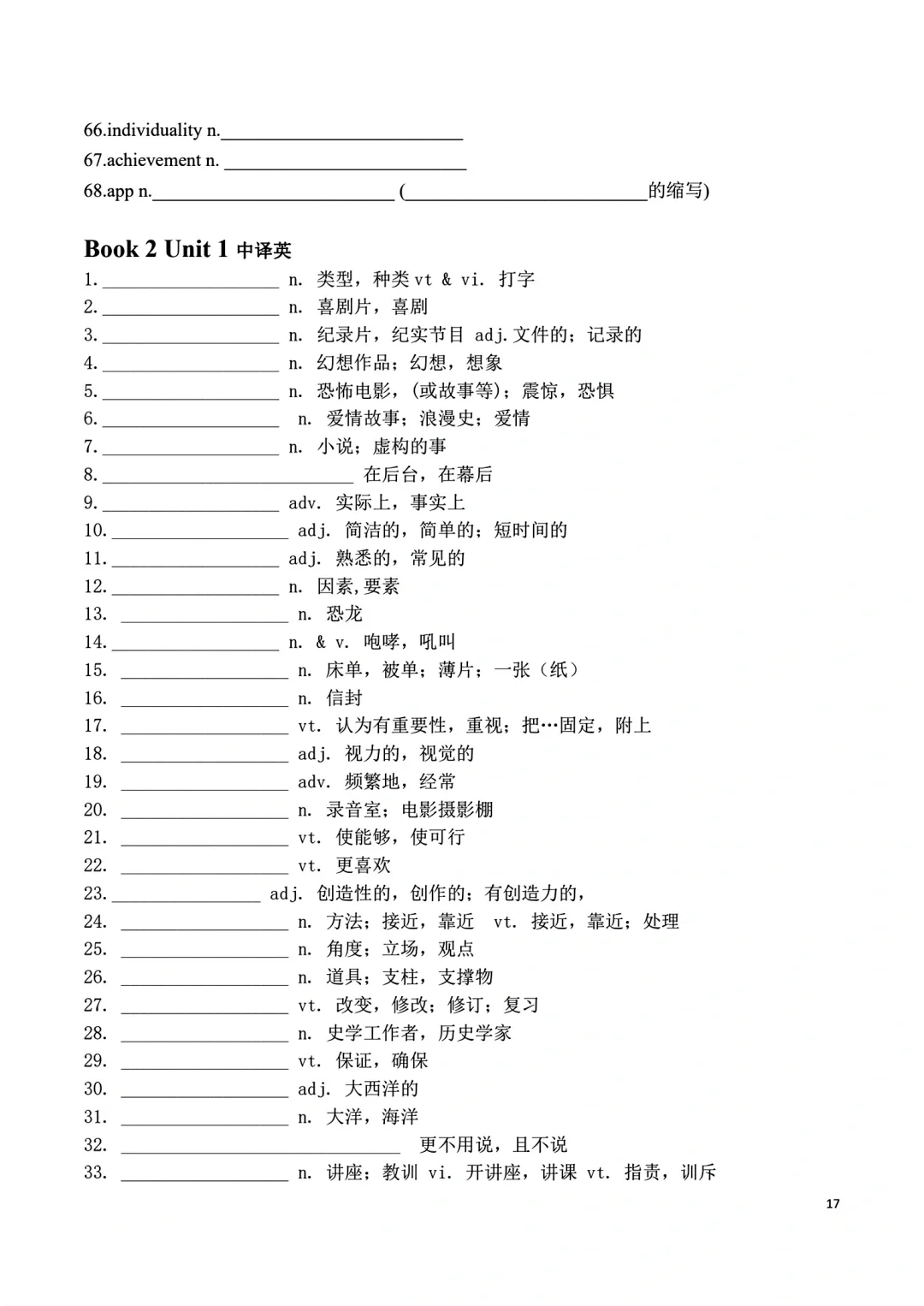 高一上册英语词汇自主默写表